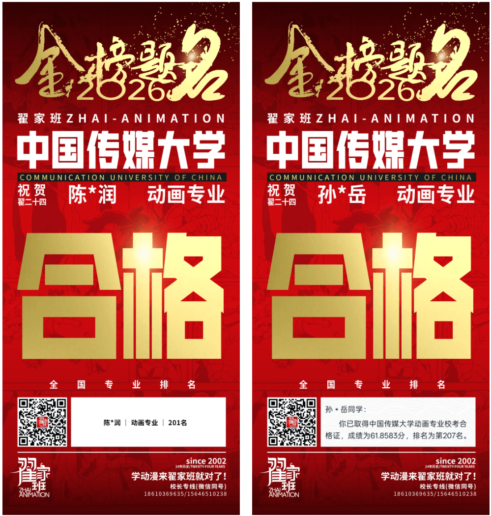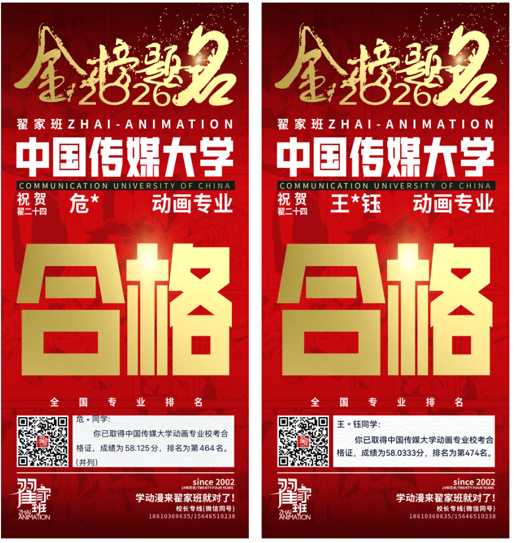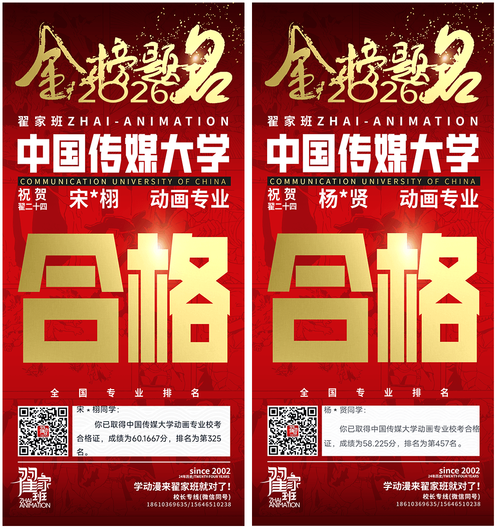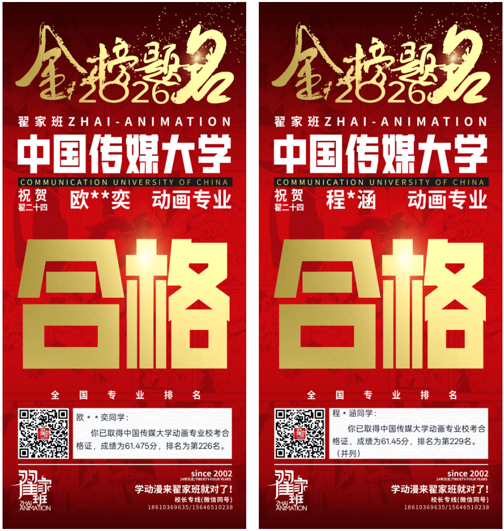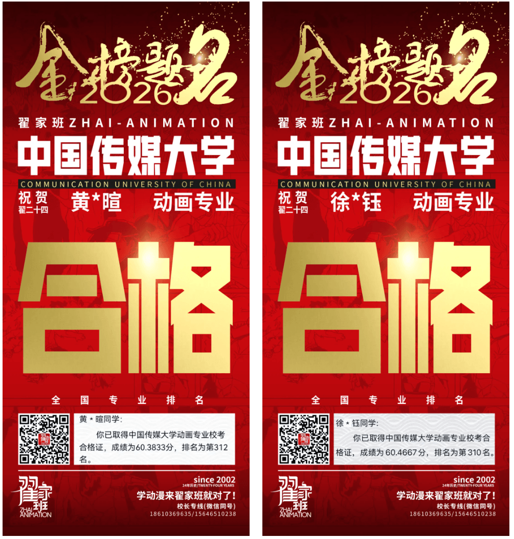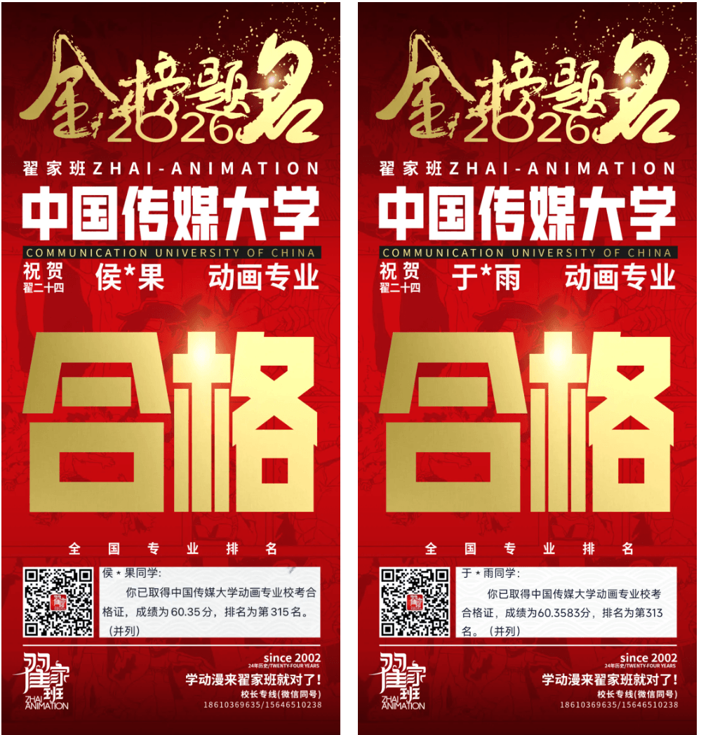 - 翟家班2026中国传媒大学动画专业校考成绩领跑全国