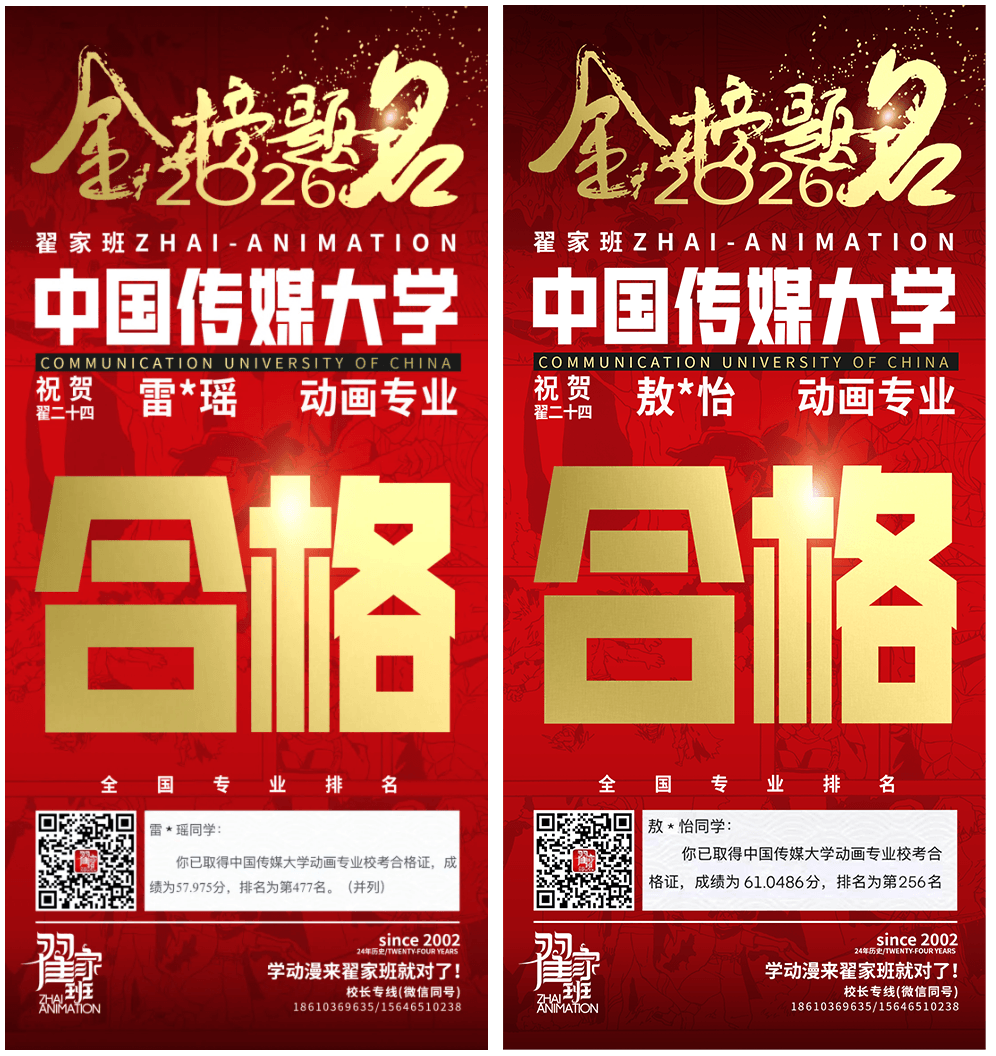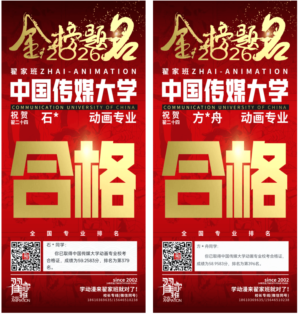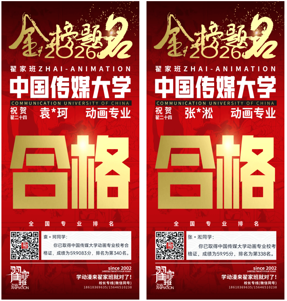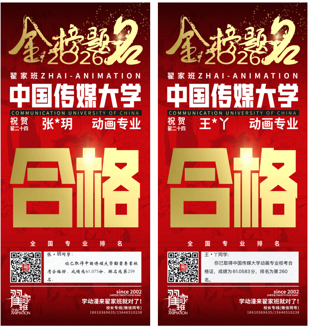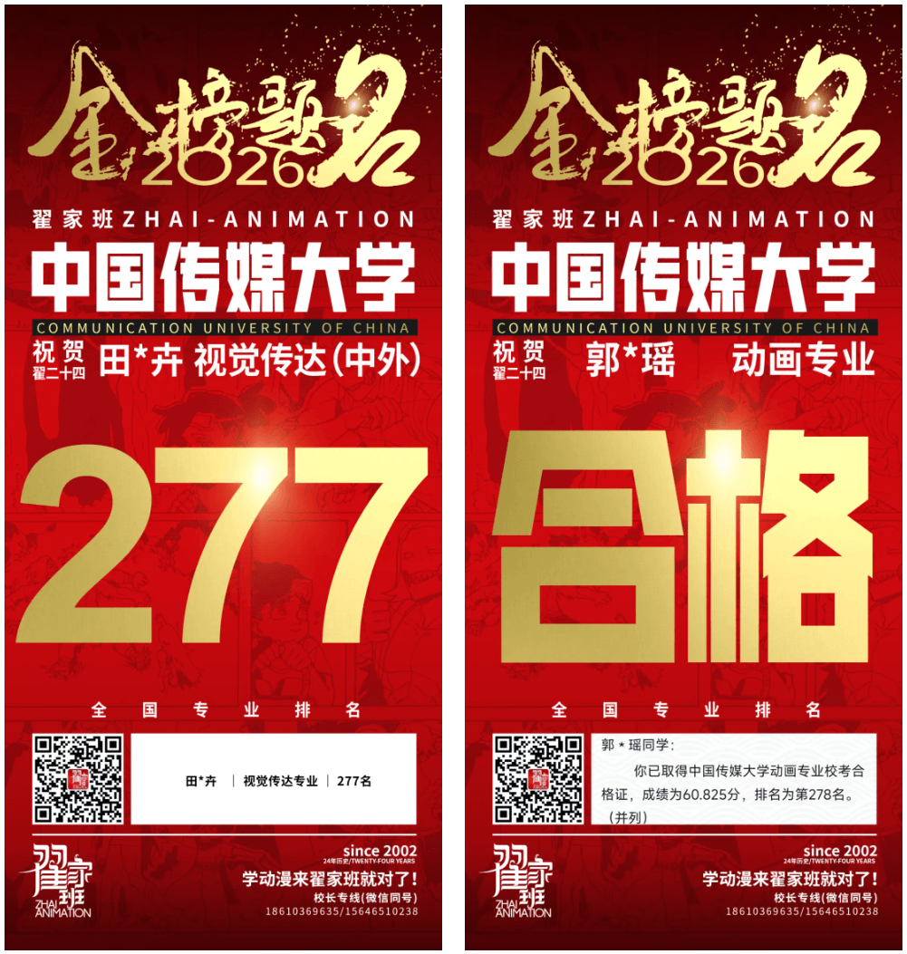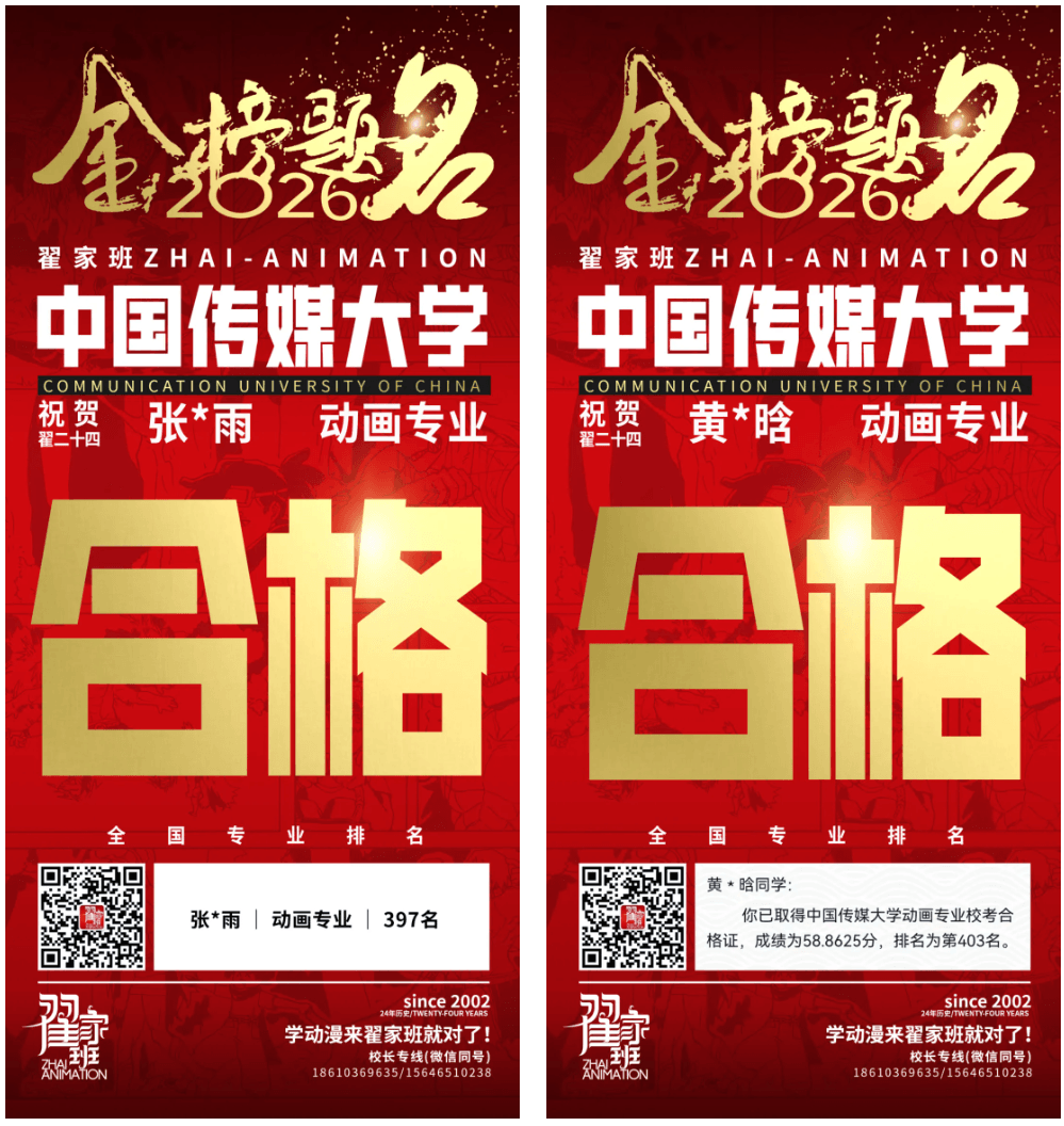 - 翟家班2026中国传媒大学动画专业校考成绩领跑全国