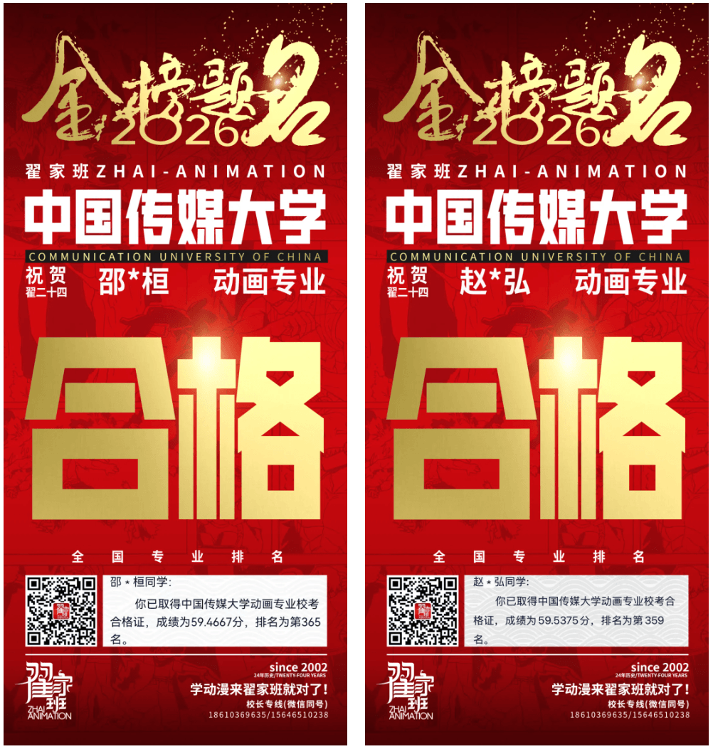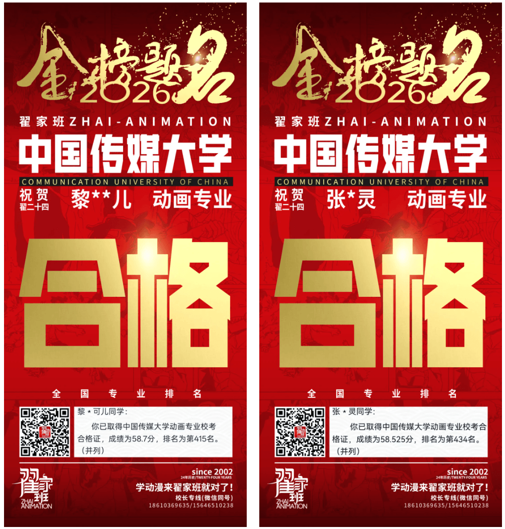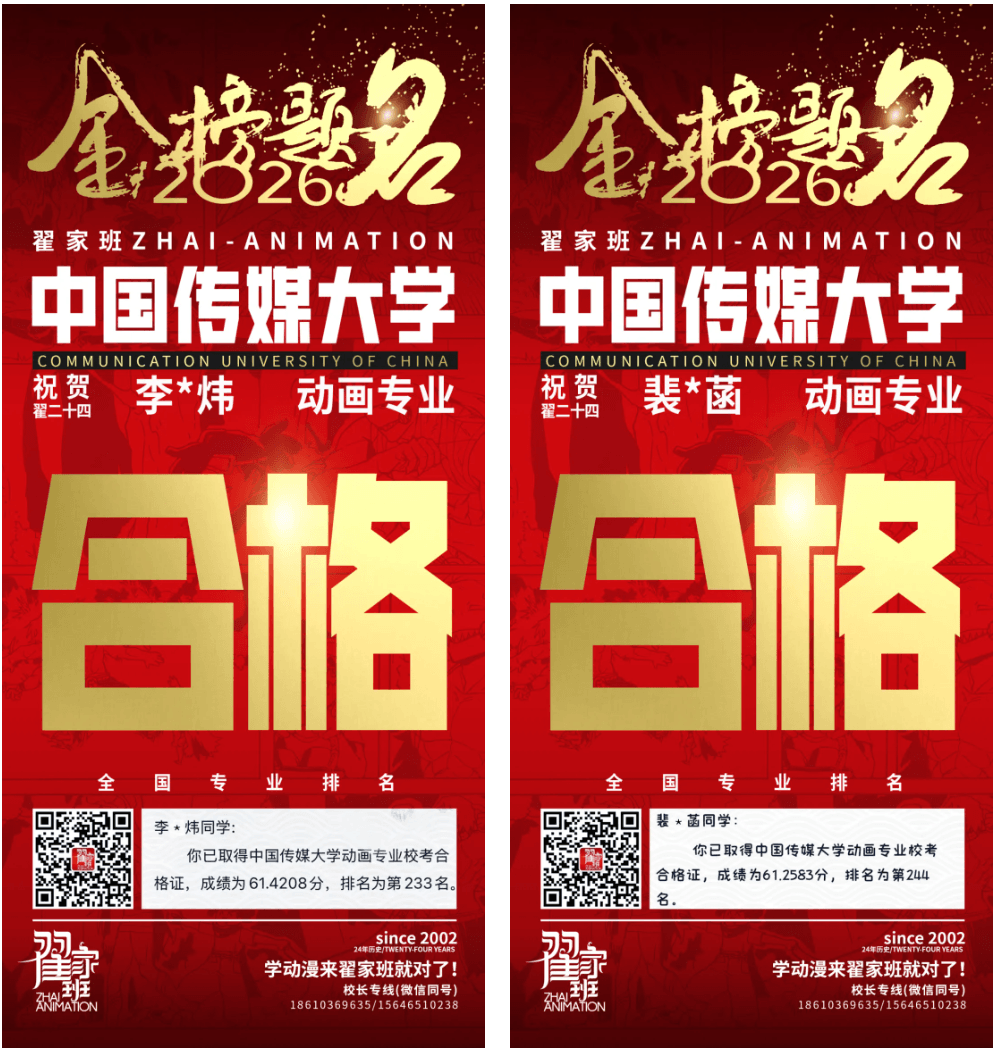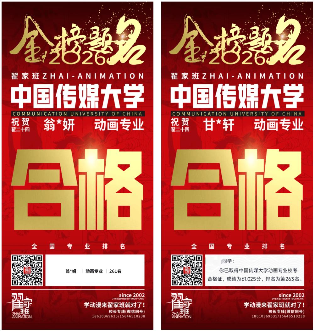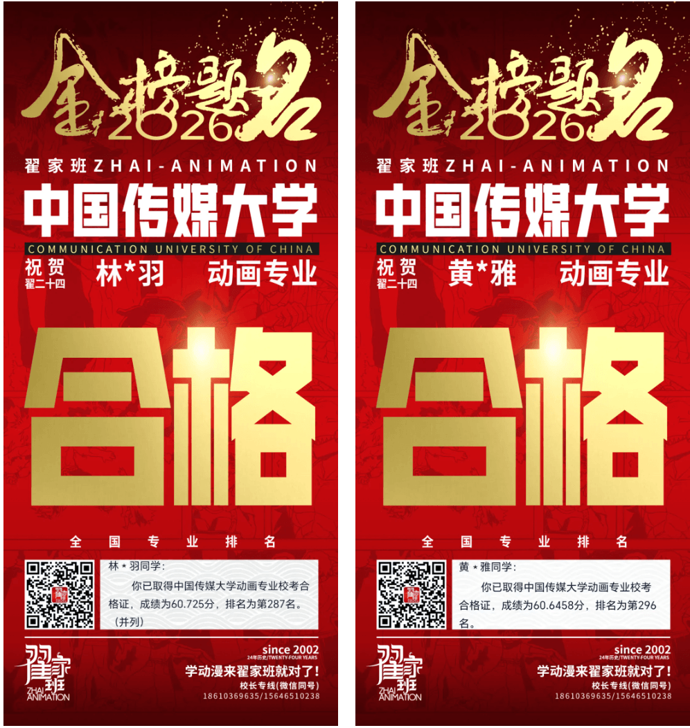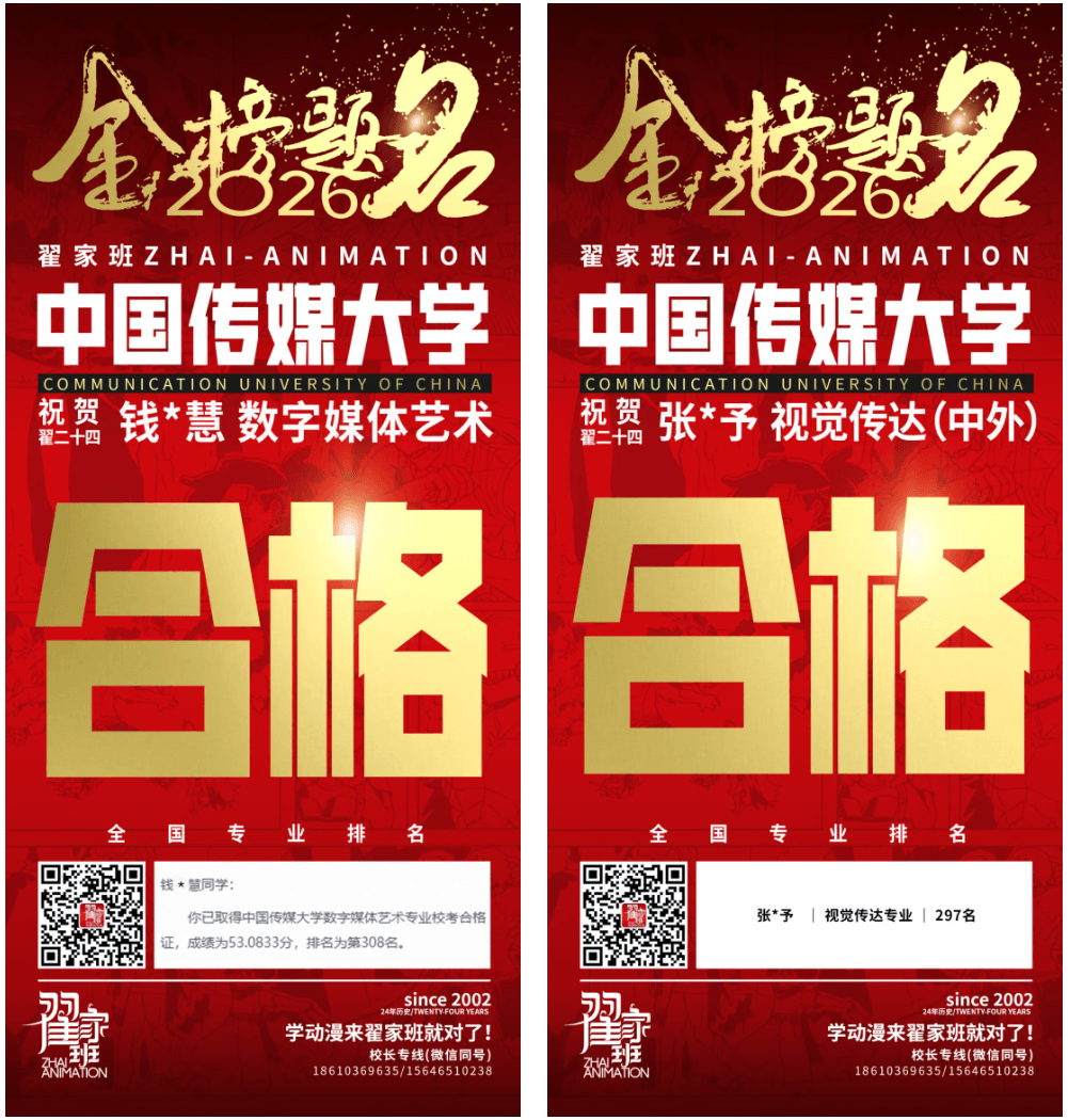 - 翟家班2026中国传媒大学动画专业校考成绩领跑全国