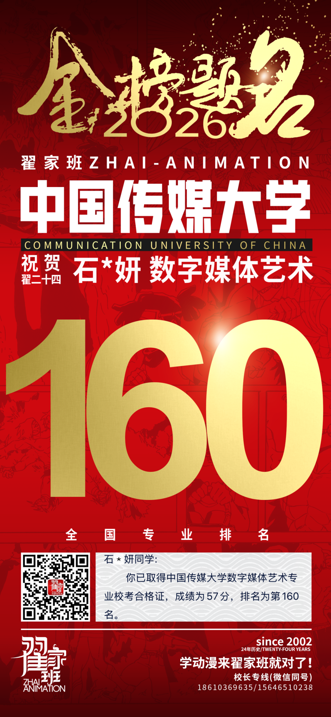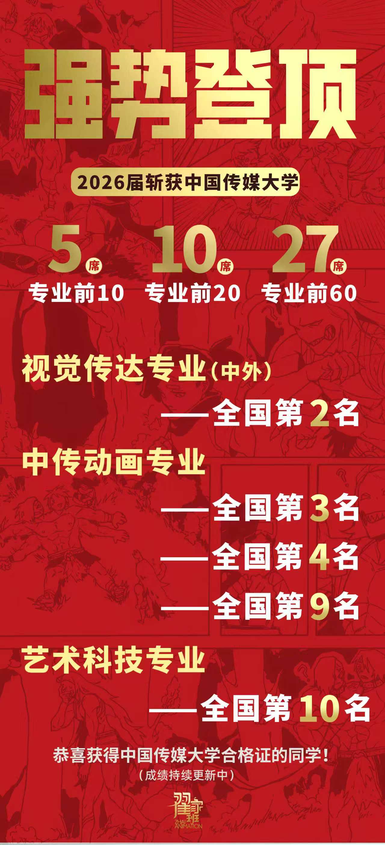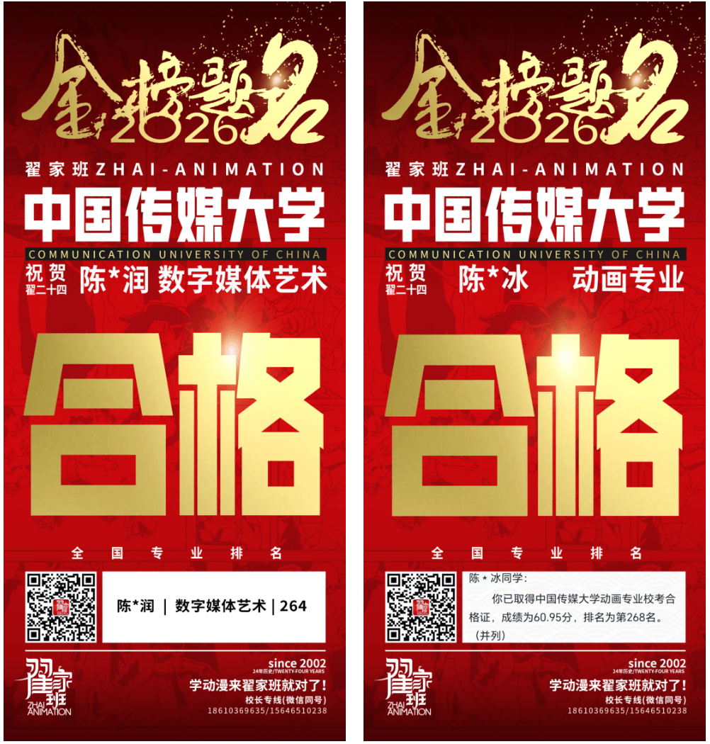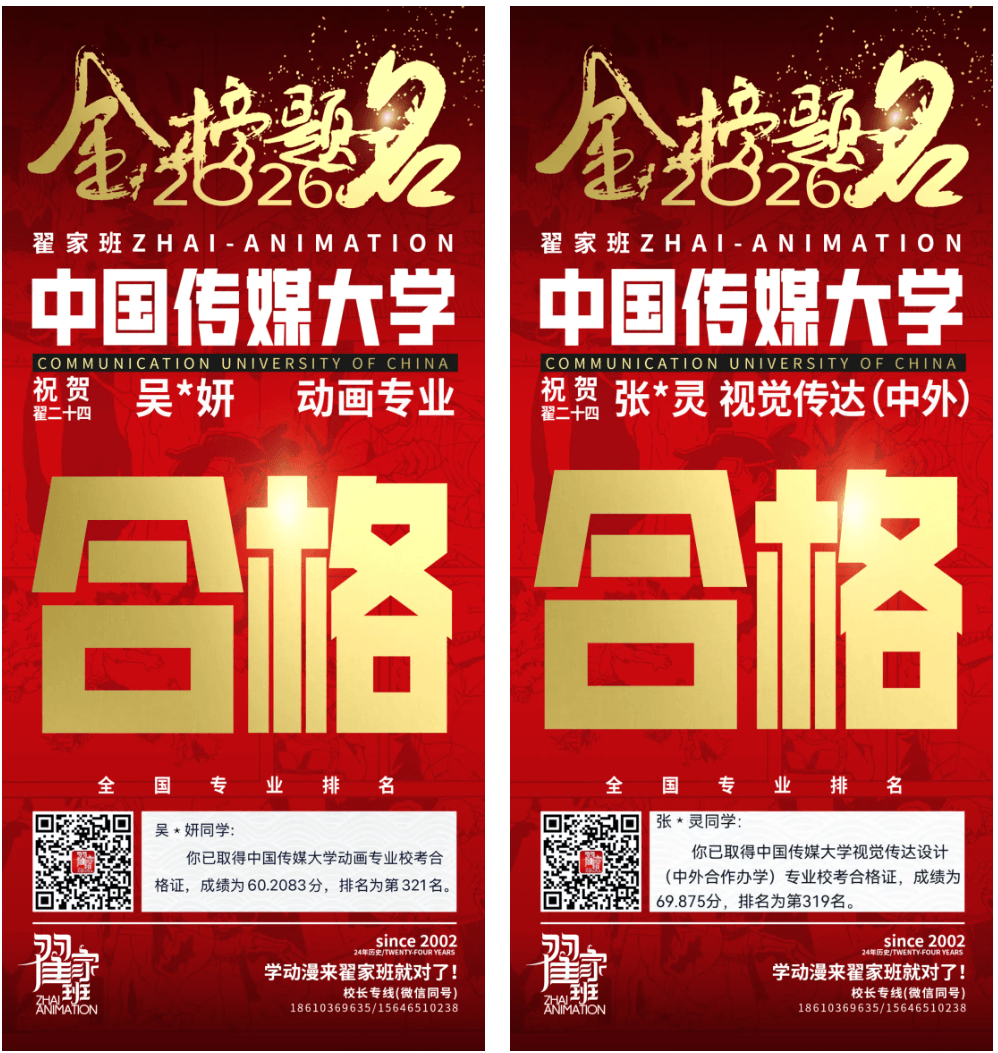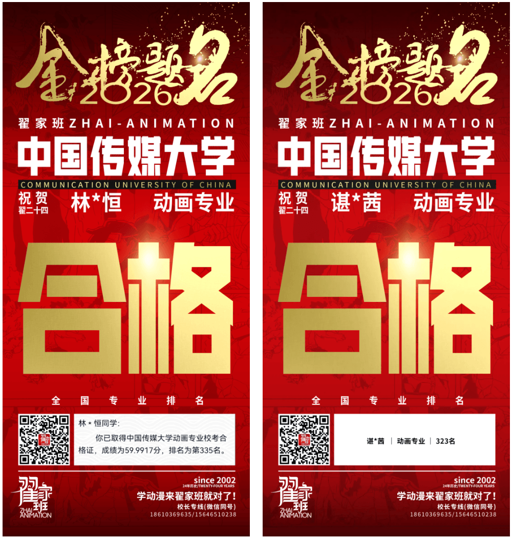 - 翟家班2026中国传媒大学动画专业校考成绩领跑全国