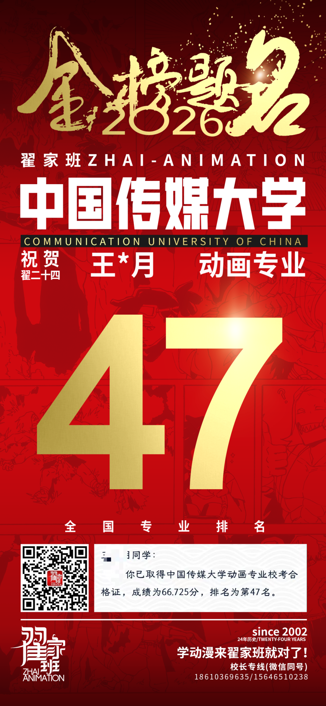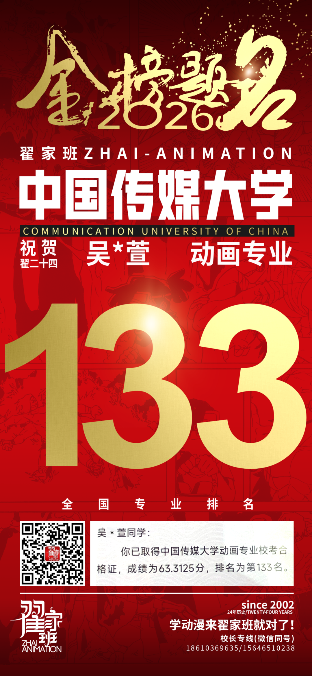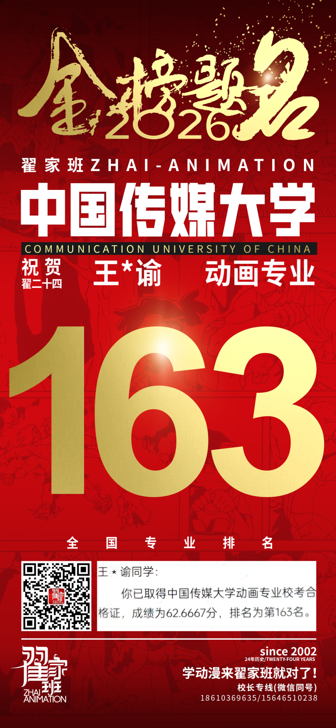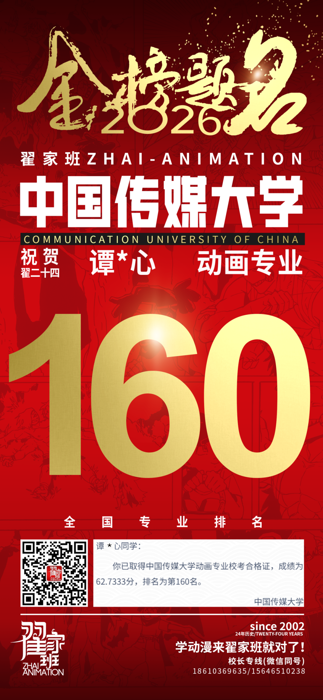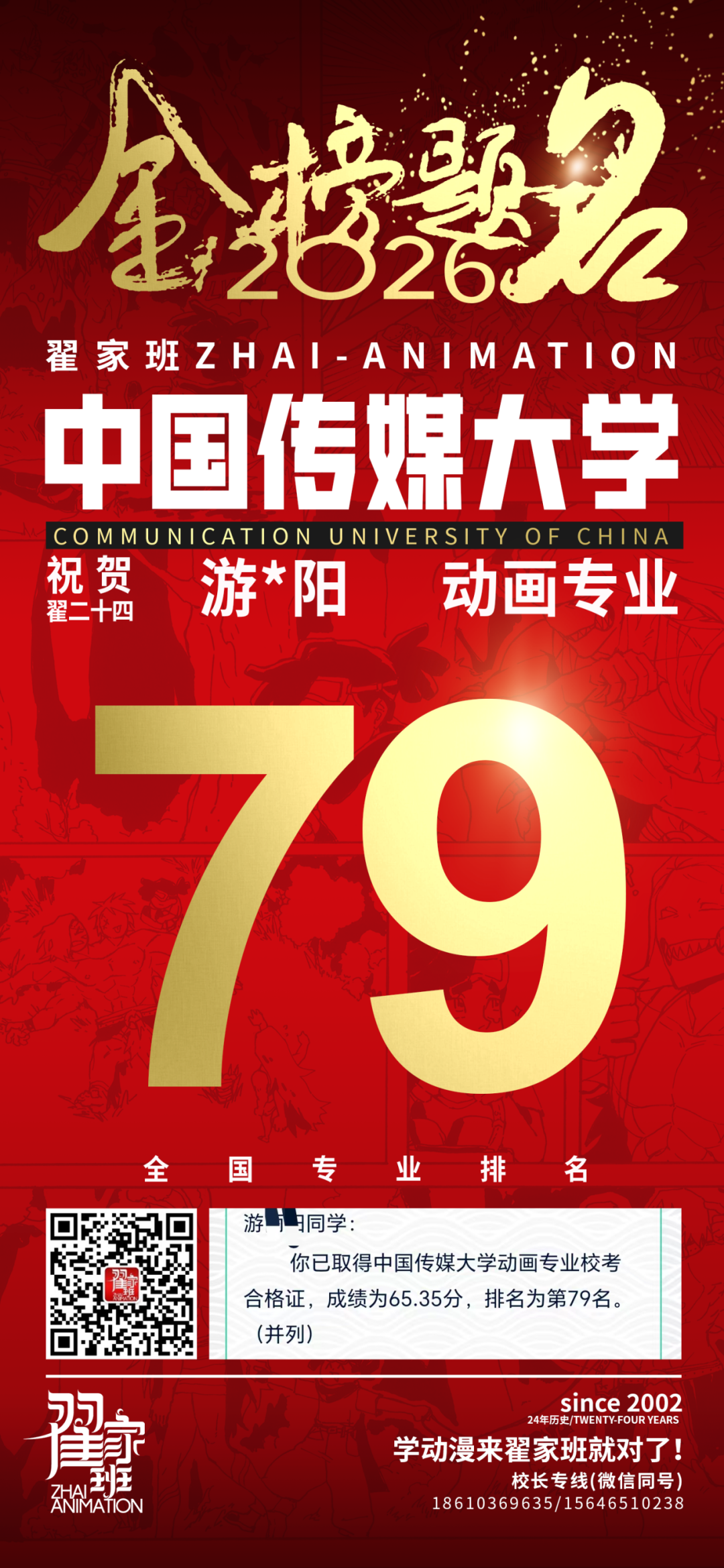 - 翟家班2026中国传媒大学动画专业校考成绩领跑全国