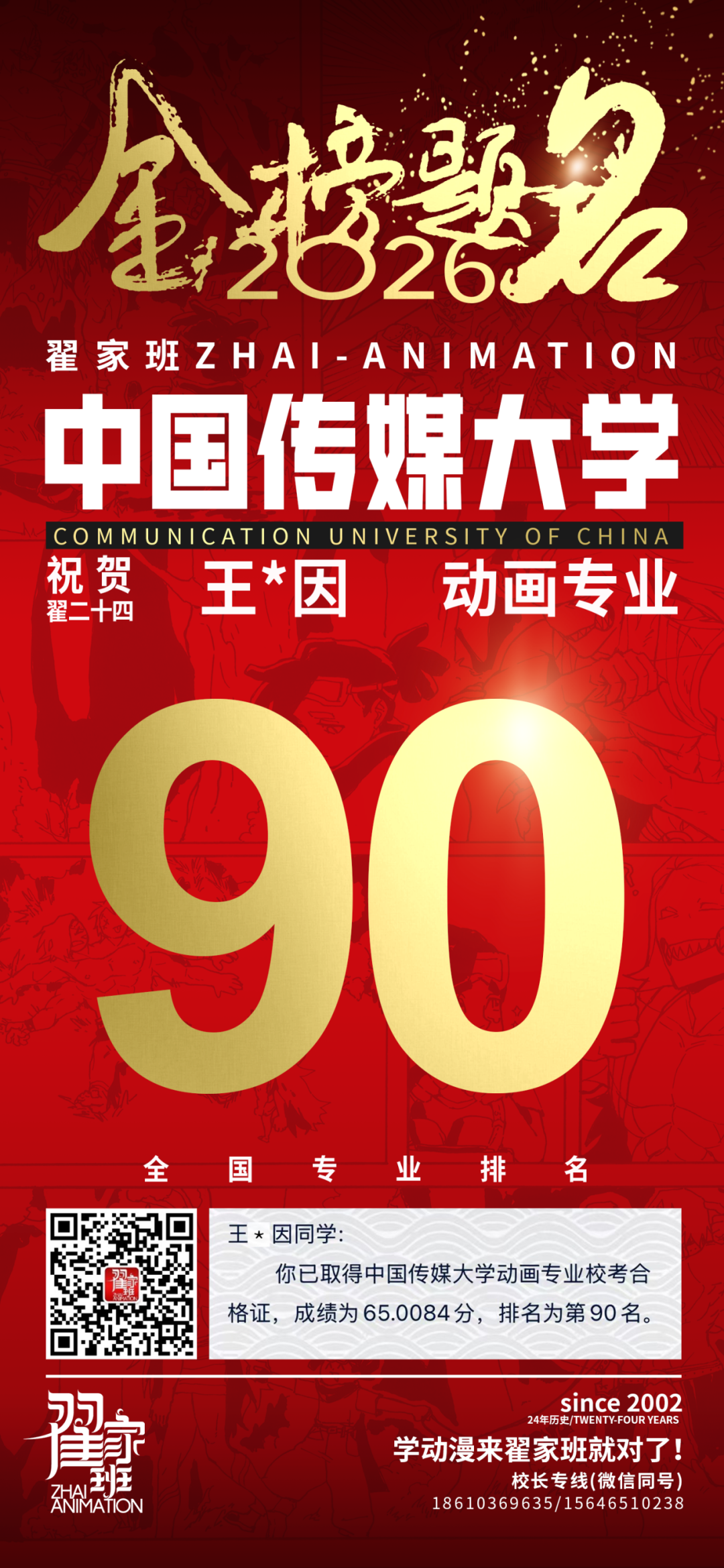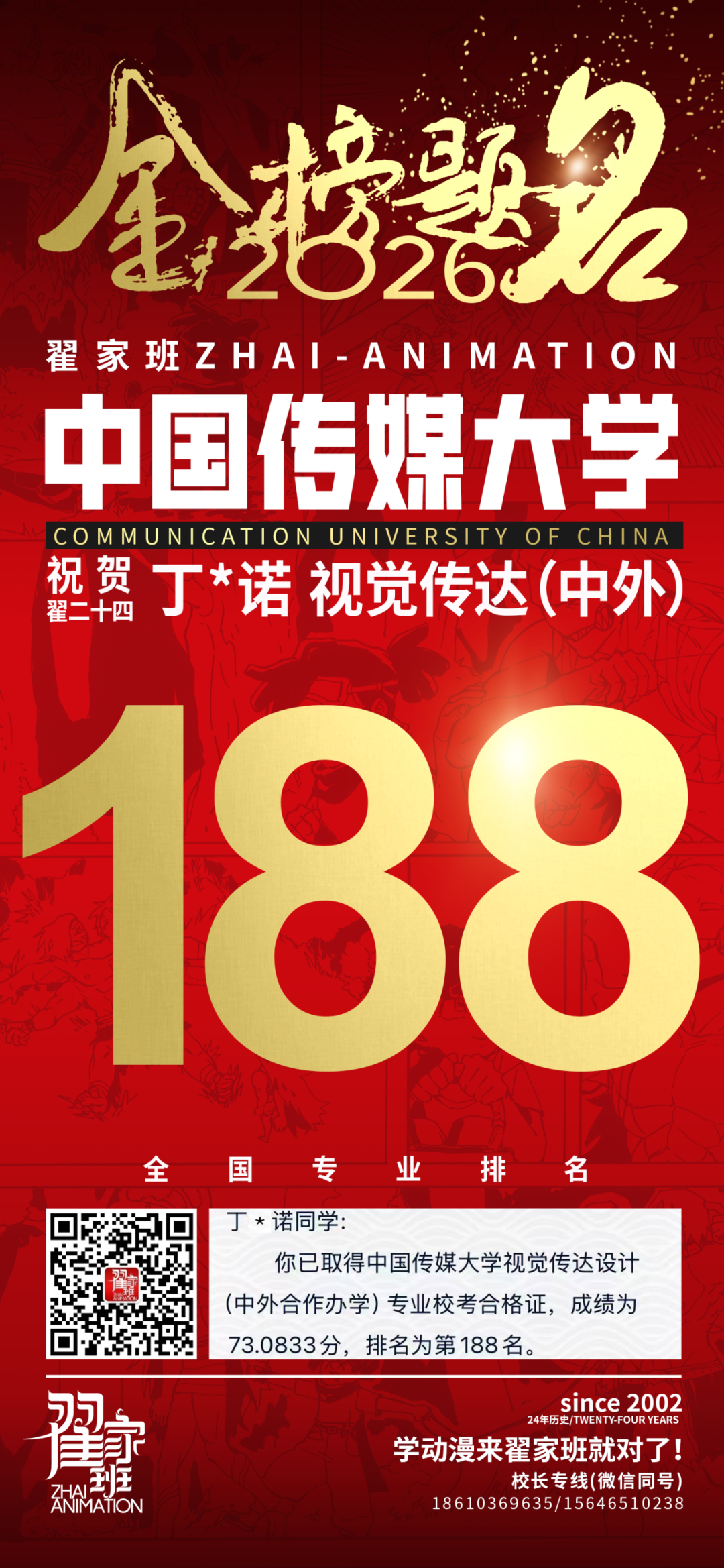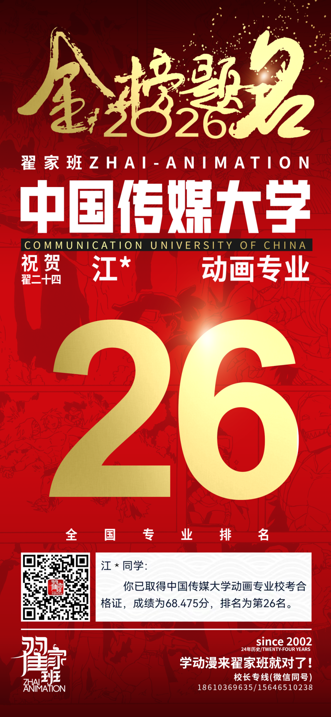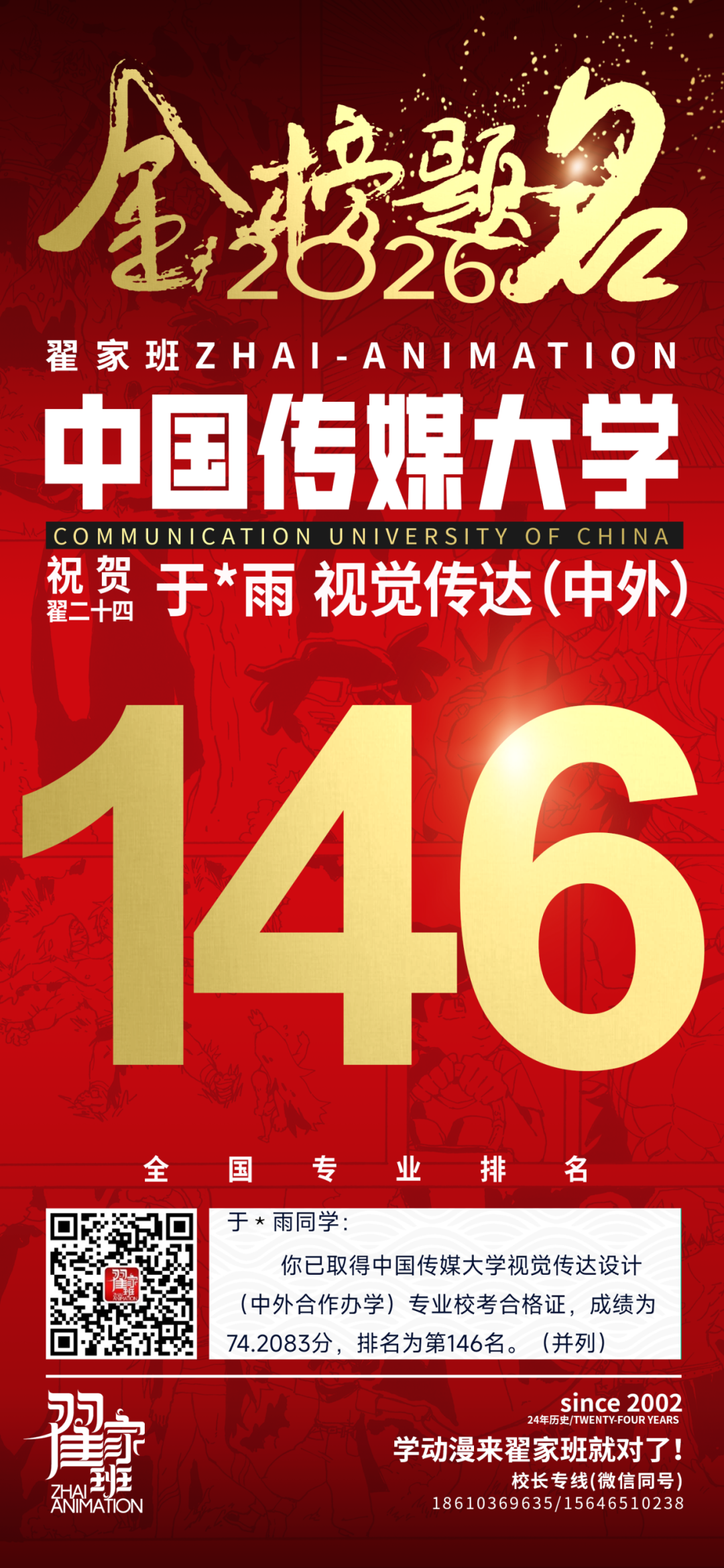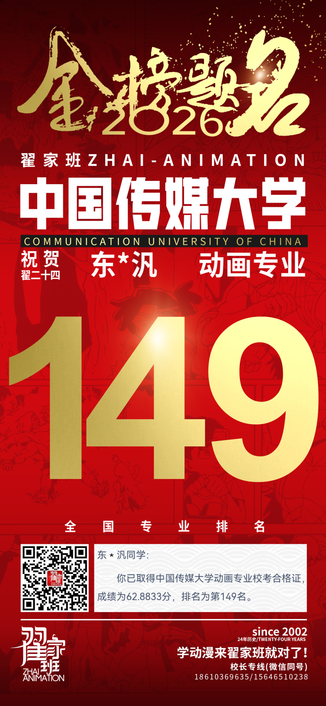 - 翟家班2026中国传媒大学动画专业校考成绩领跑全国