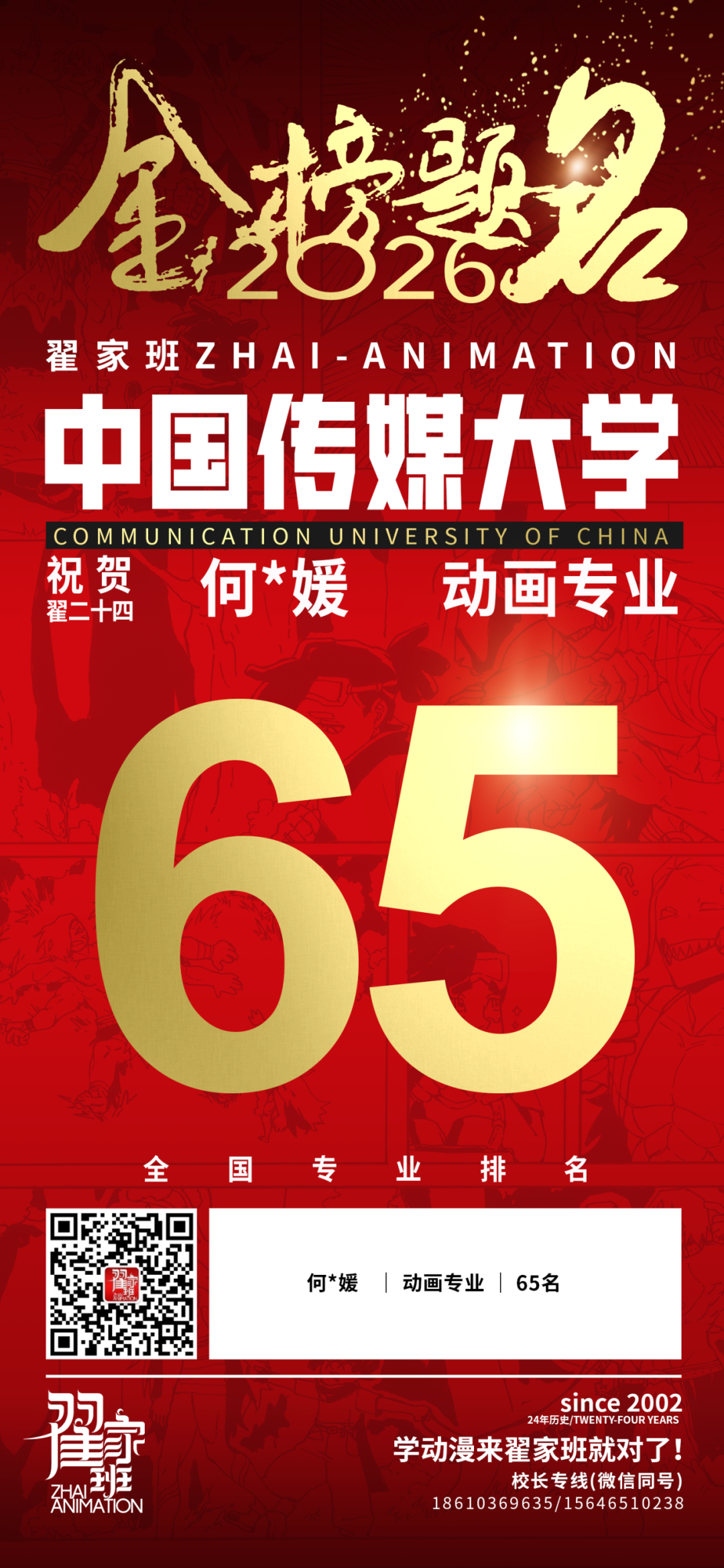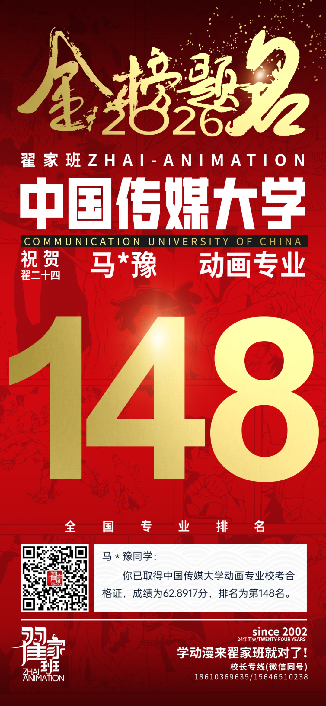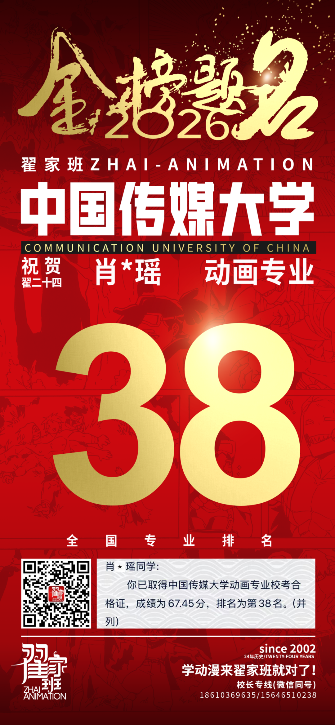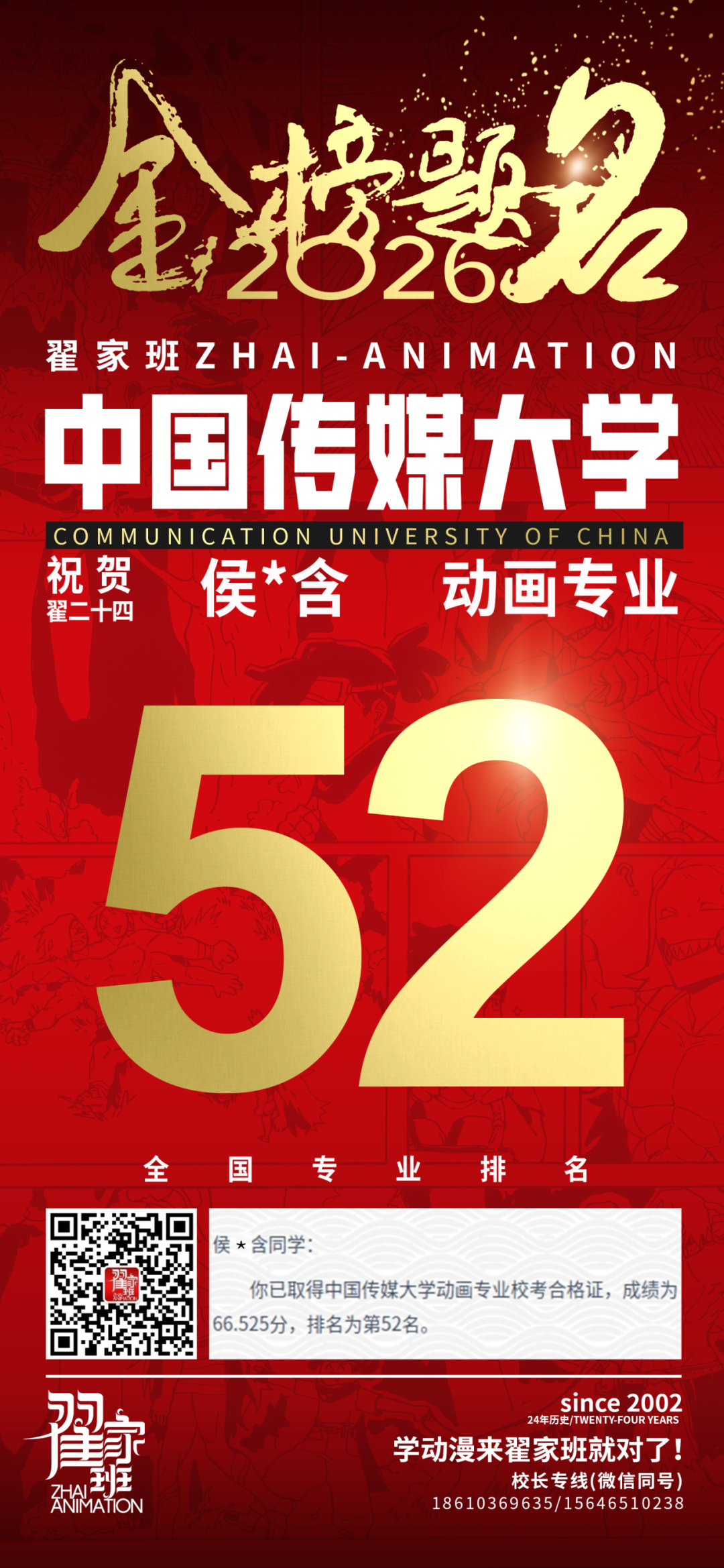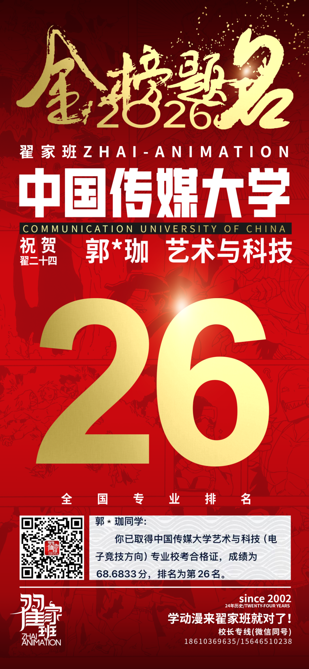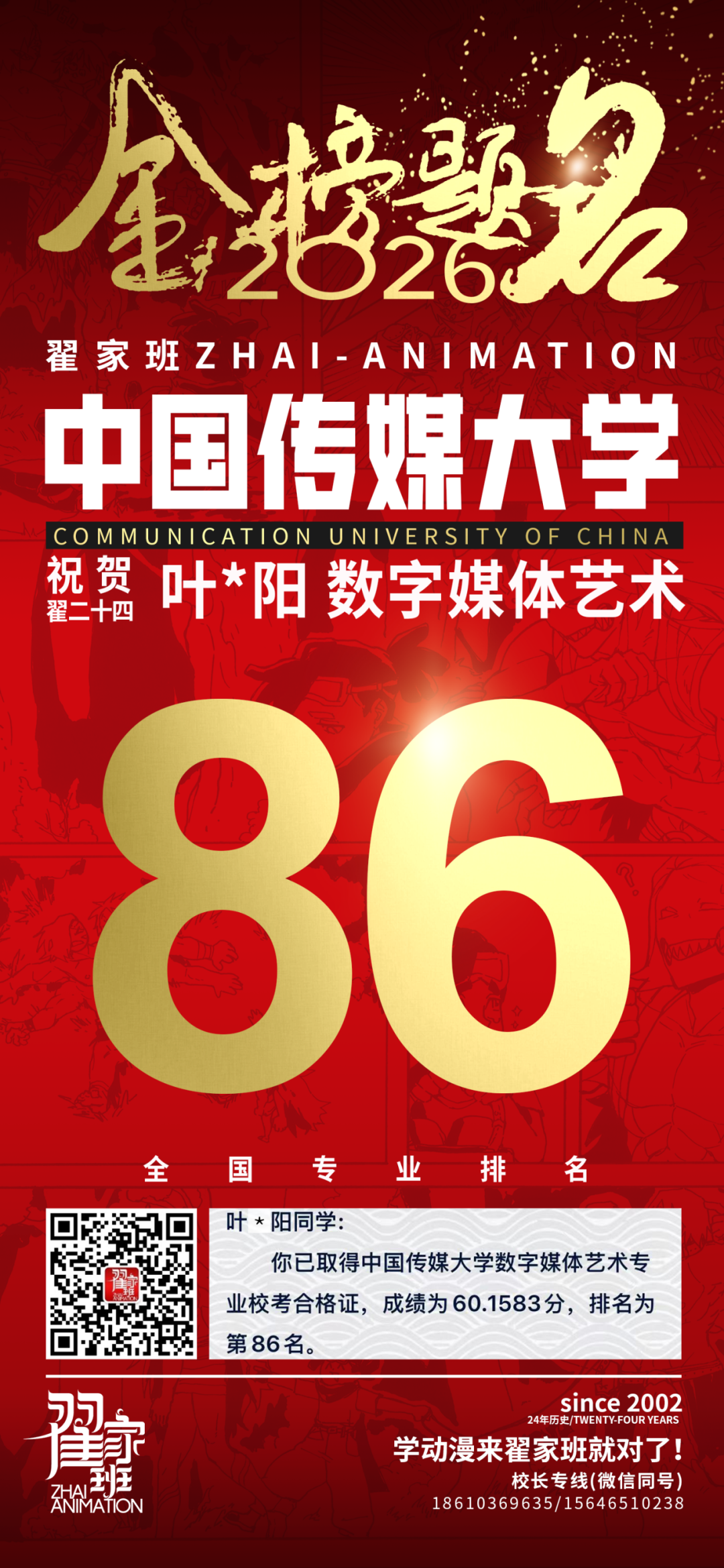 - 翟家班2026中国传媒大学动画专业校考成绩领跑全国