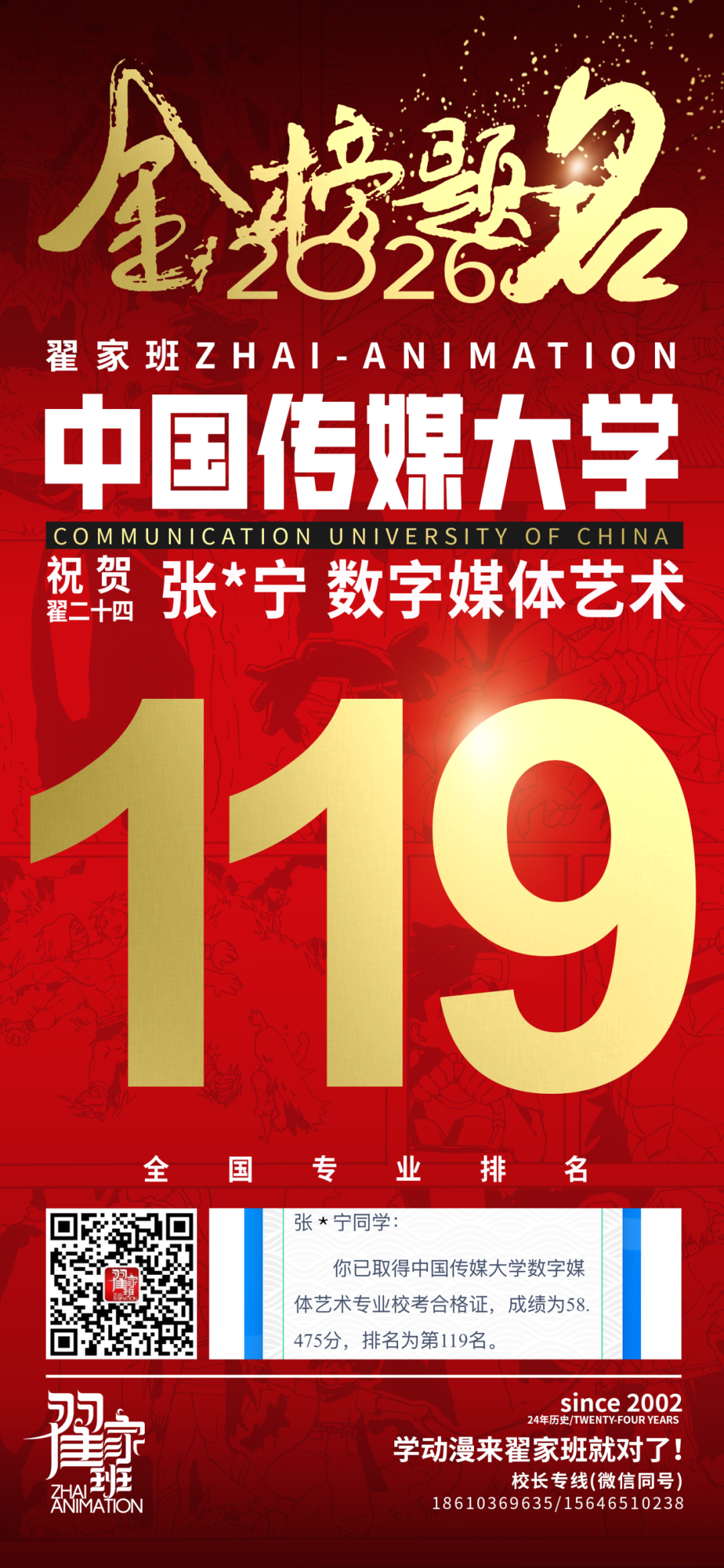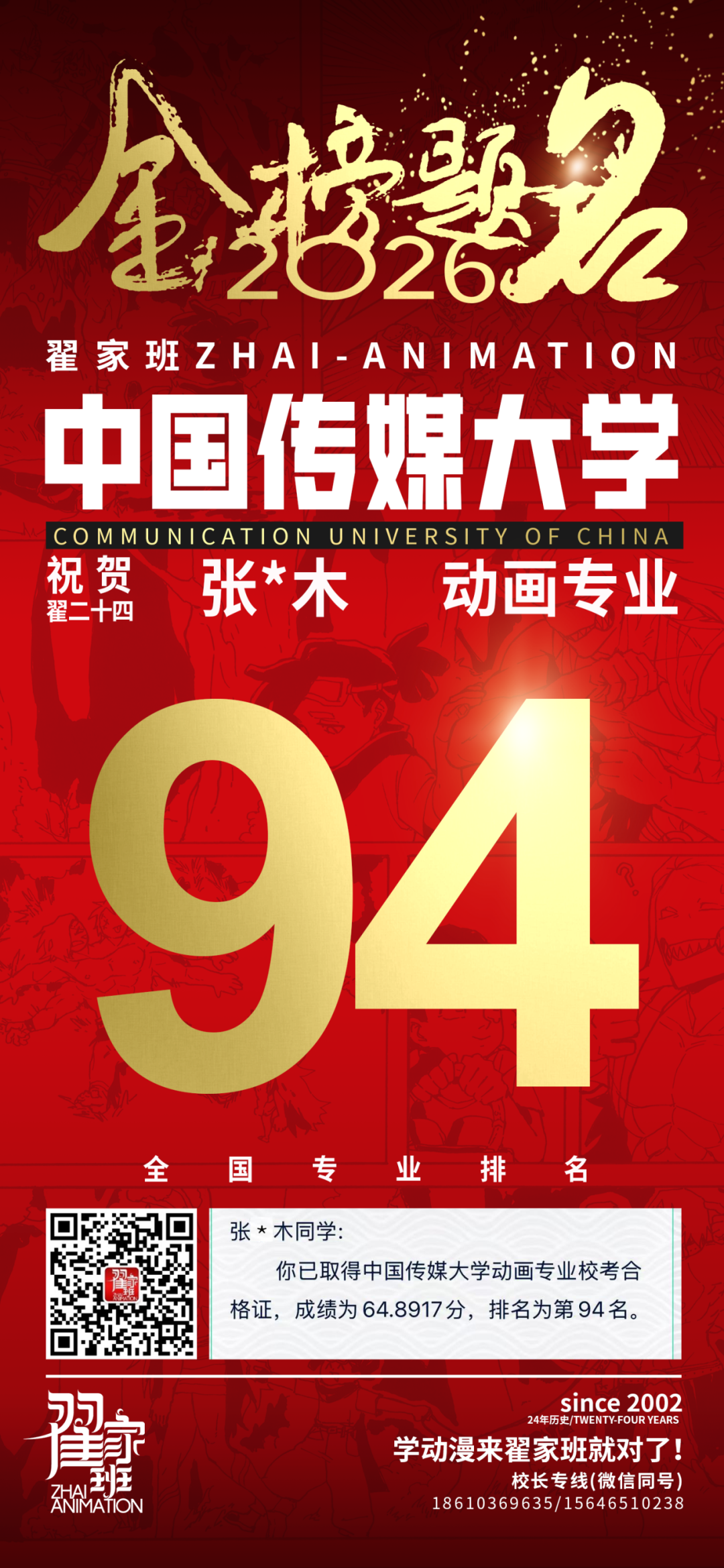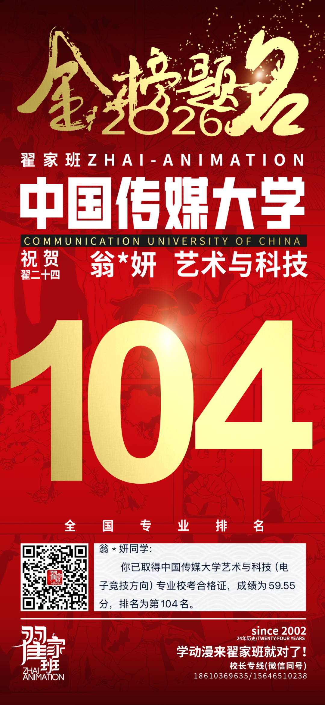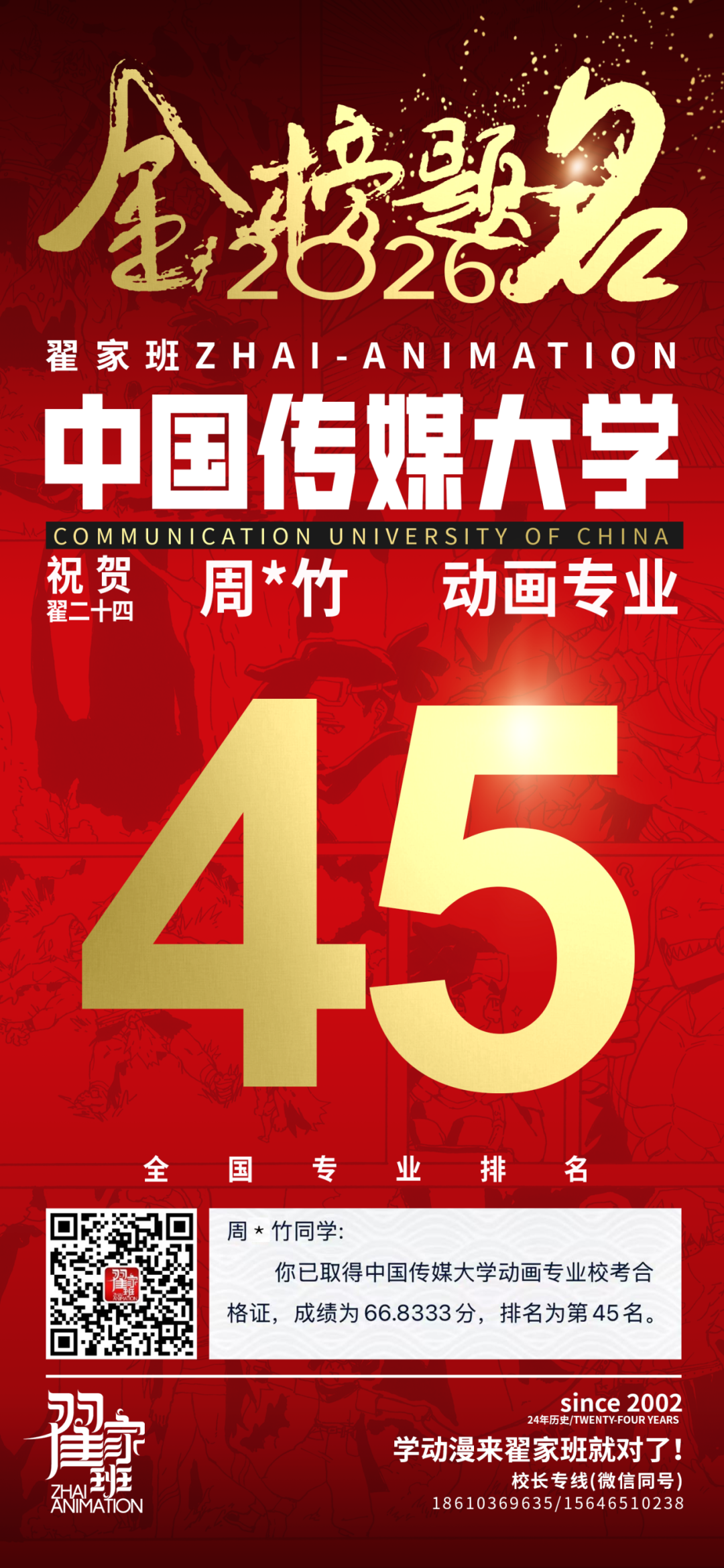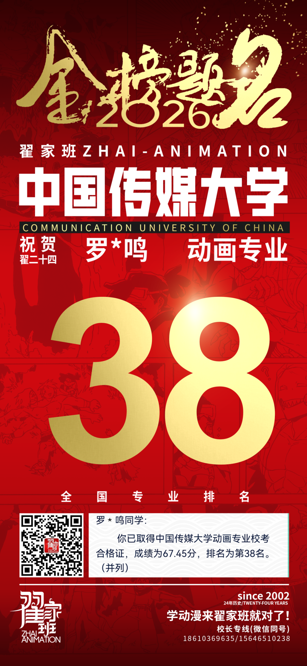 - 翟家班2026中国传媒大学动画专业校考成绩领跑全国