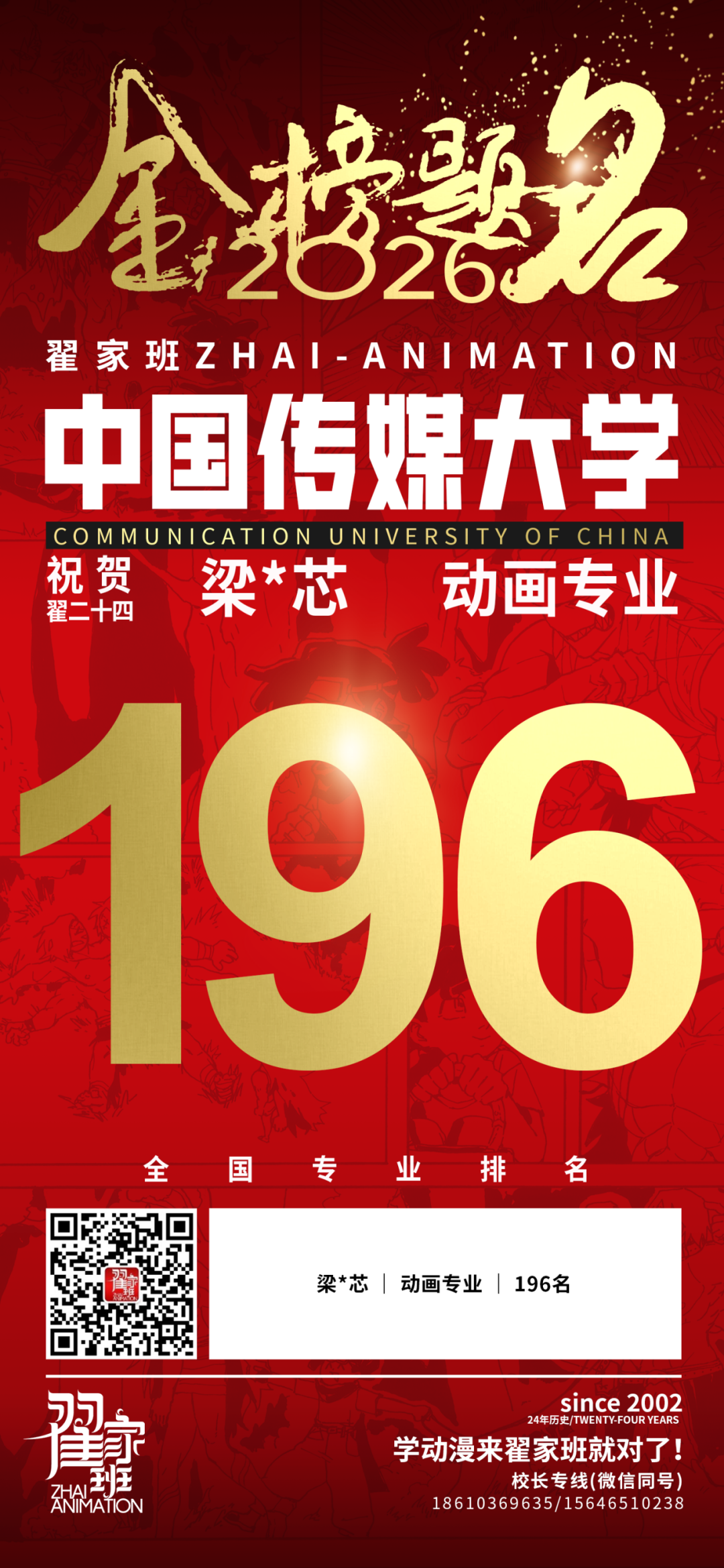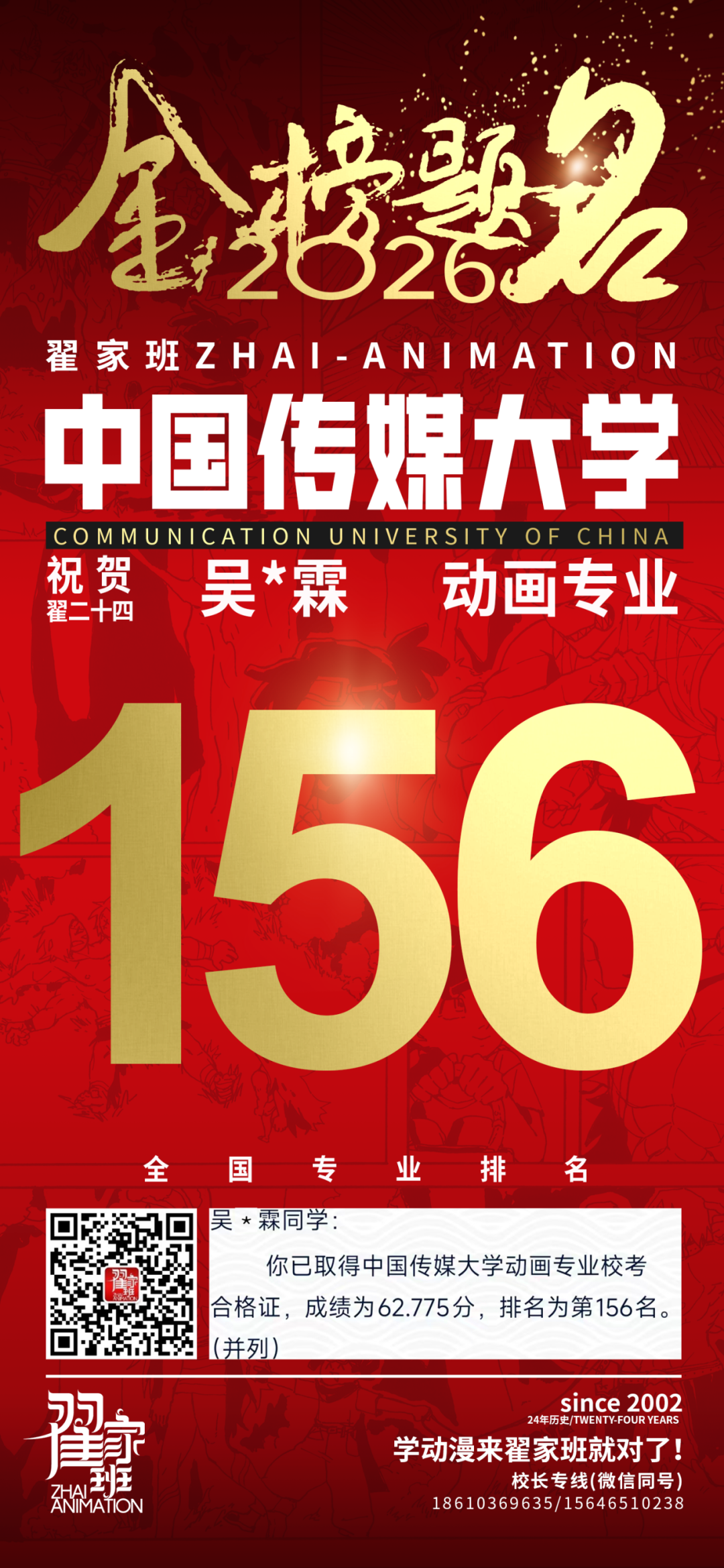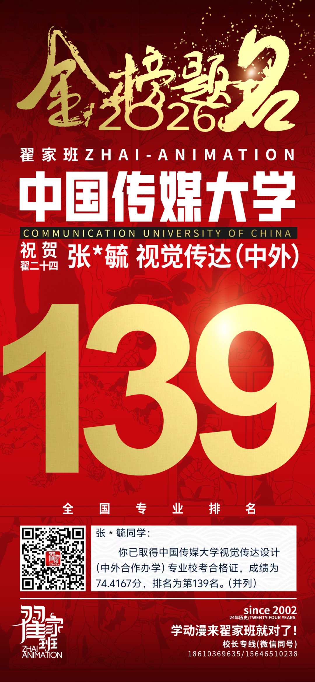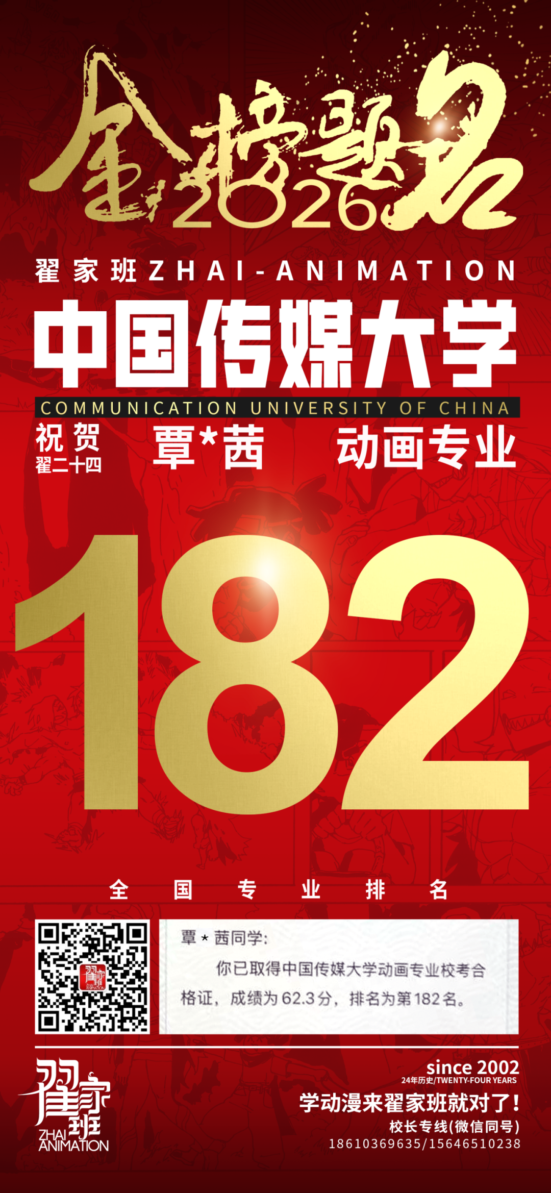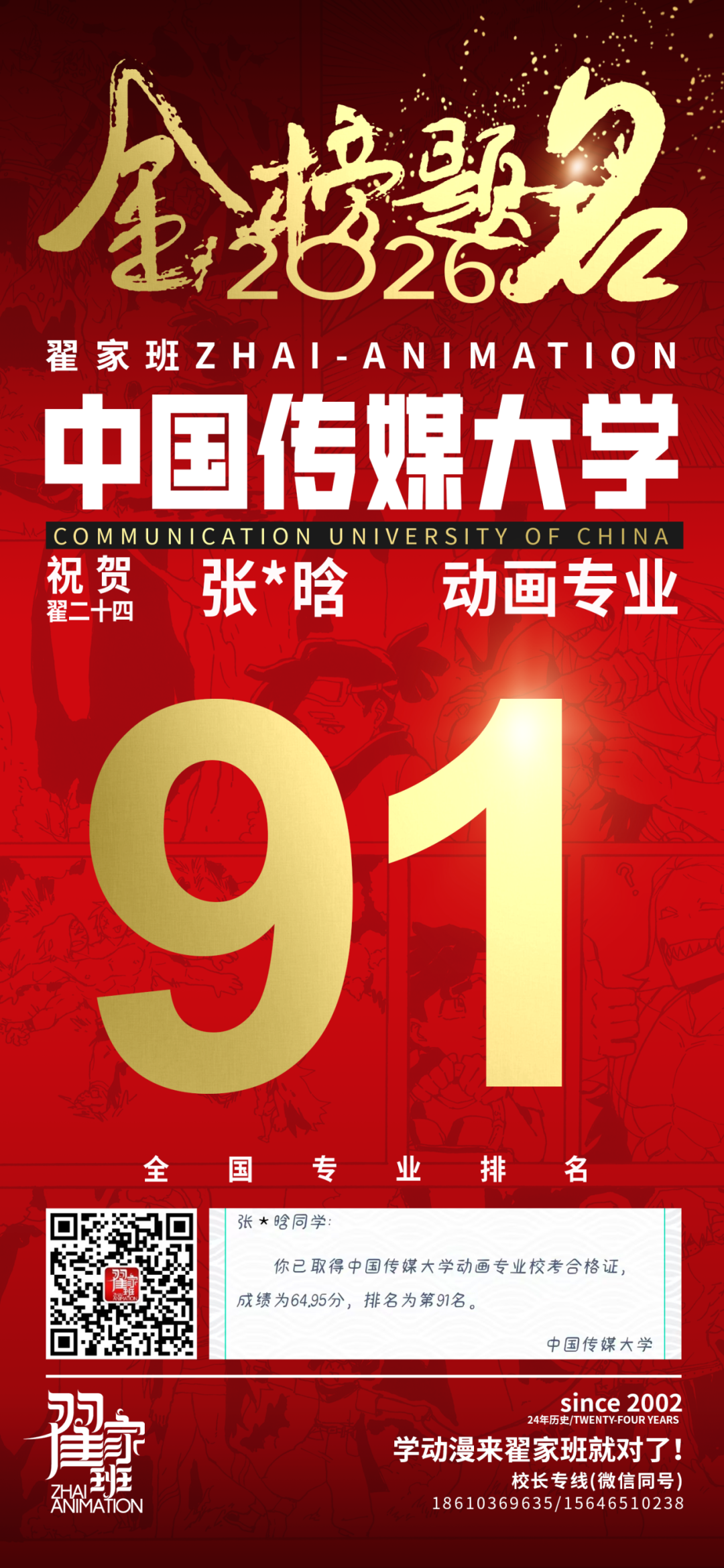 - 翟家班2026中国传媒大学动画专业校考成绩领跑全国