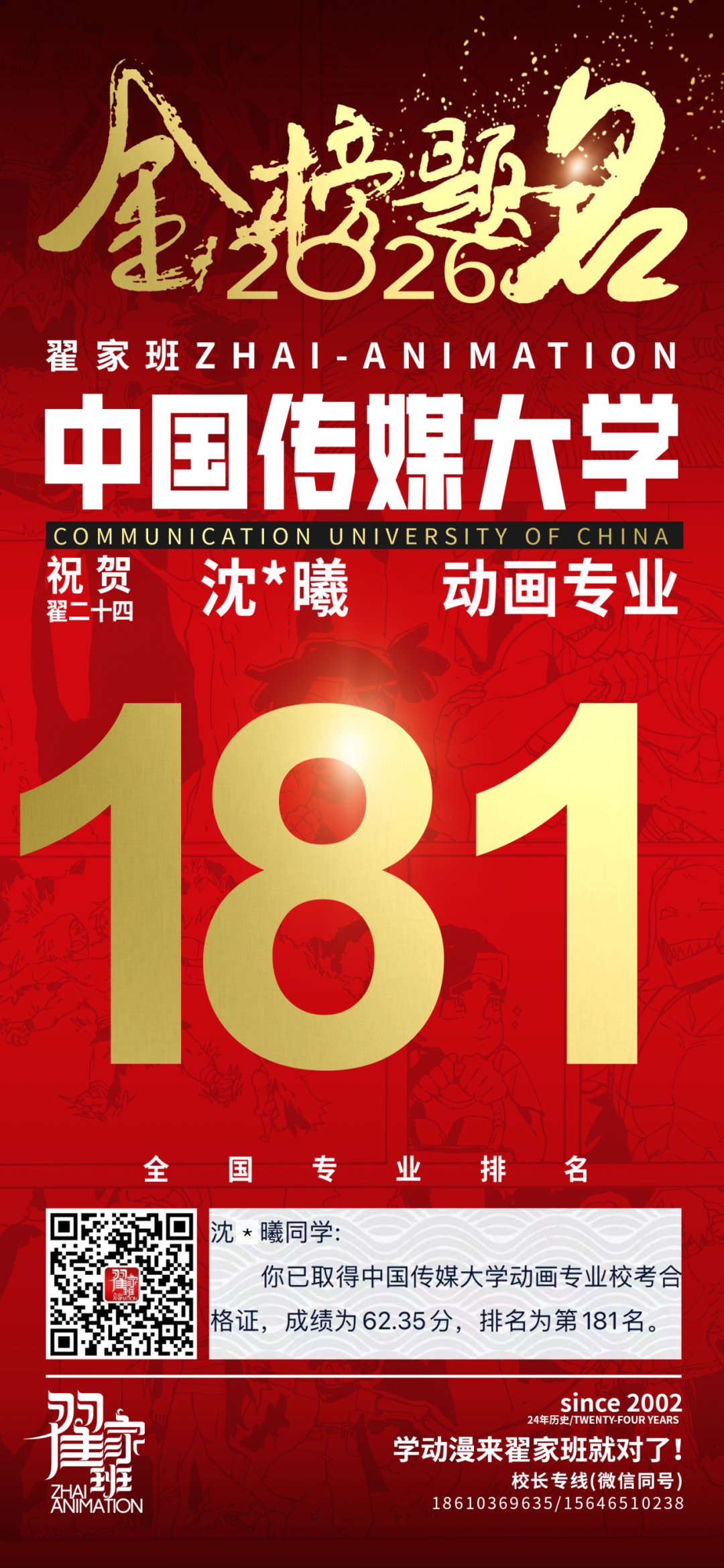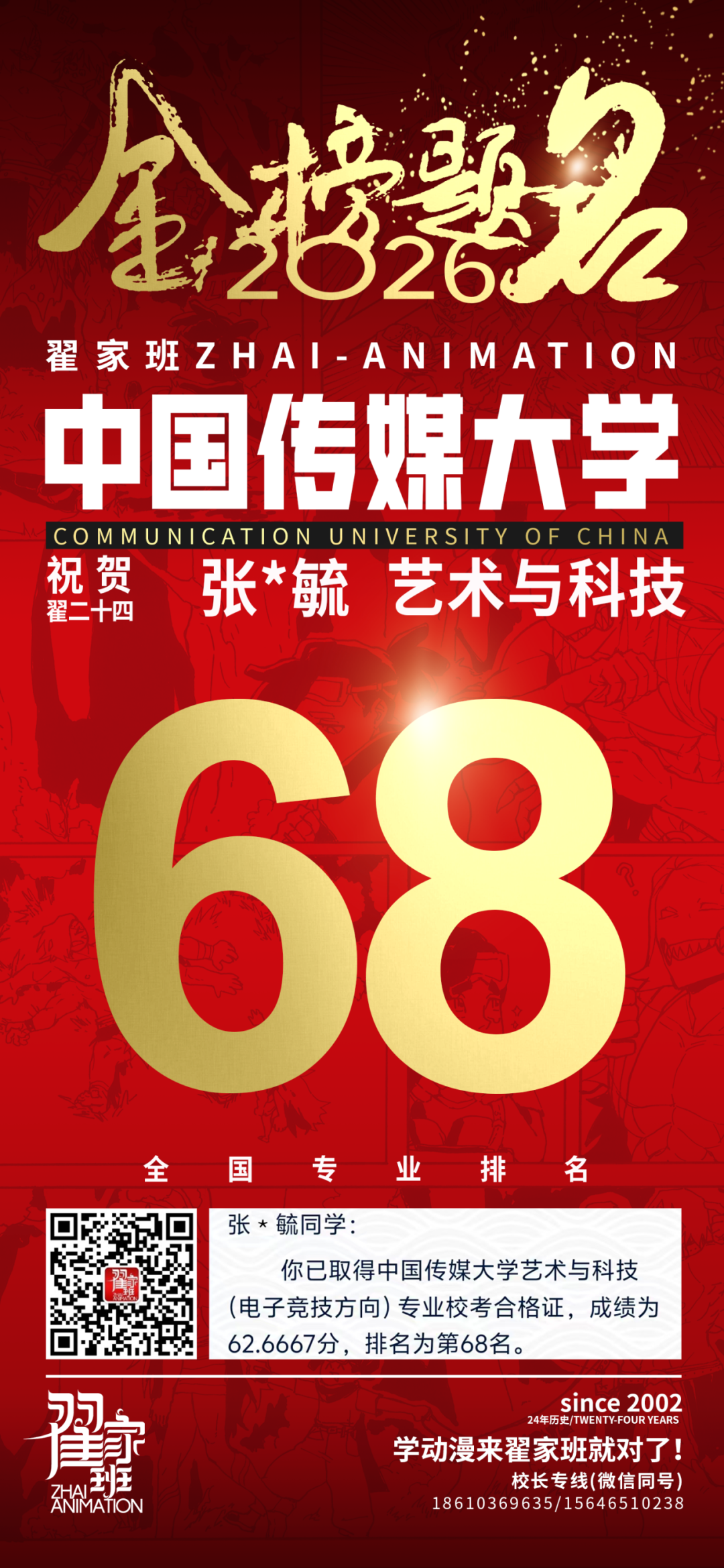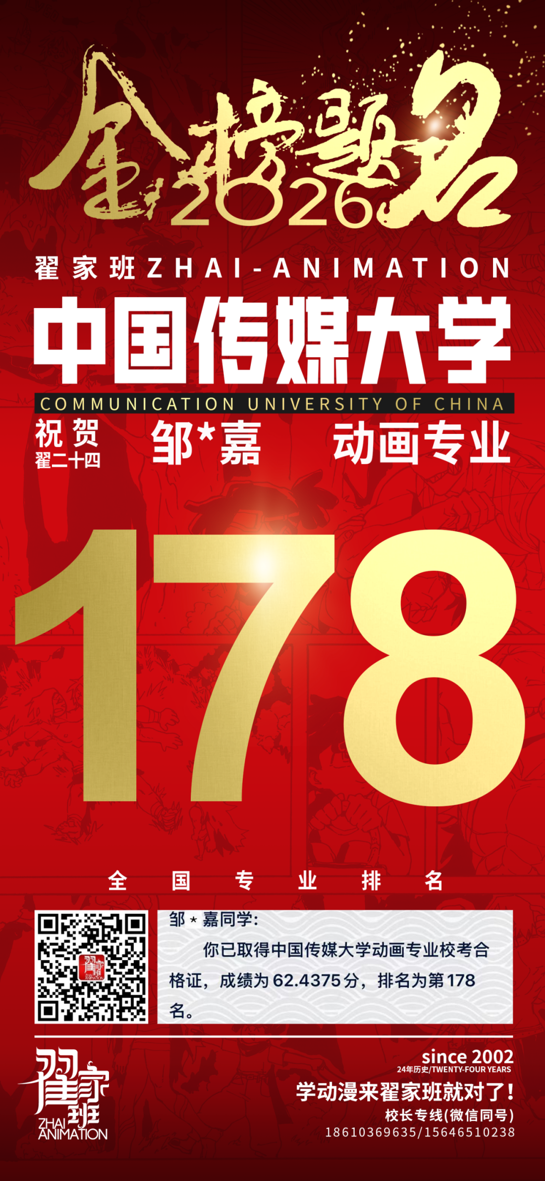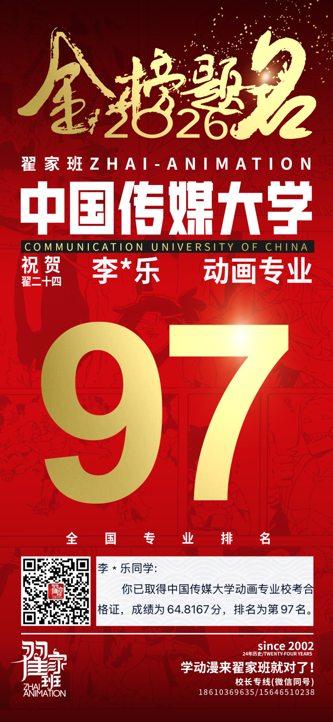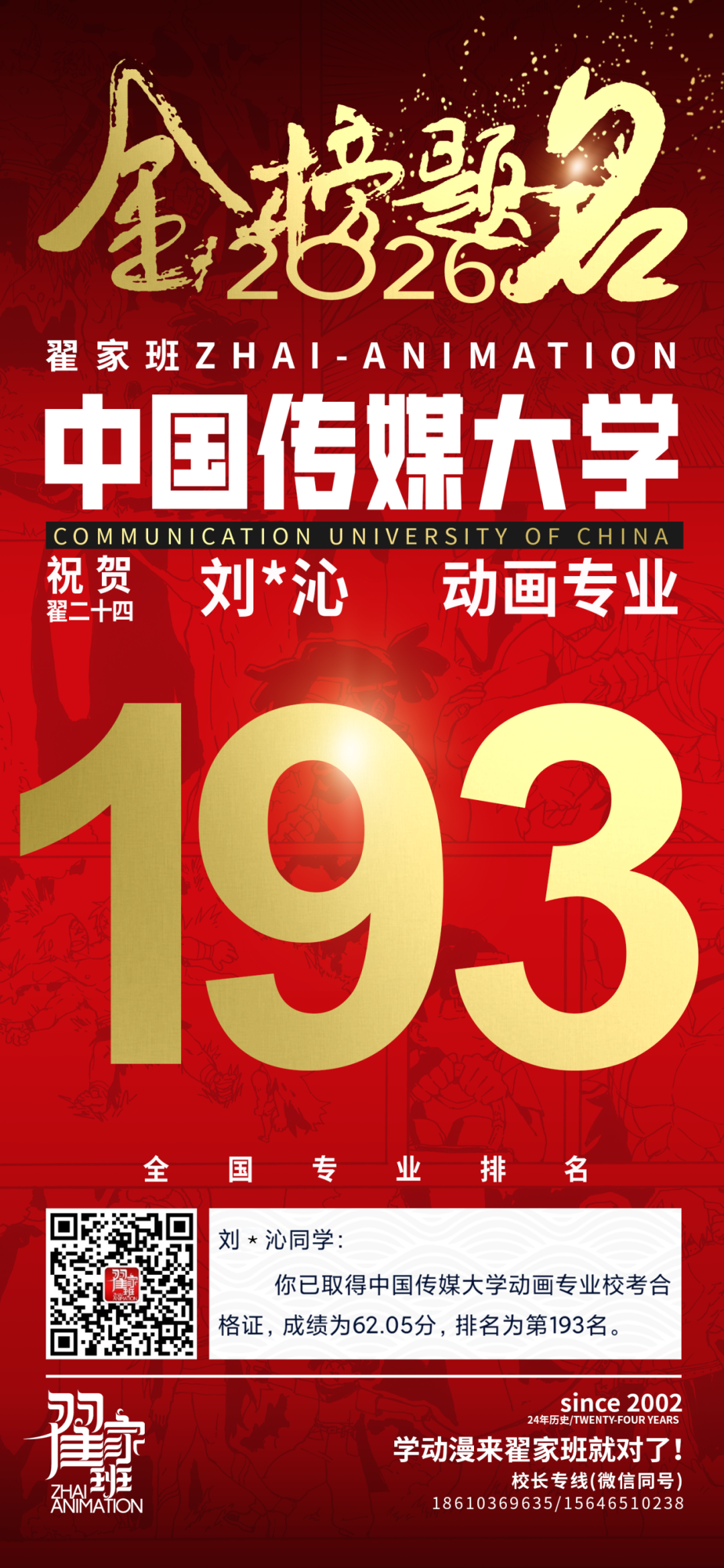 - 翟家班2026中国传媒大学动画专业校考成绩领跑全国