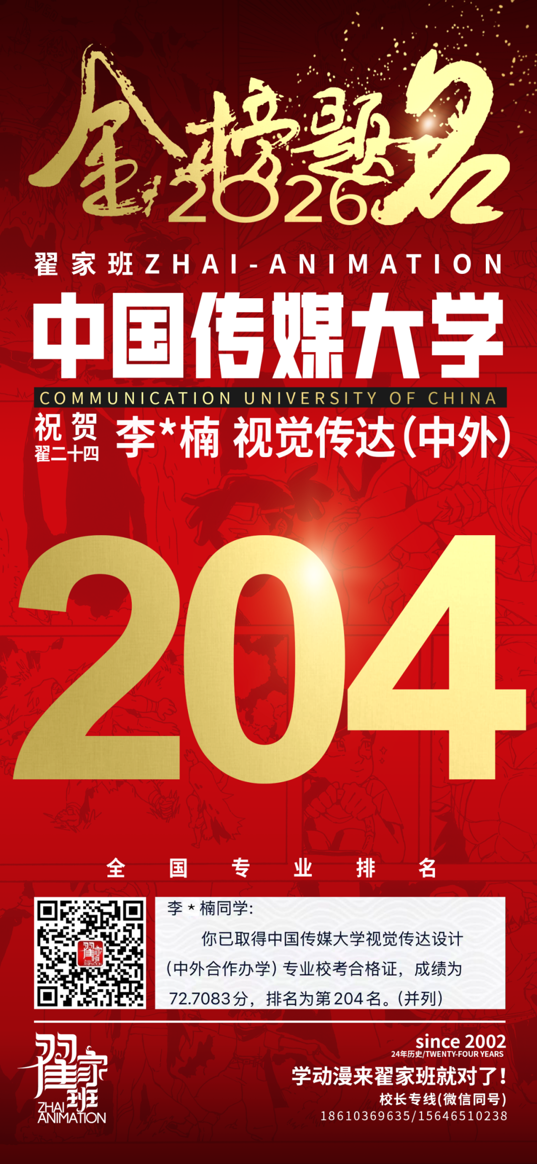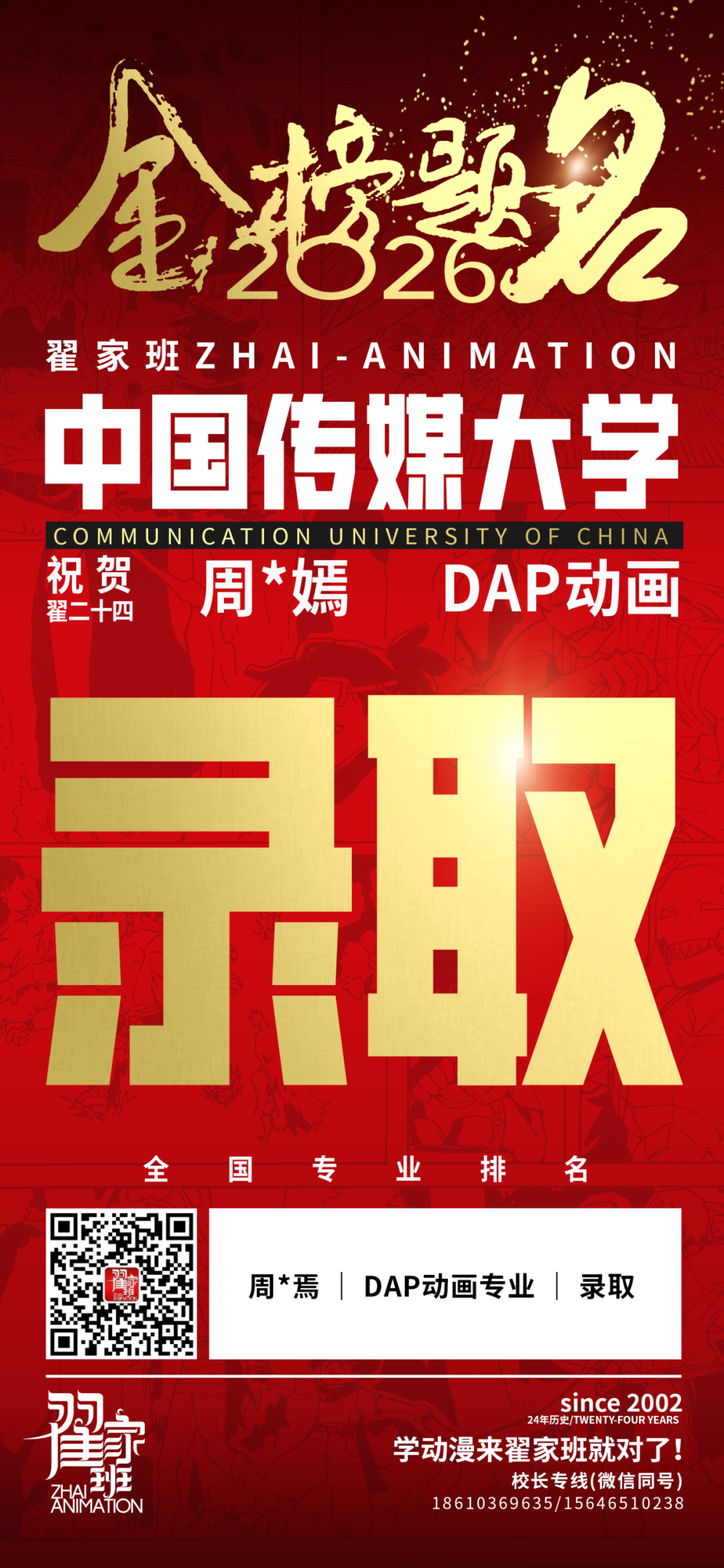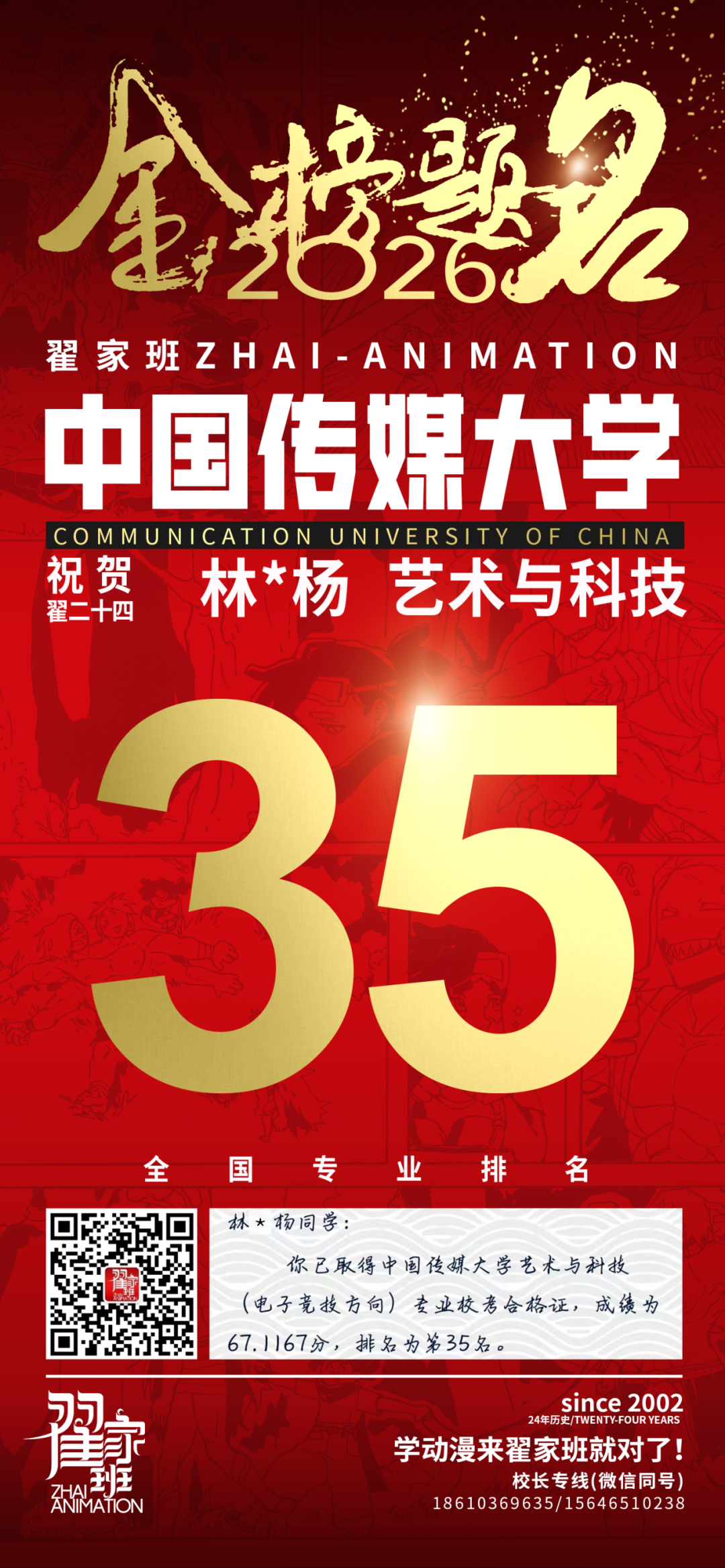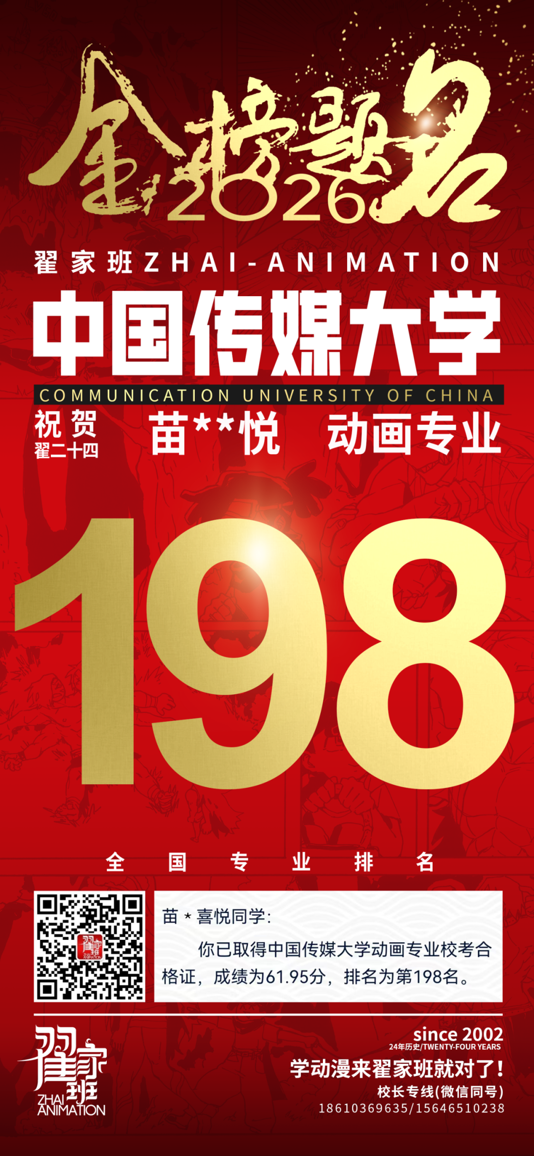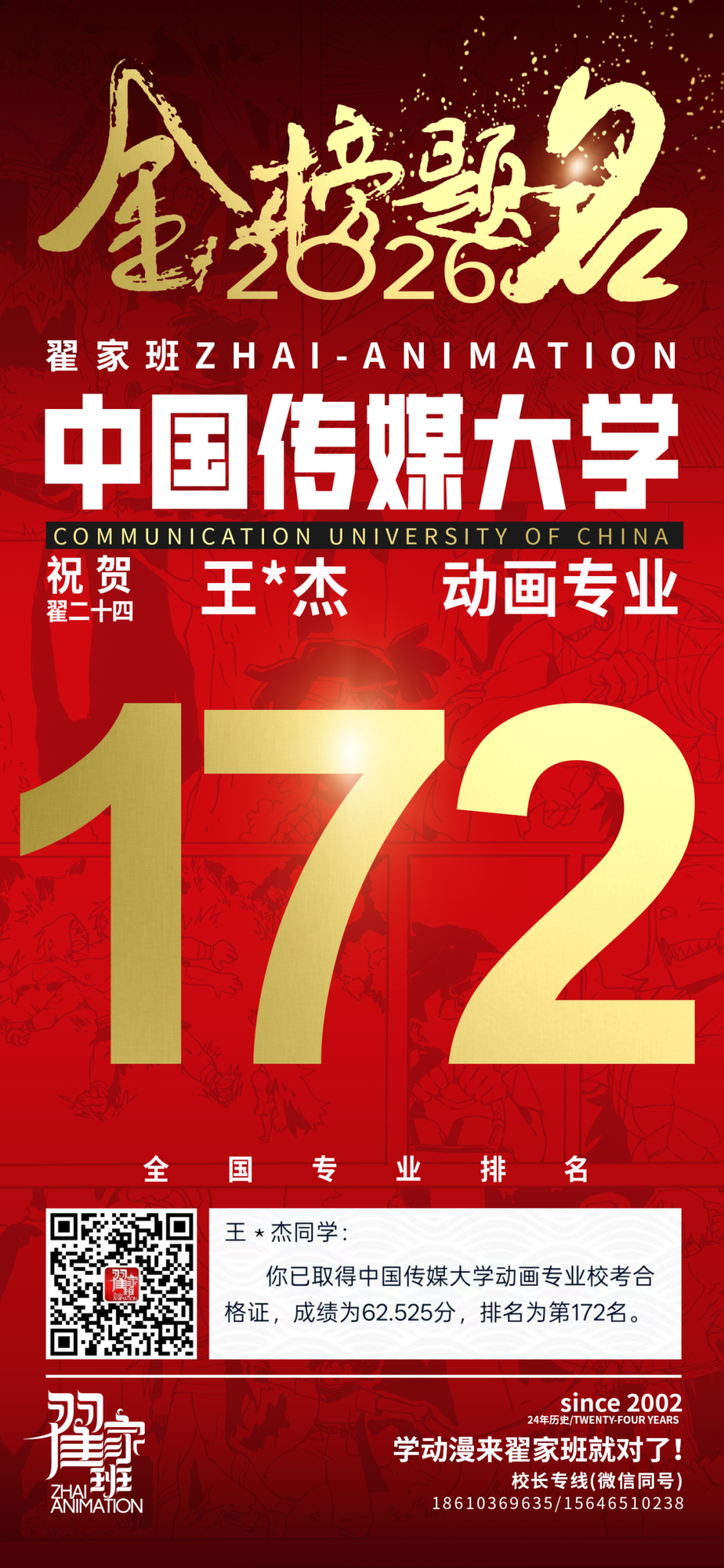 - 翟家班2026中国传媒大学动画专业校考成绩领跑全国
