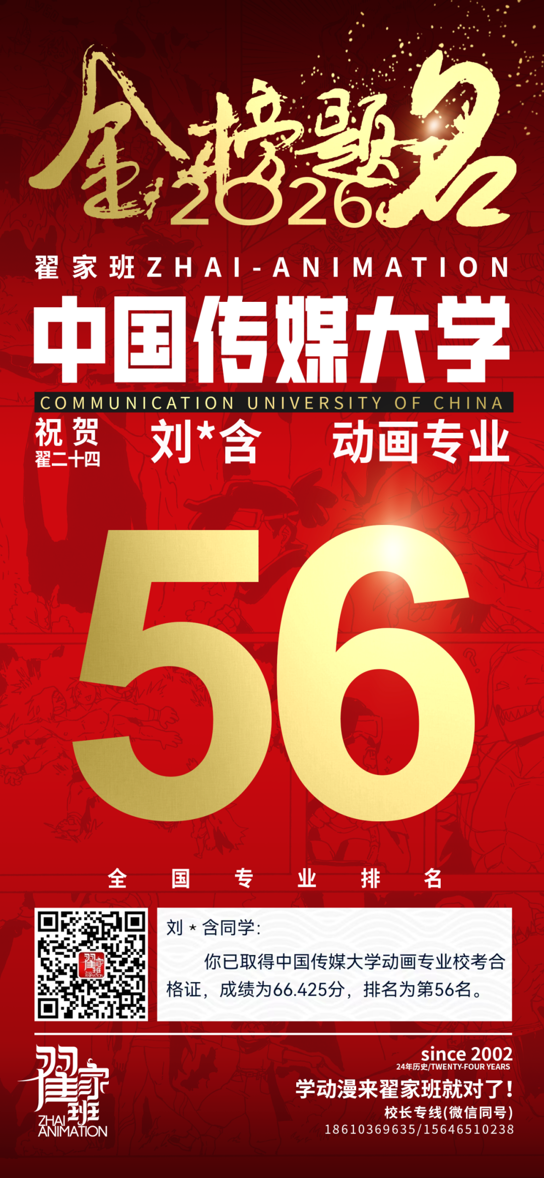 翟家班2026中国传媒大学动画专业校考成绩领跑全国