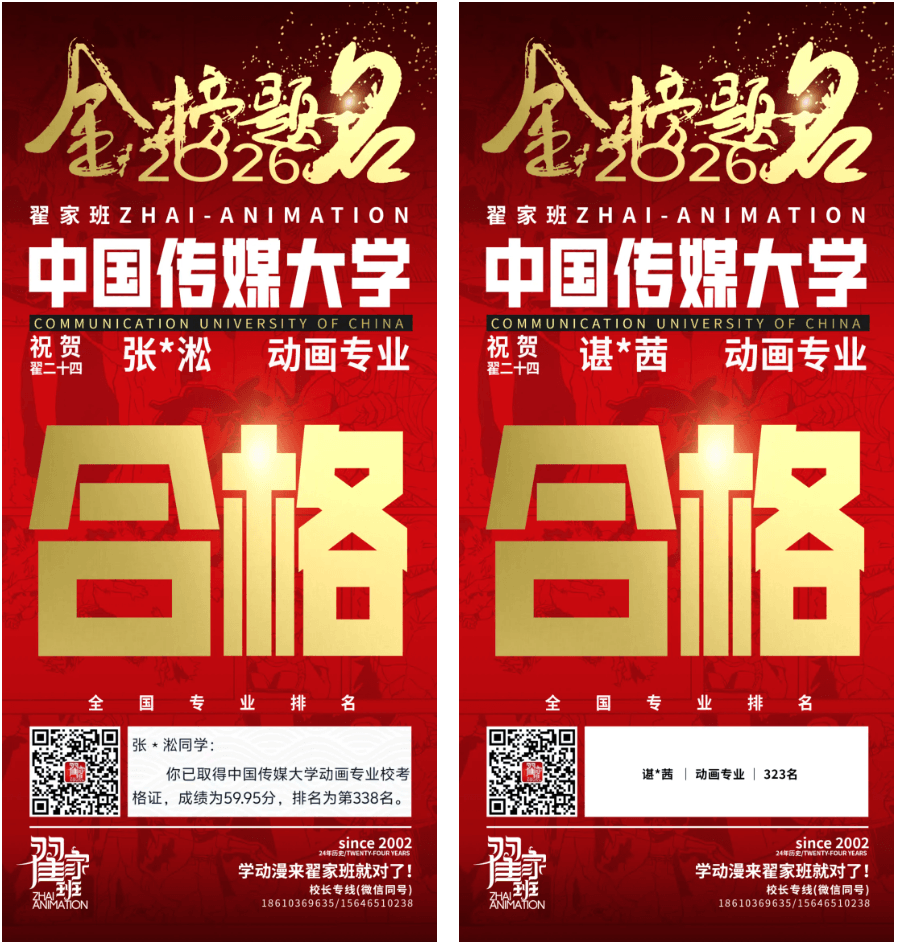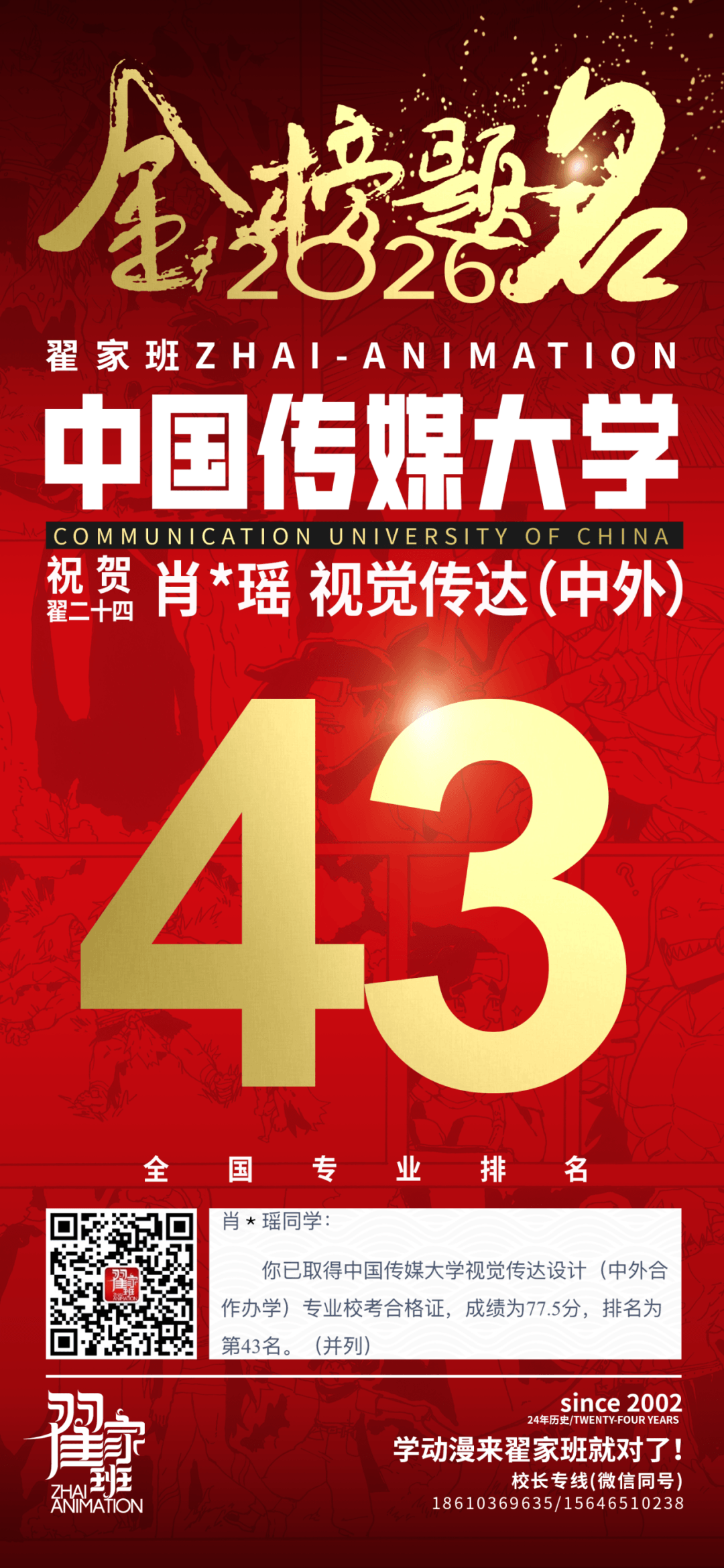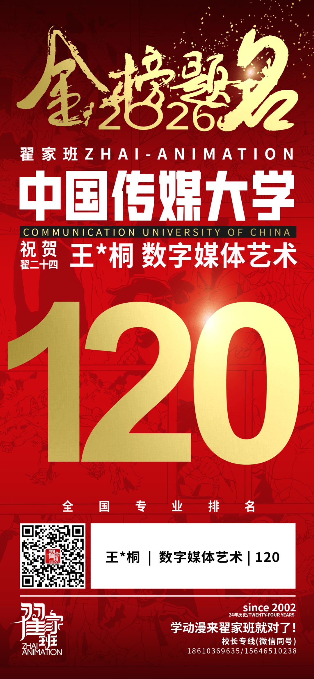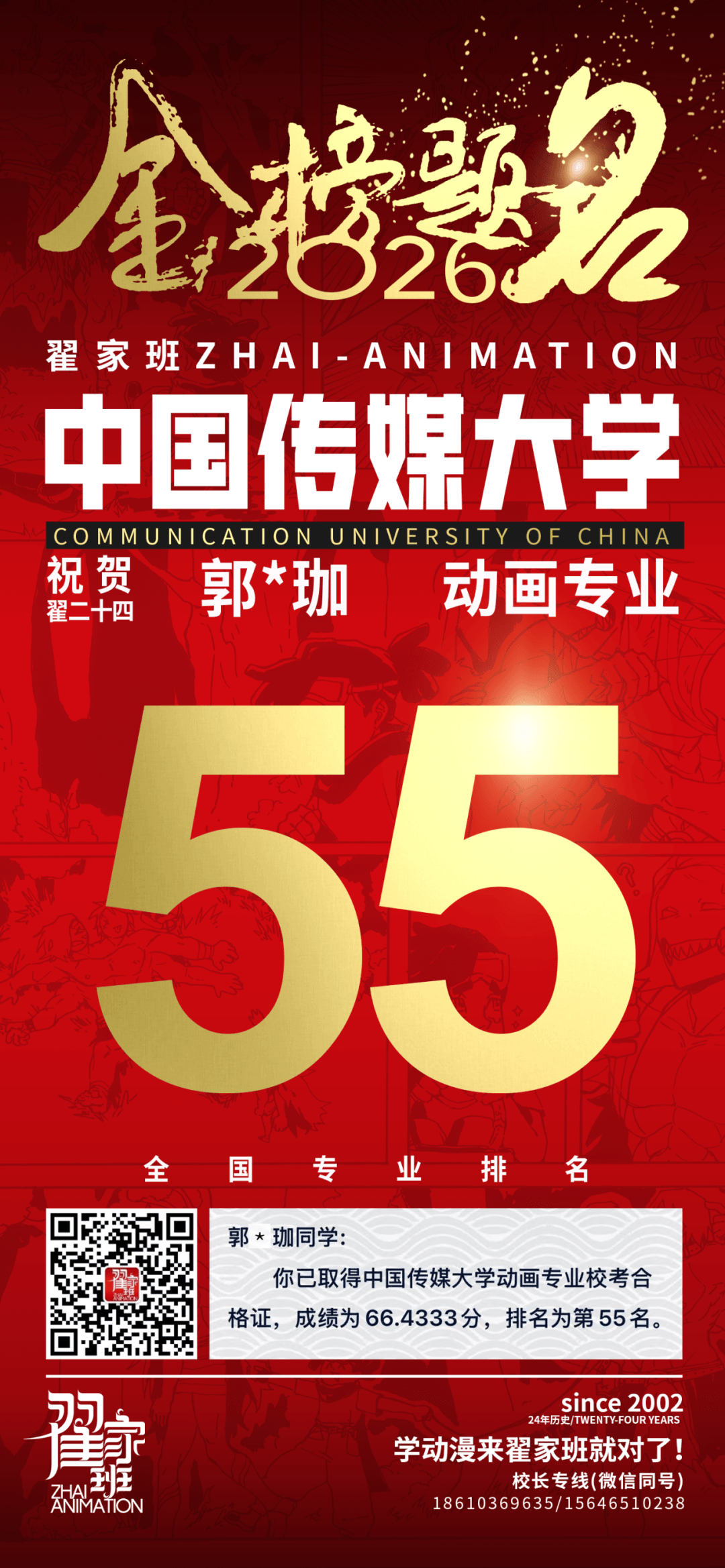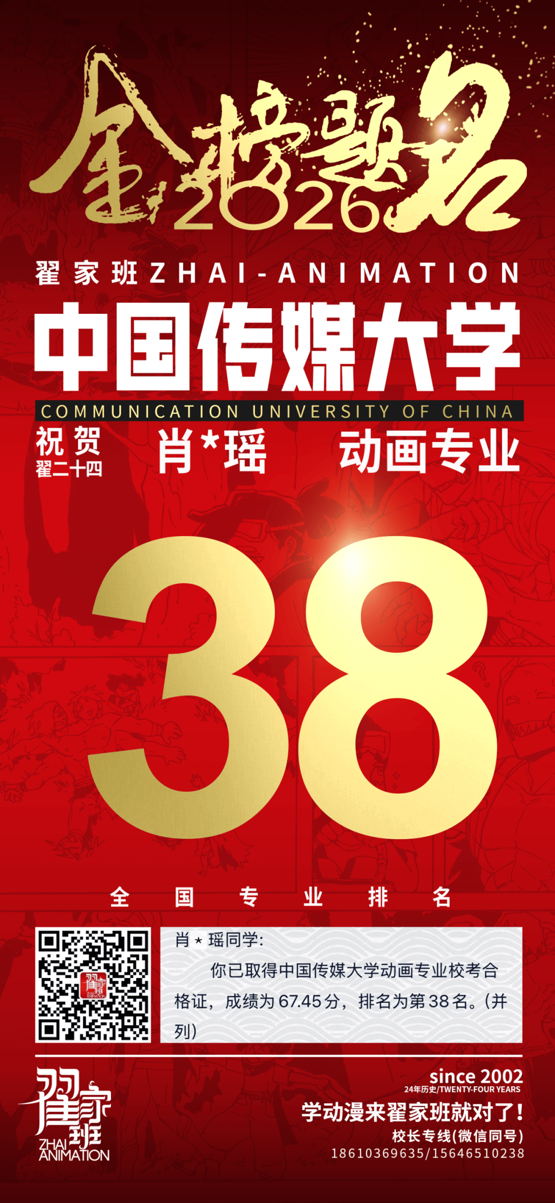 - 翟家班2026中国传媒大学动画专业校考成绩领跑全国