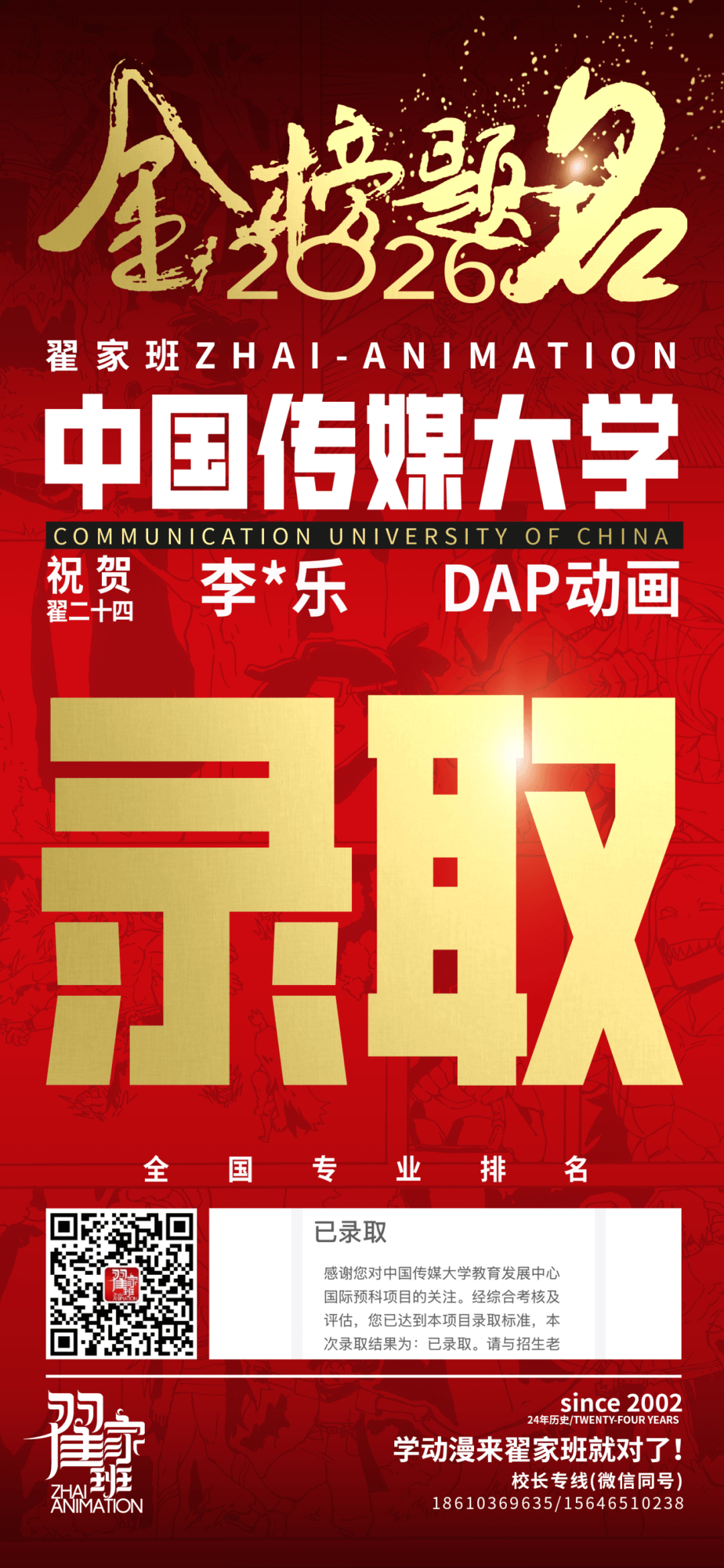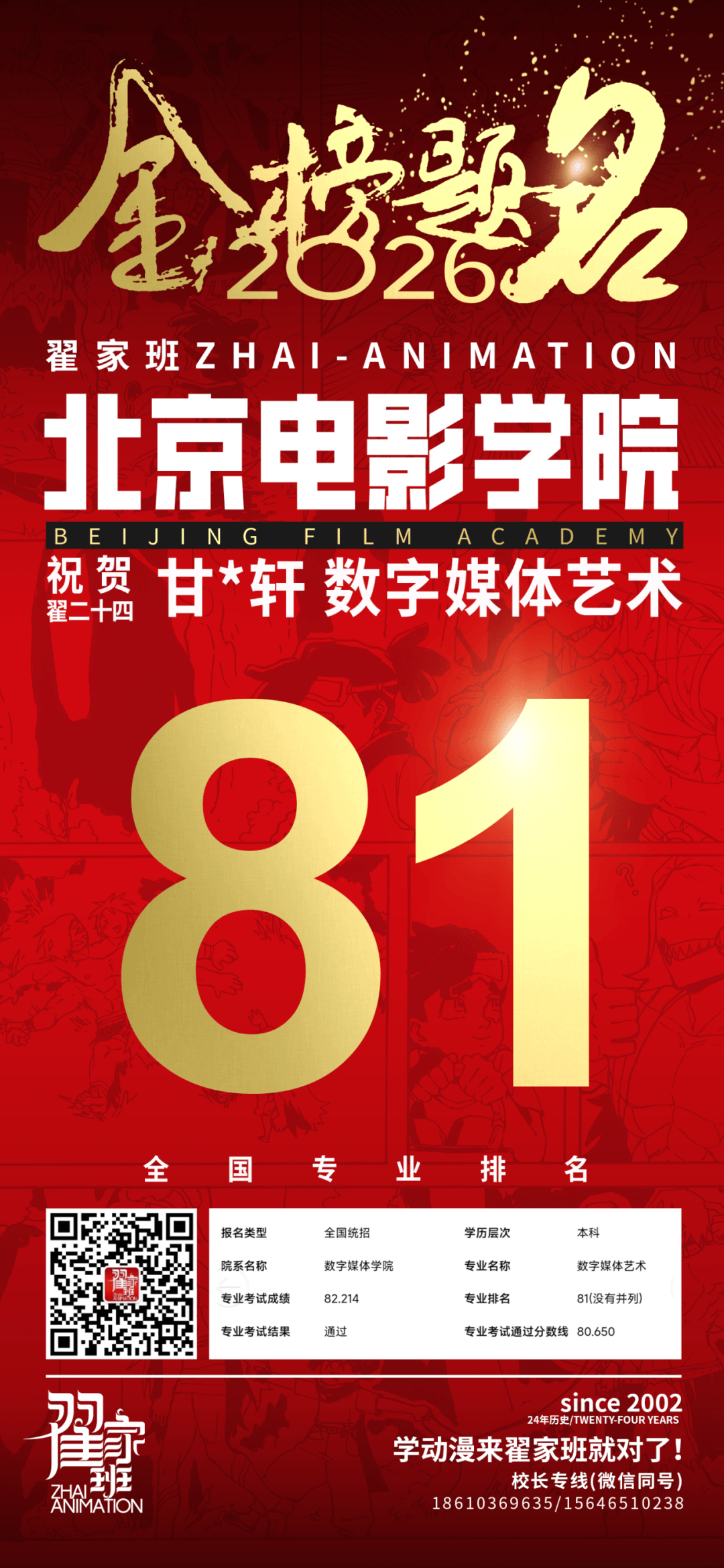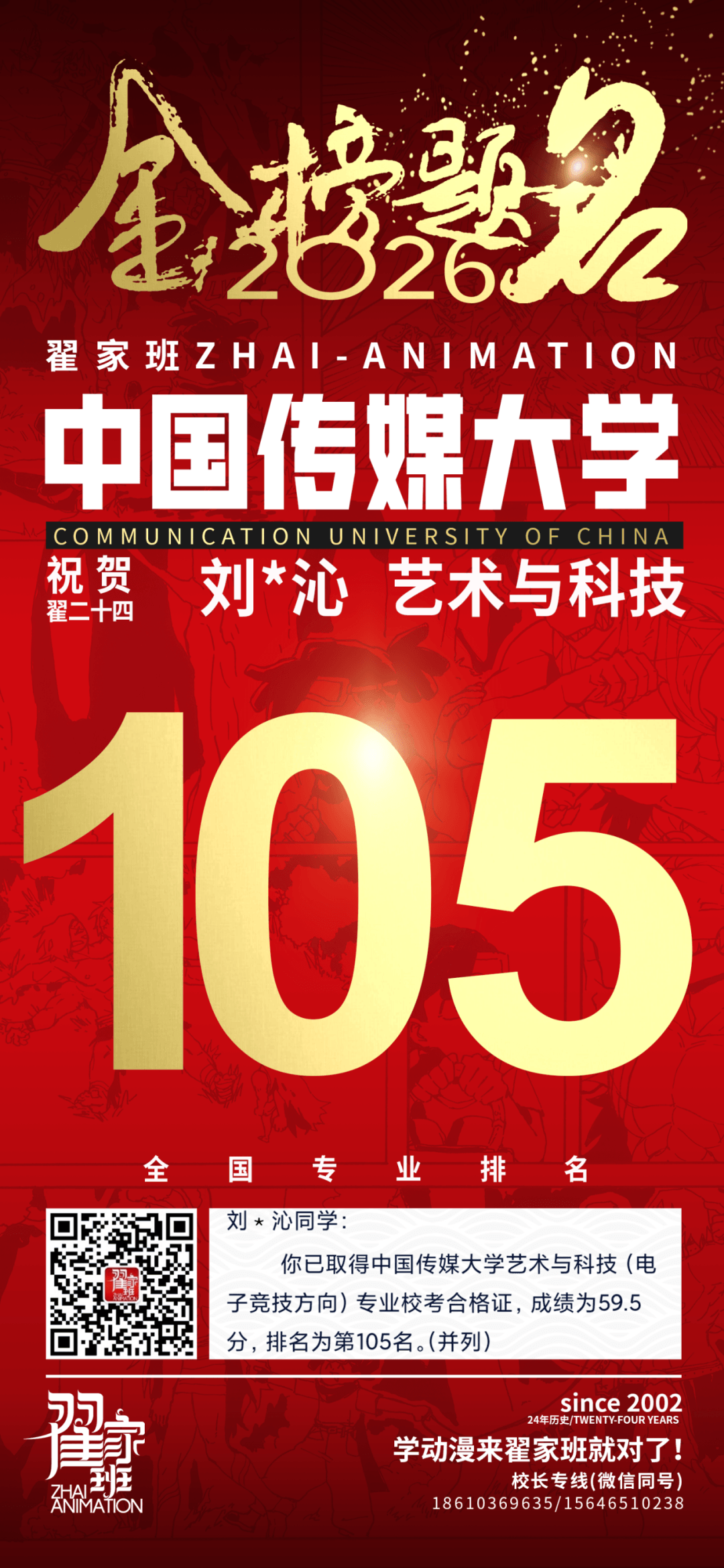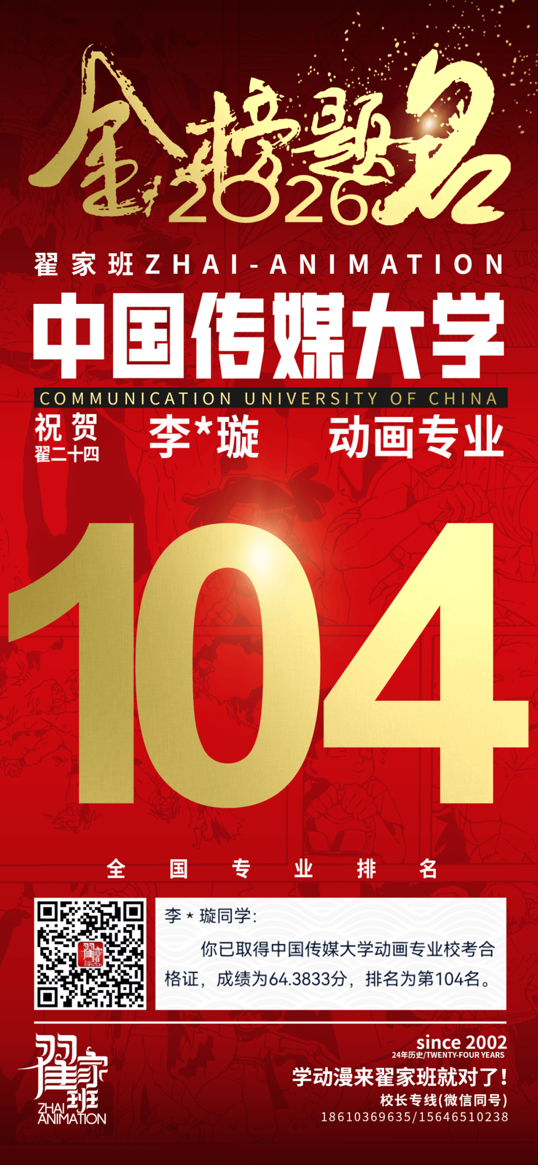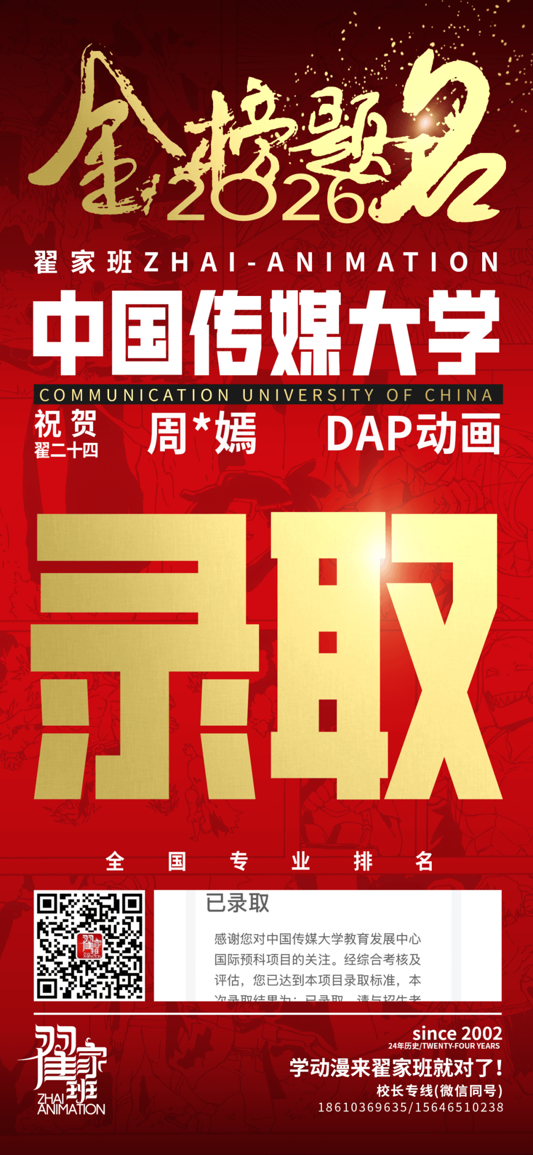 - 翟家班2026中国传媒大学动画专业校考成绩领跑全国