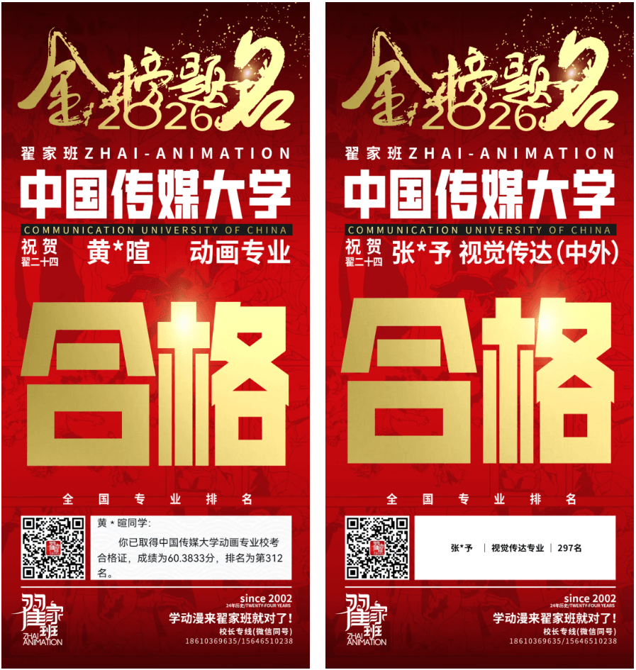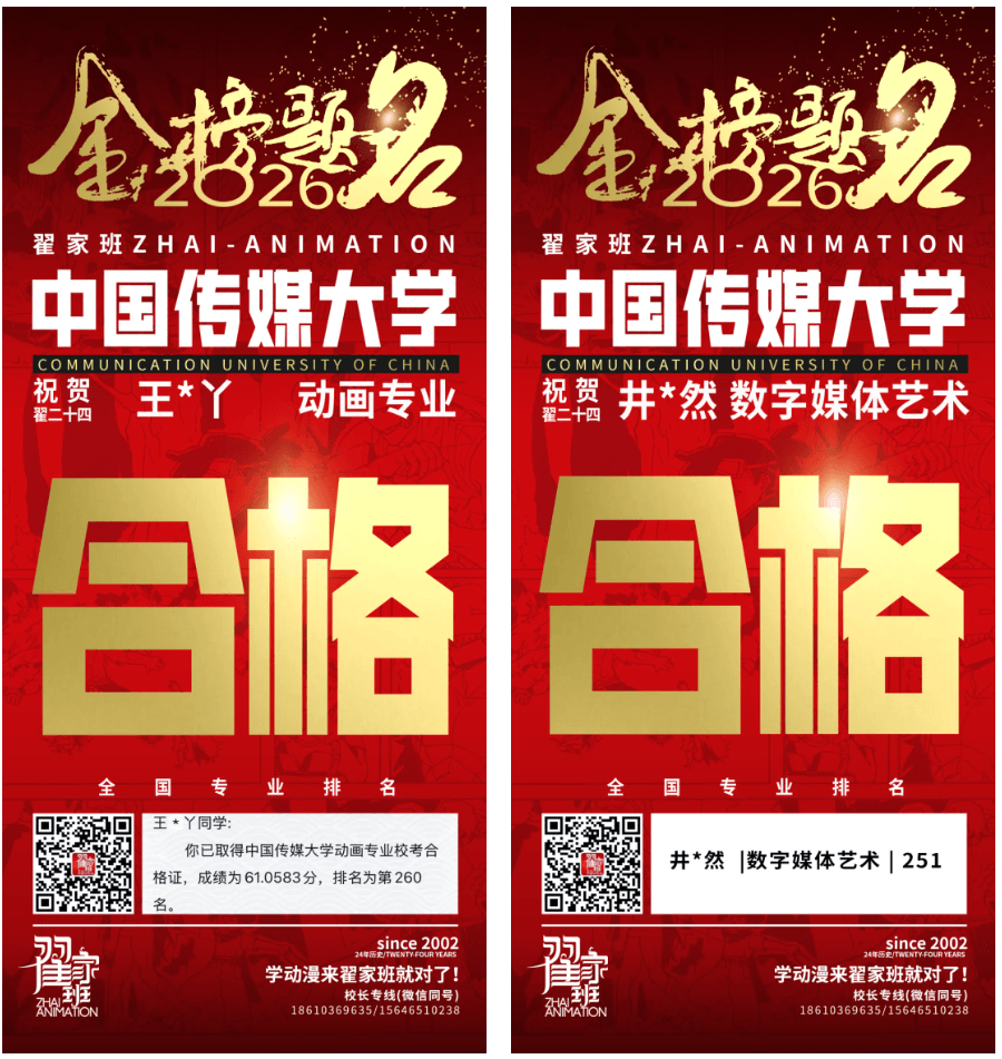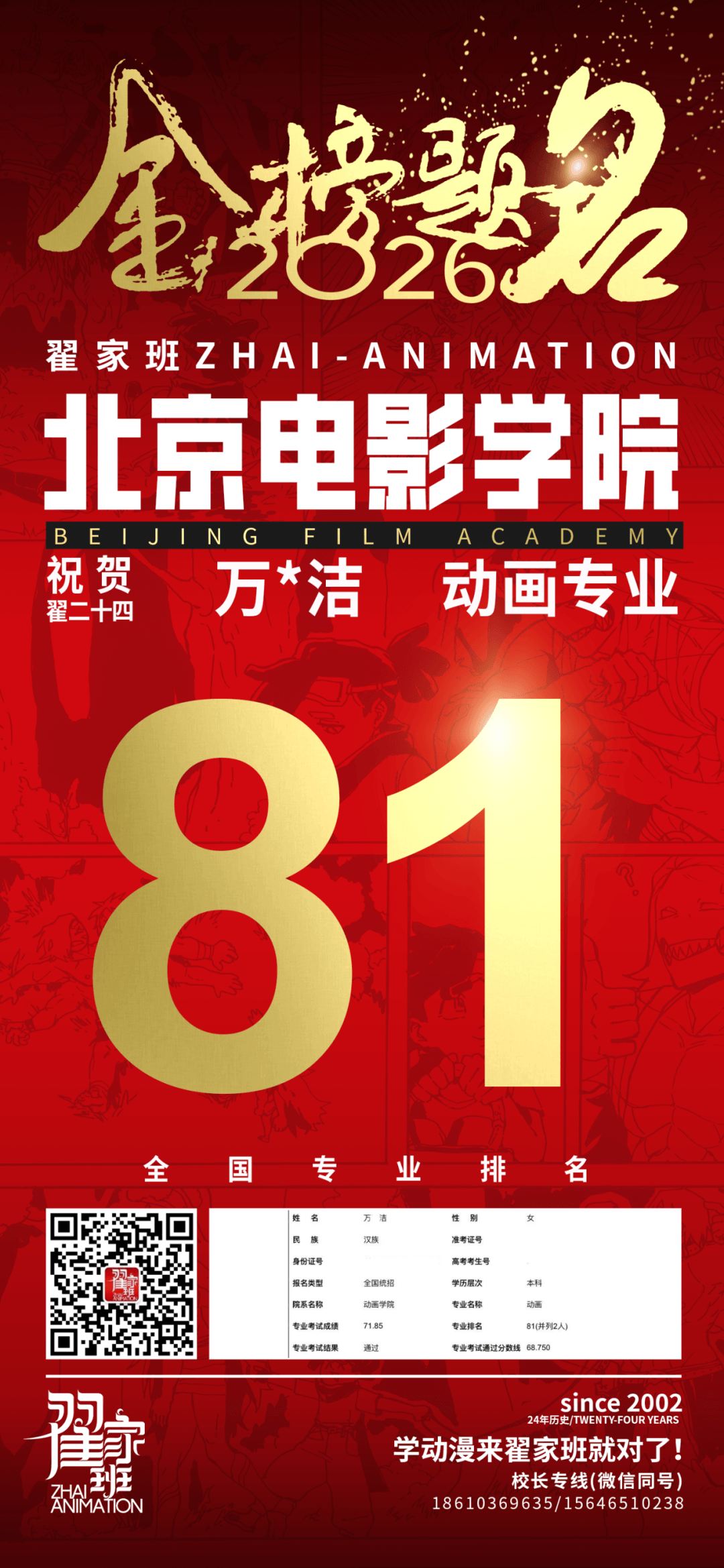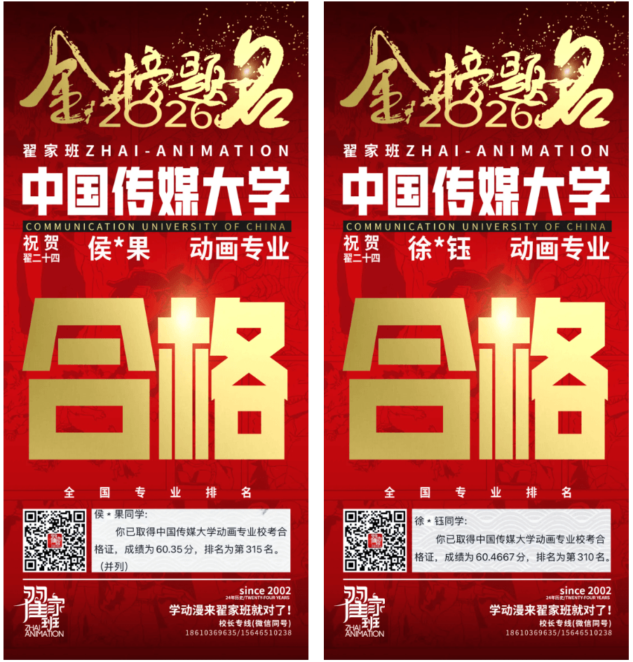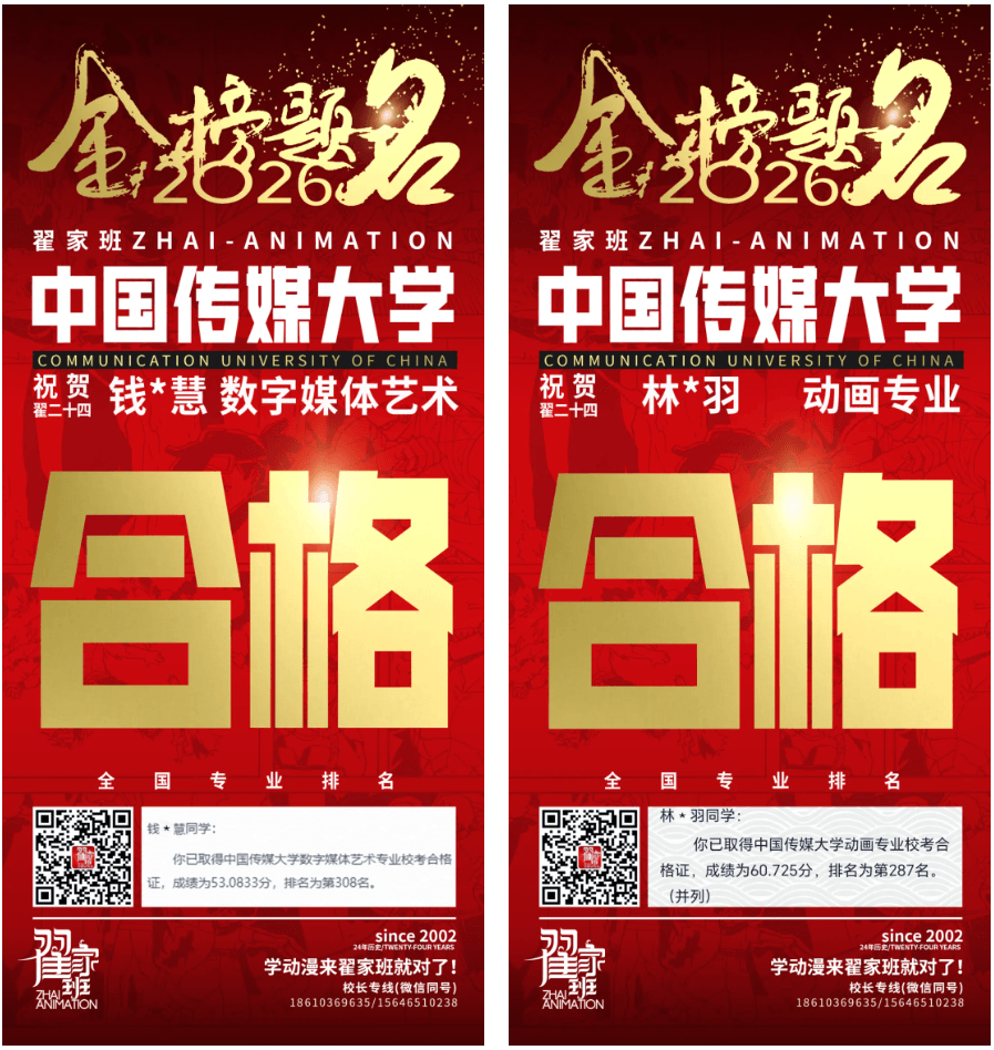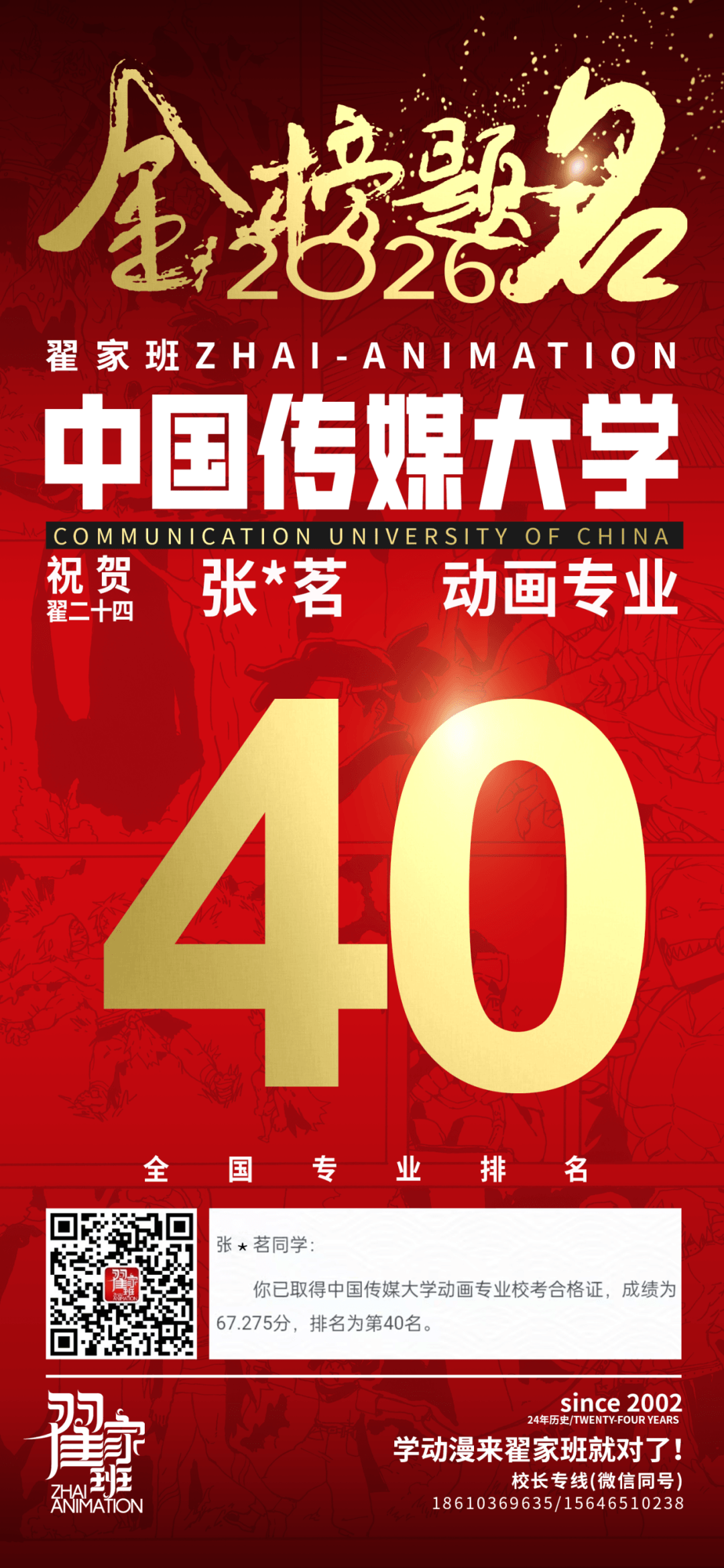 - 翟家班2026中国传媒大学动画专业校考成绩领跑全国