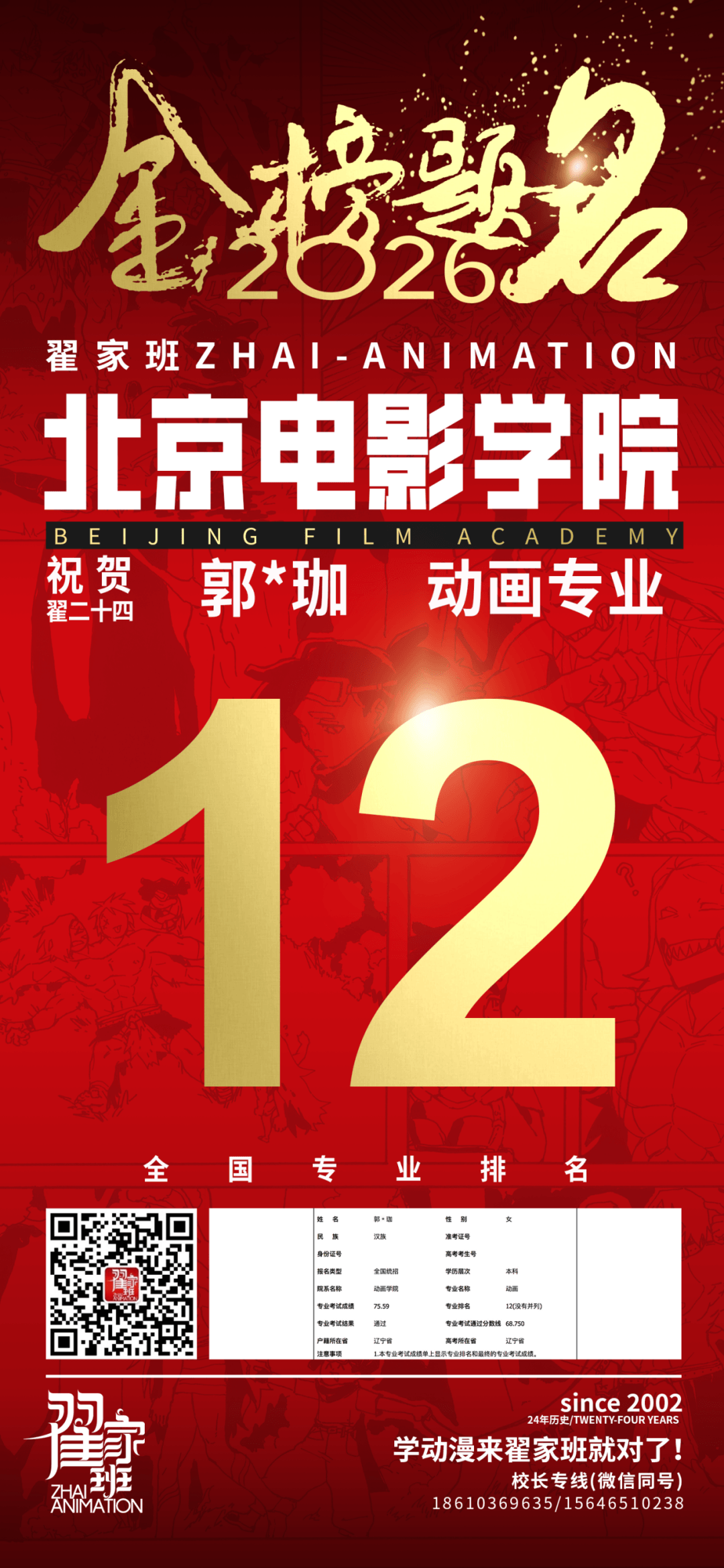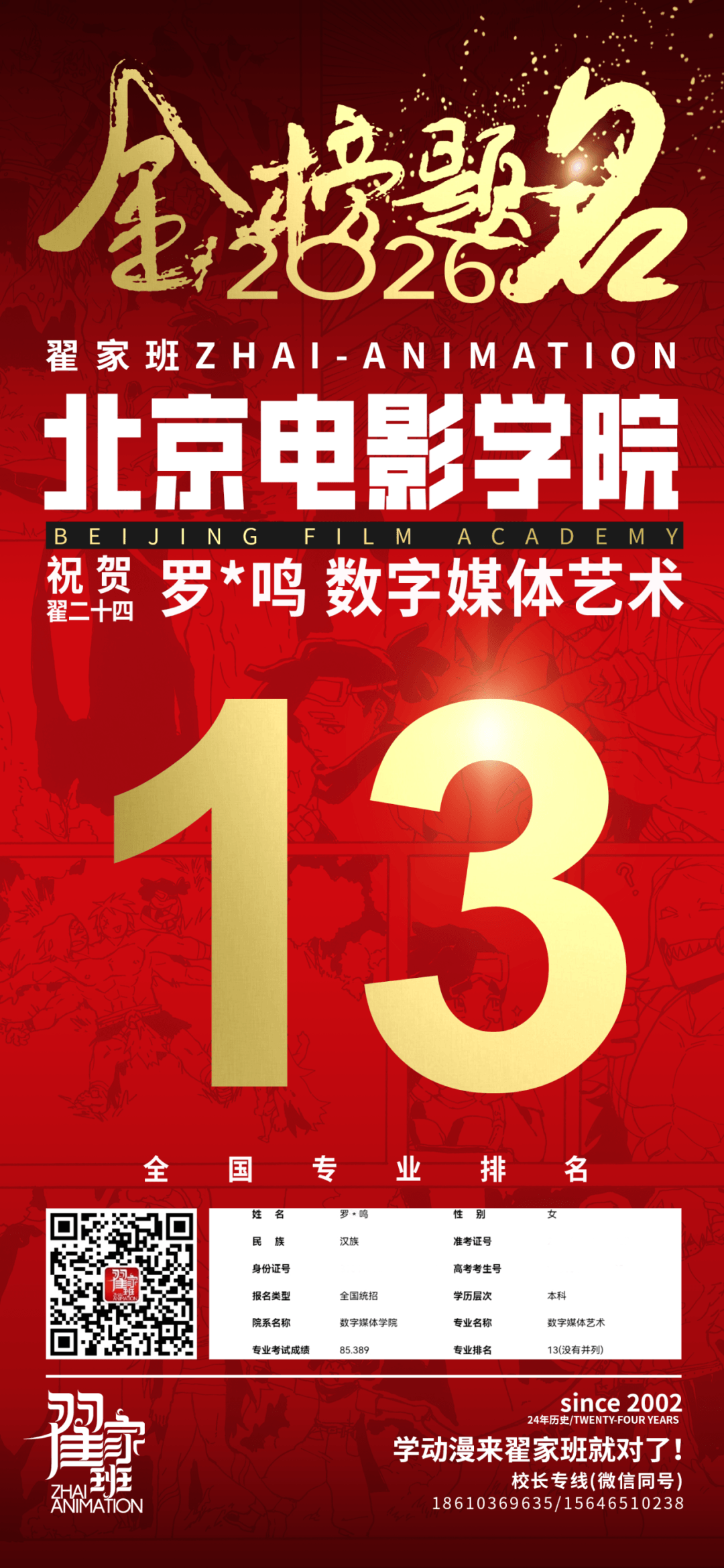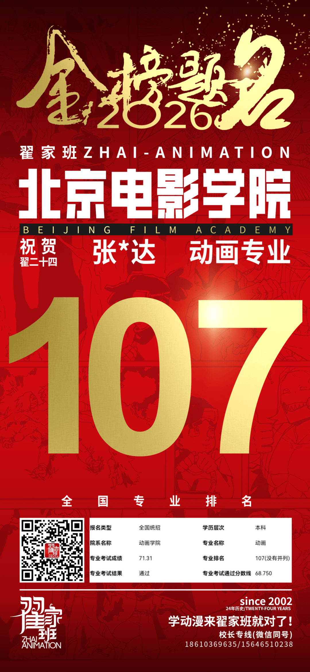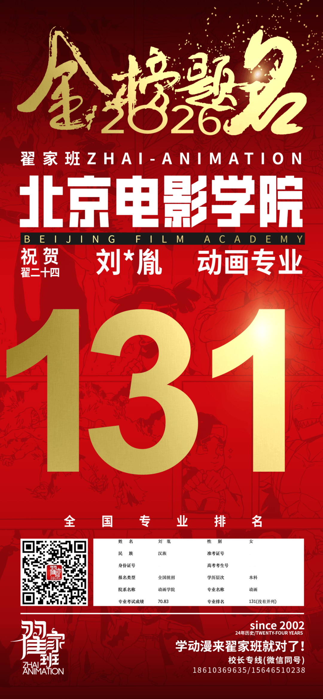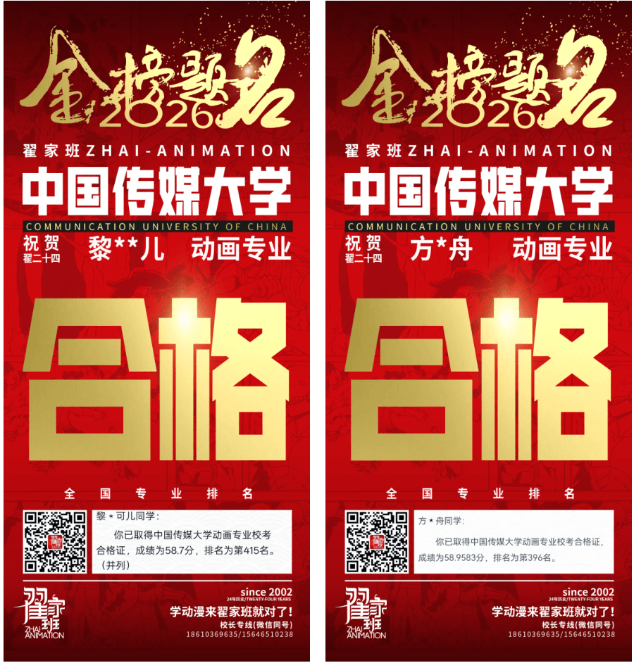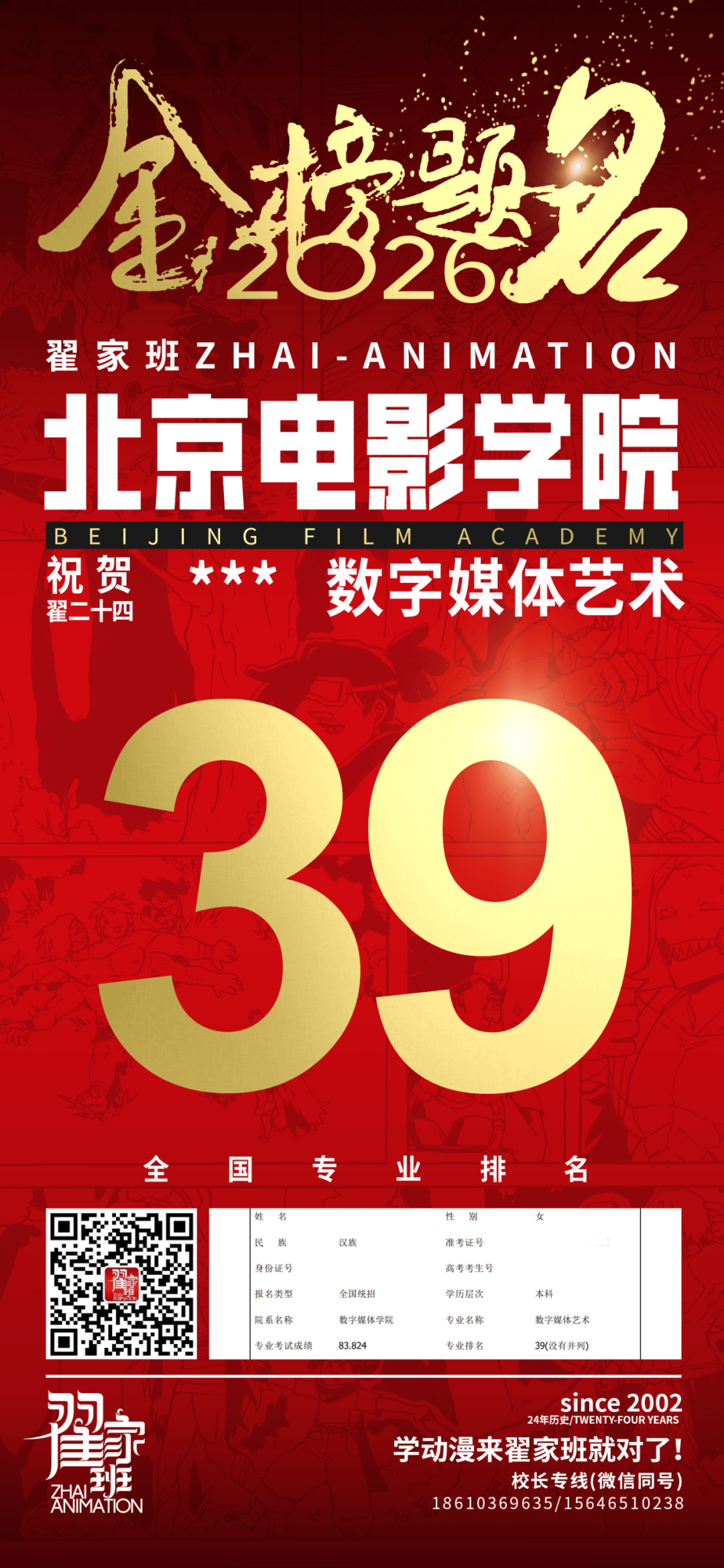 - 翟家班2026中国传媒大学动画专业校考成绩领跑全国