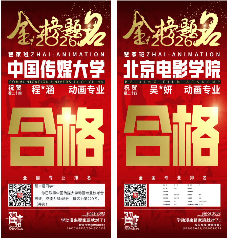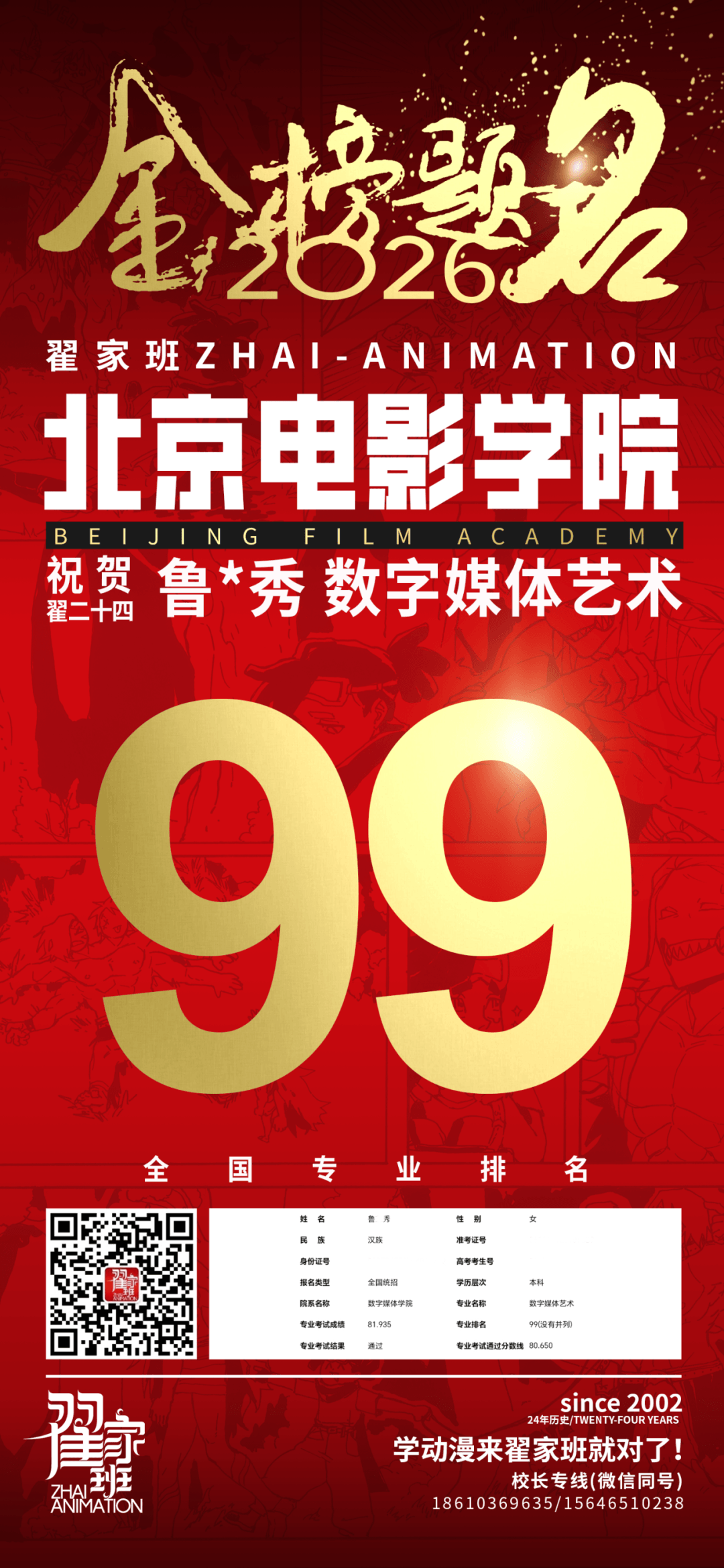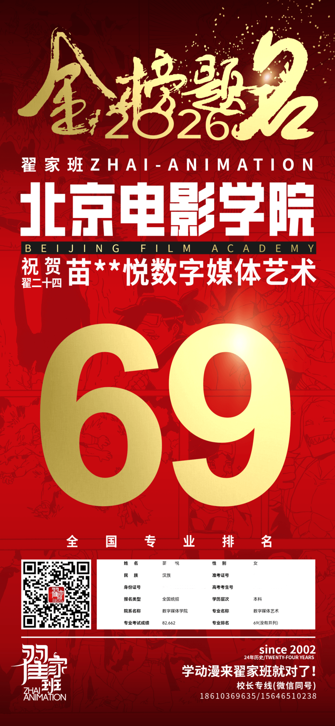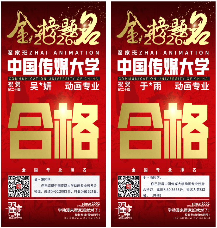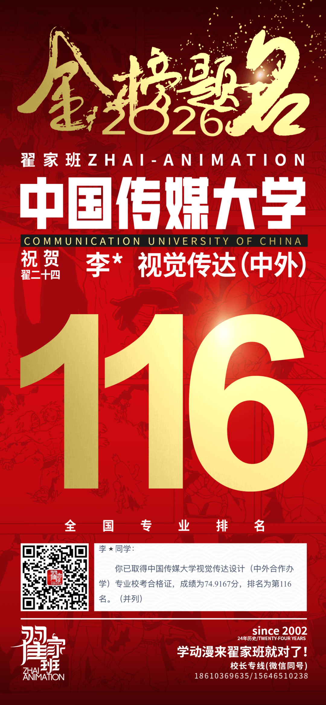 - 翟家班2026中国传媒大学动画专业校考成绩领跑全国