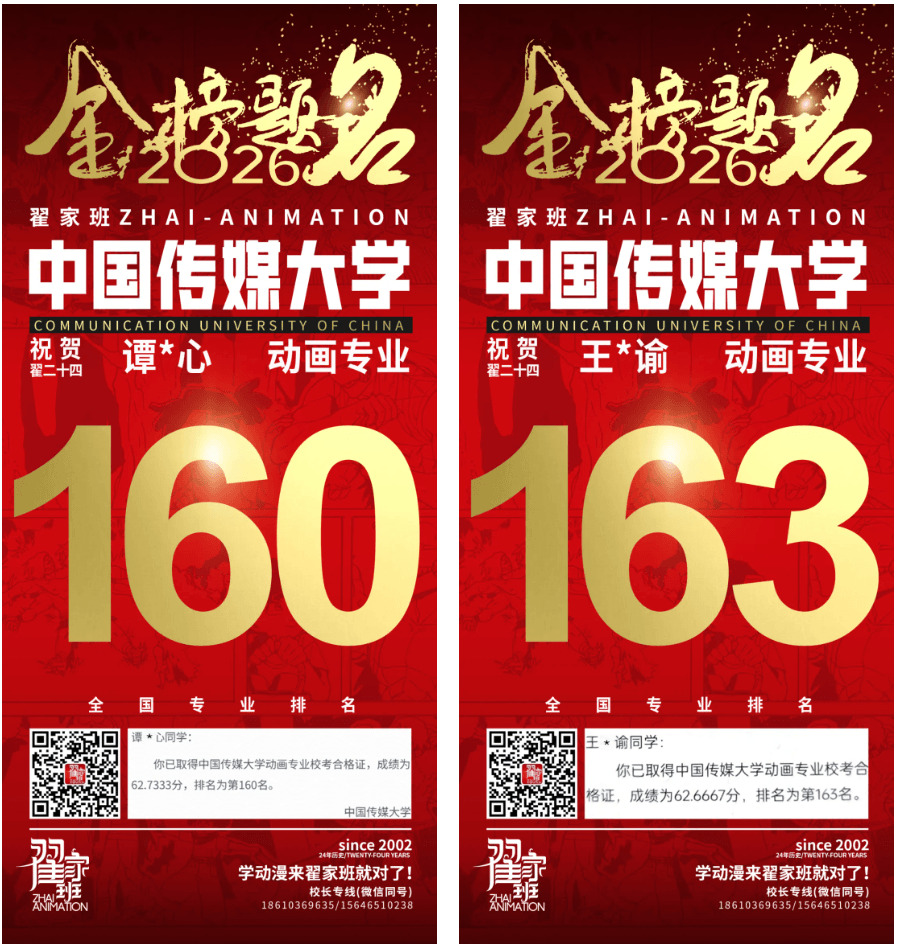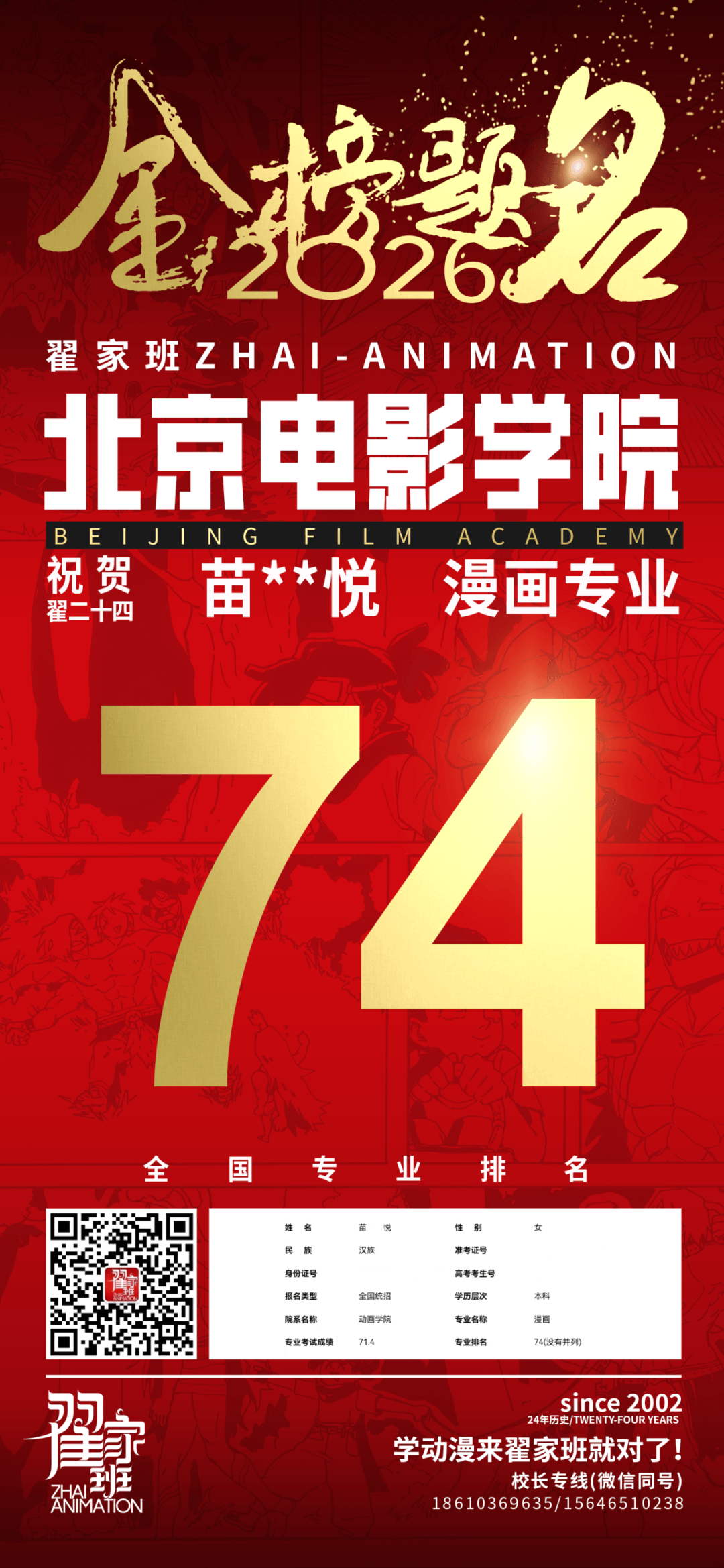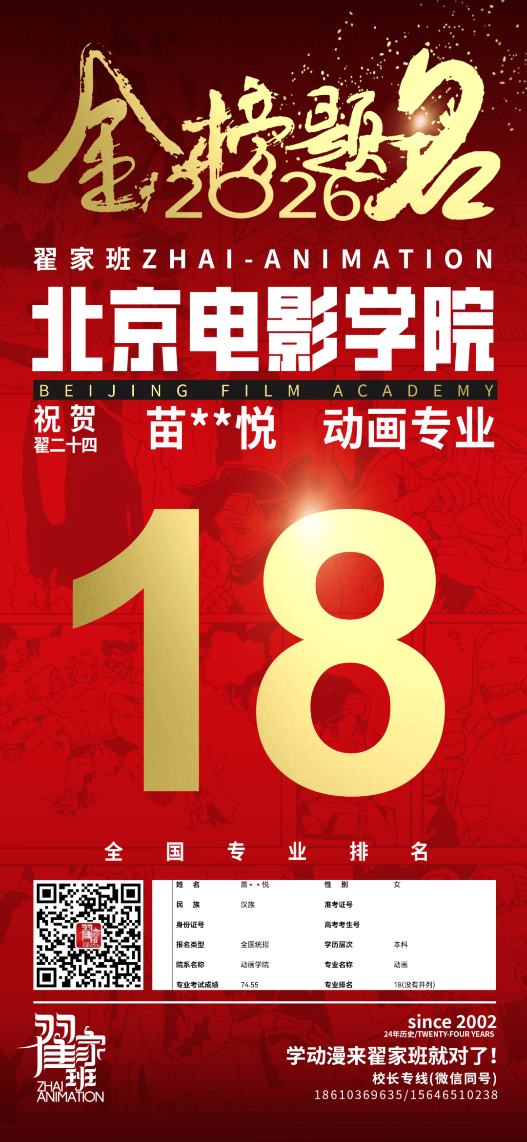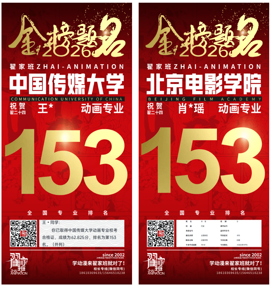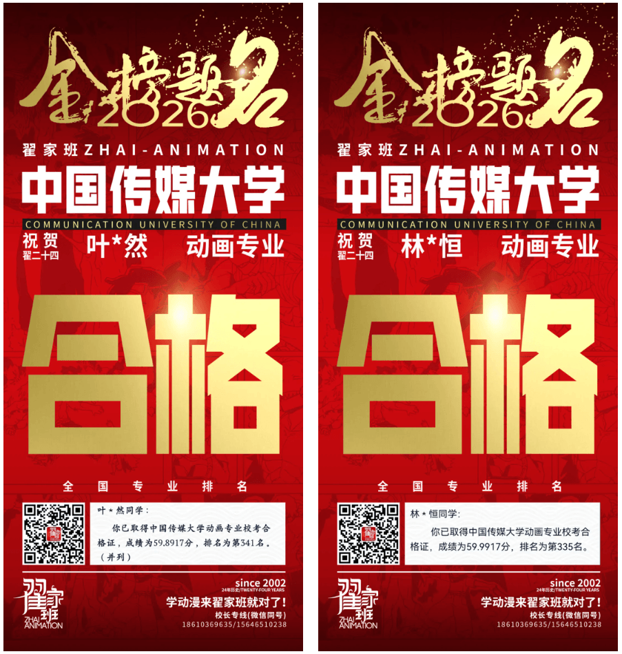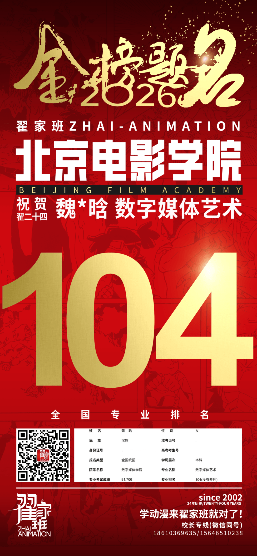 - 翟家班2026中国传媒大学动画专业校考成绩领跑全国