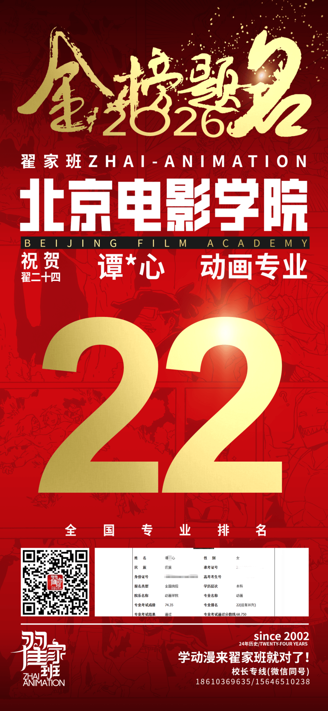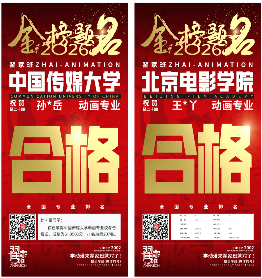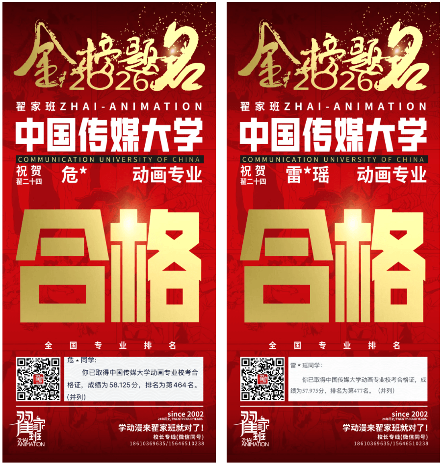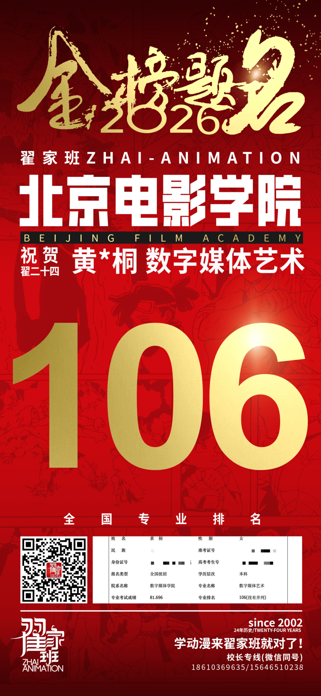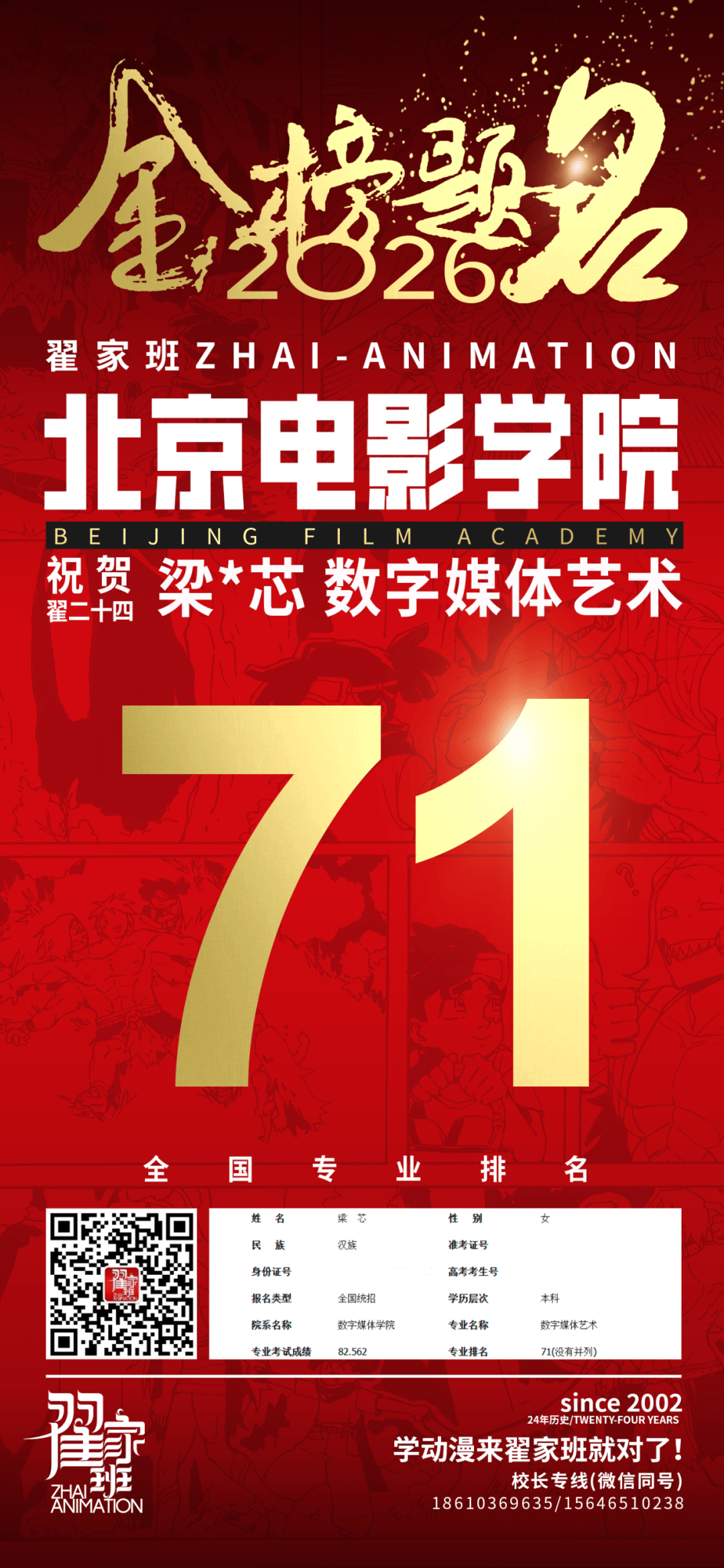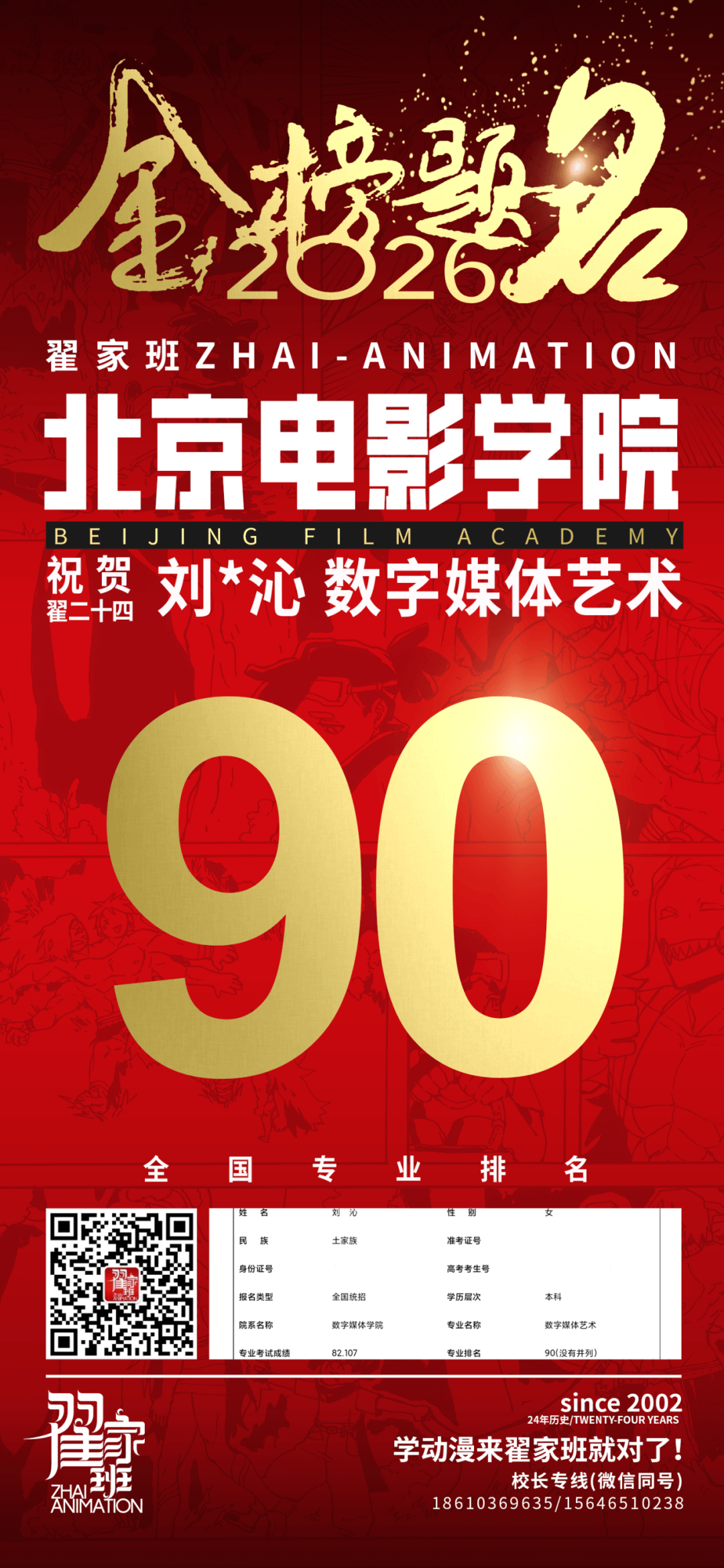 - 翟家班2026中国传媒大学动画专业校考成绩领跑全国