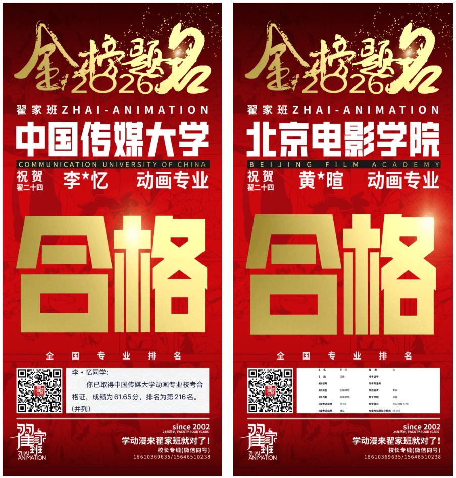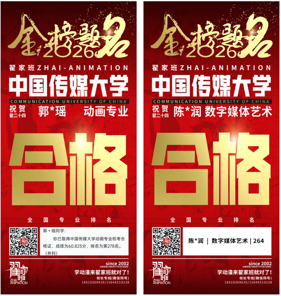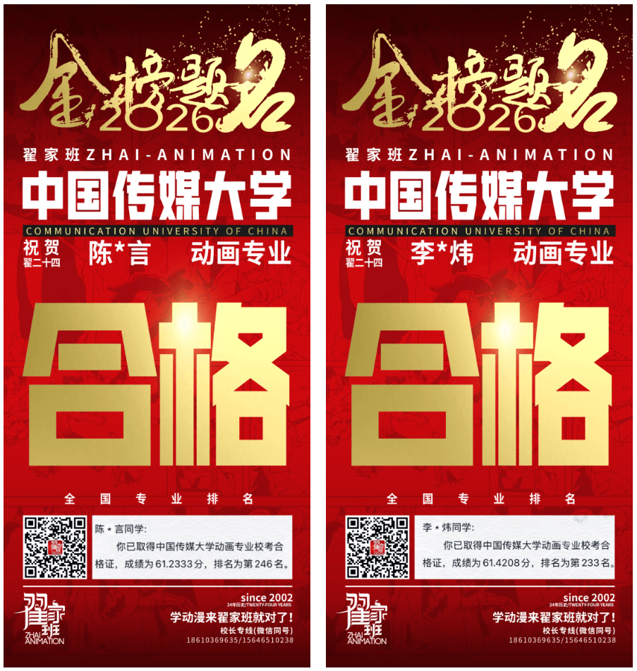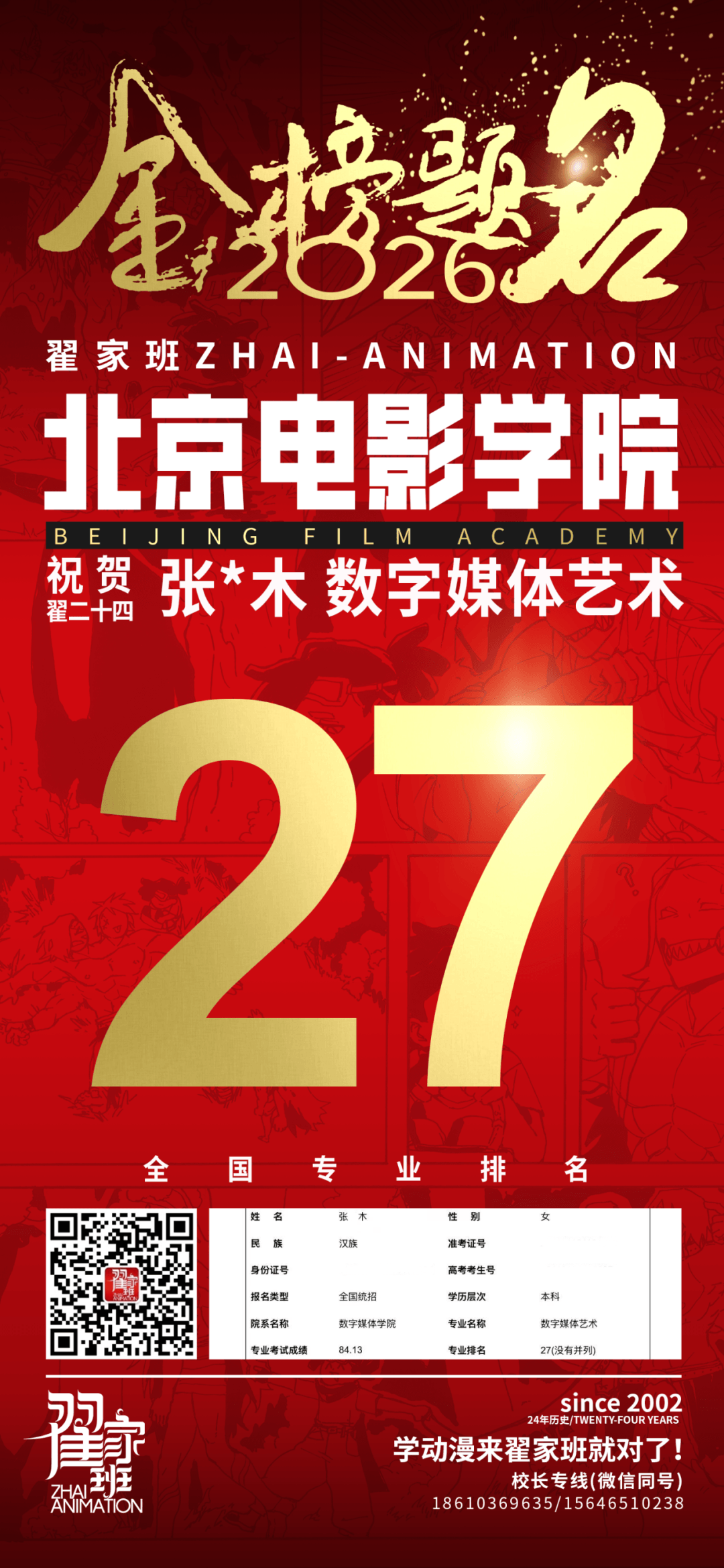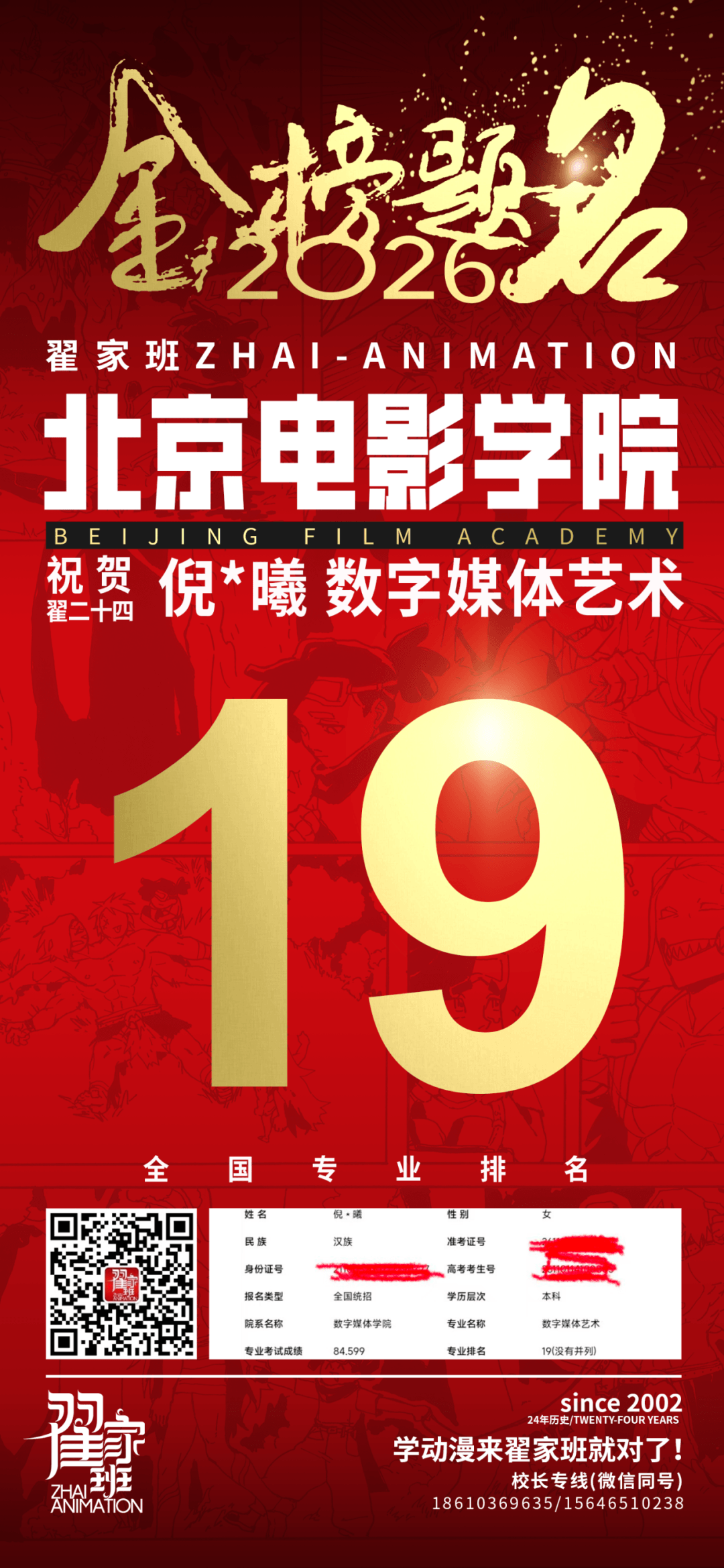 - 翟家班2026中国传媒大学动画专业校考成绩领跑全国