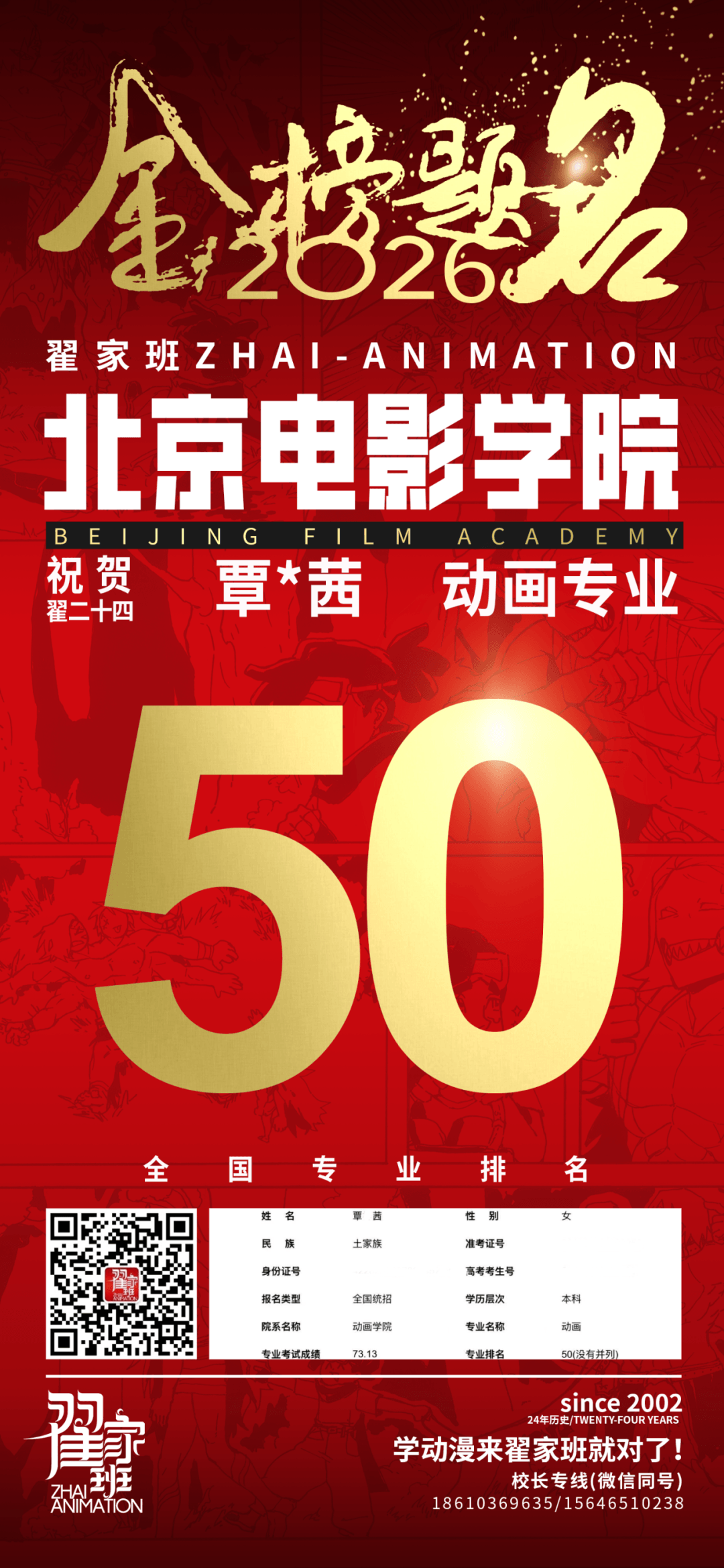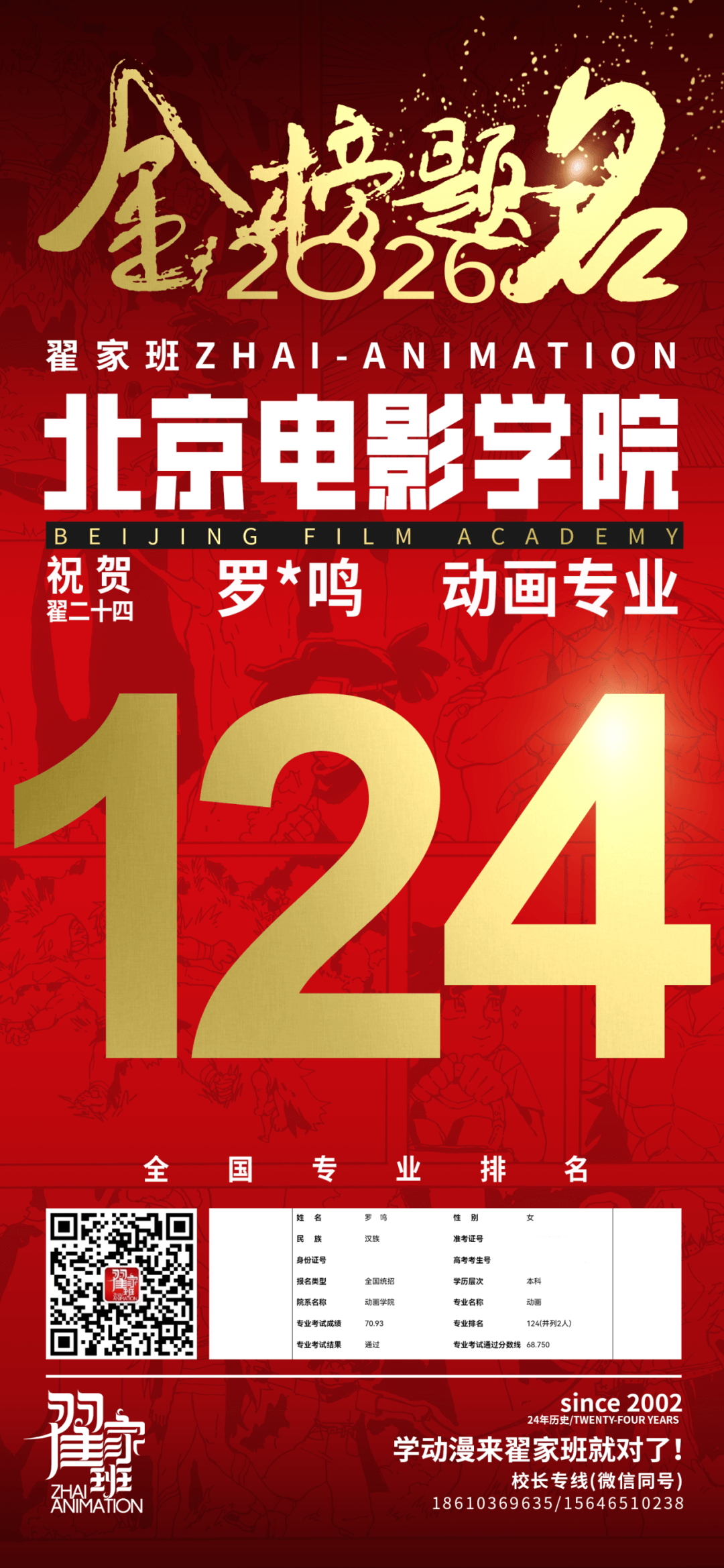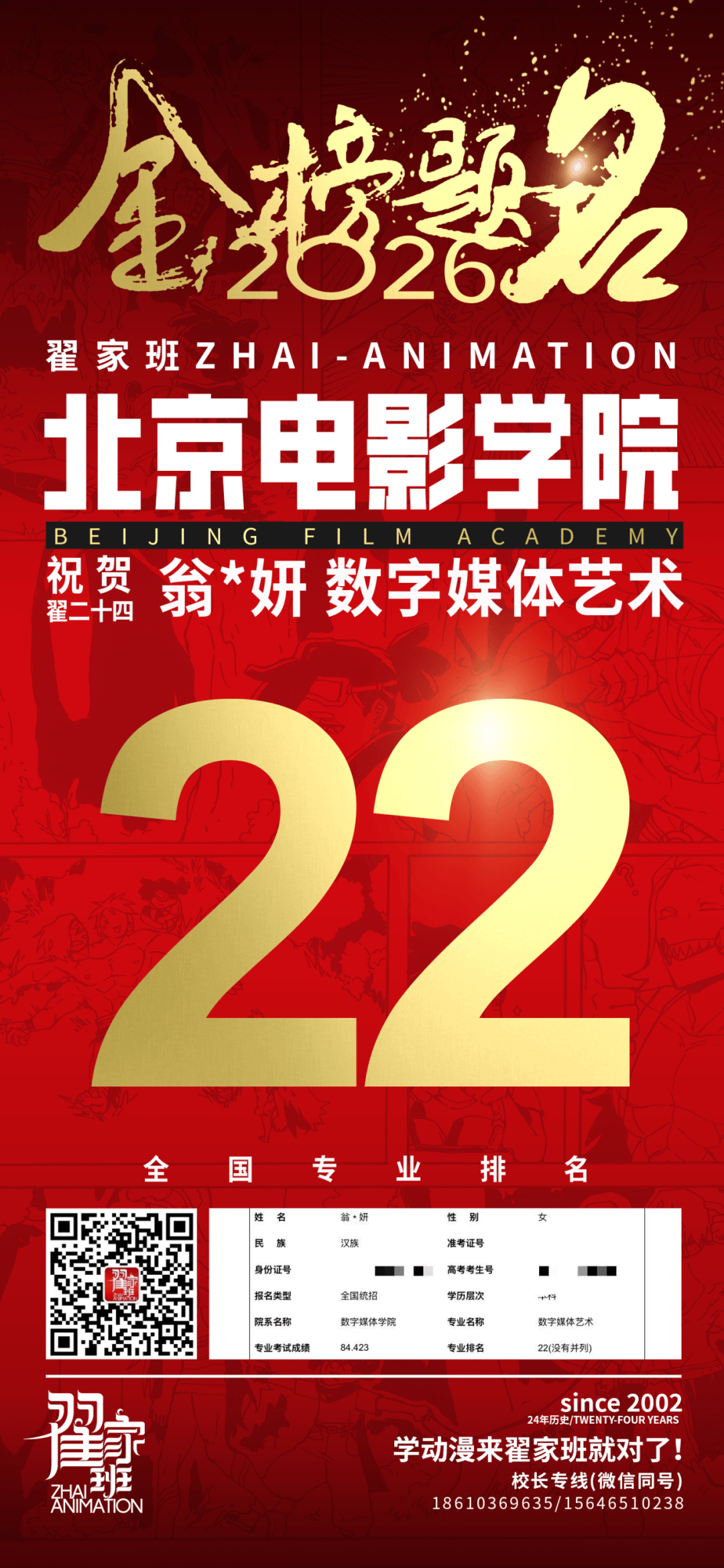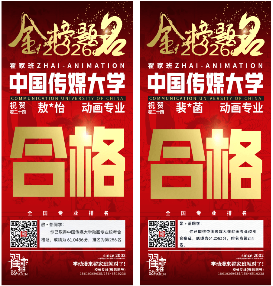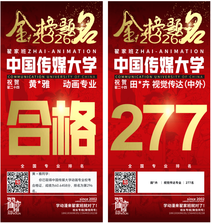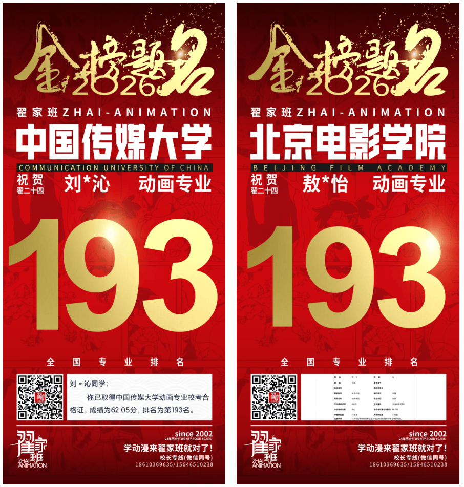 - 翟家班2026中国传媒大学动画专业校考成绩领跑全国