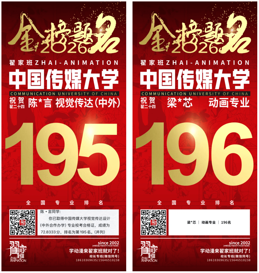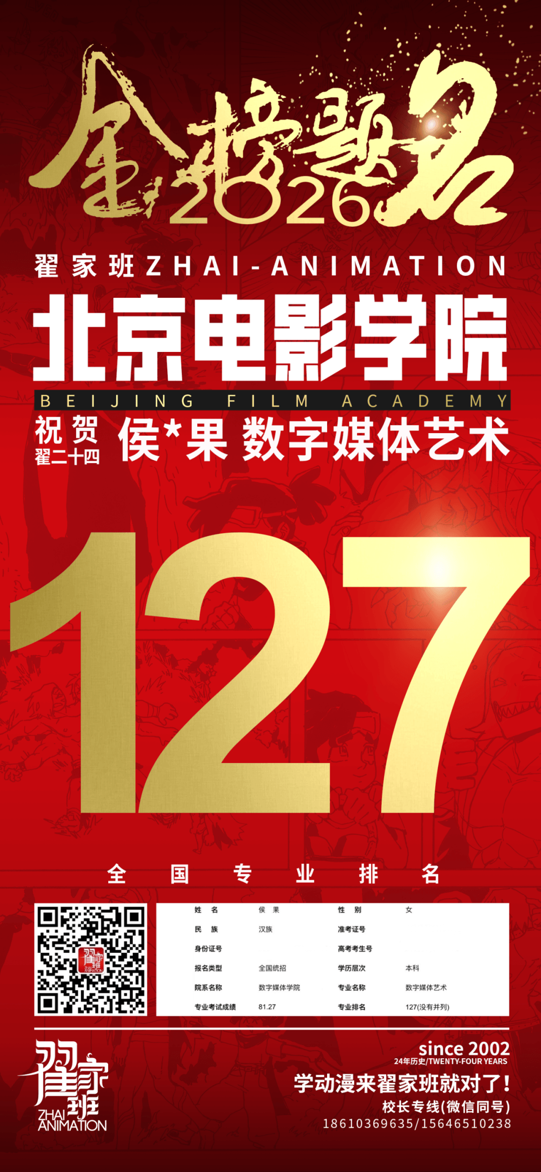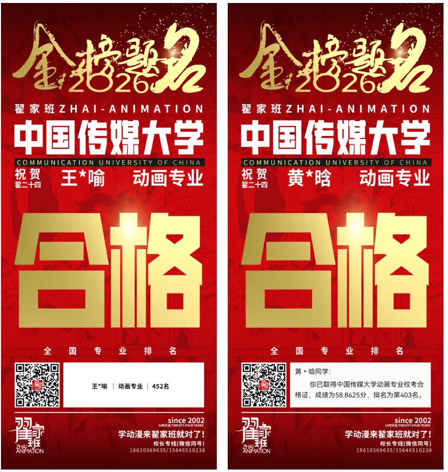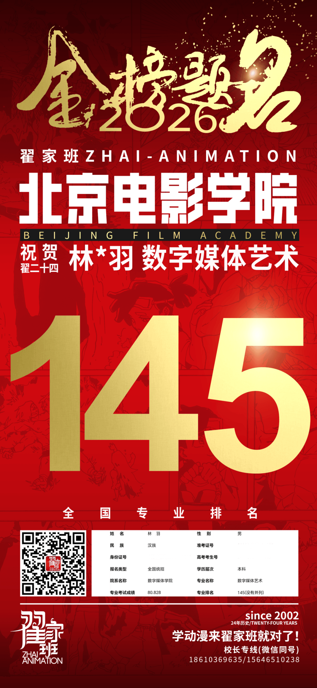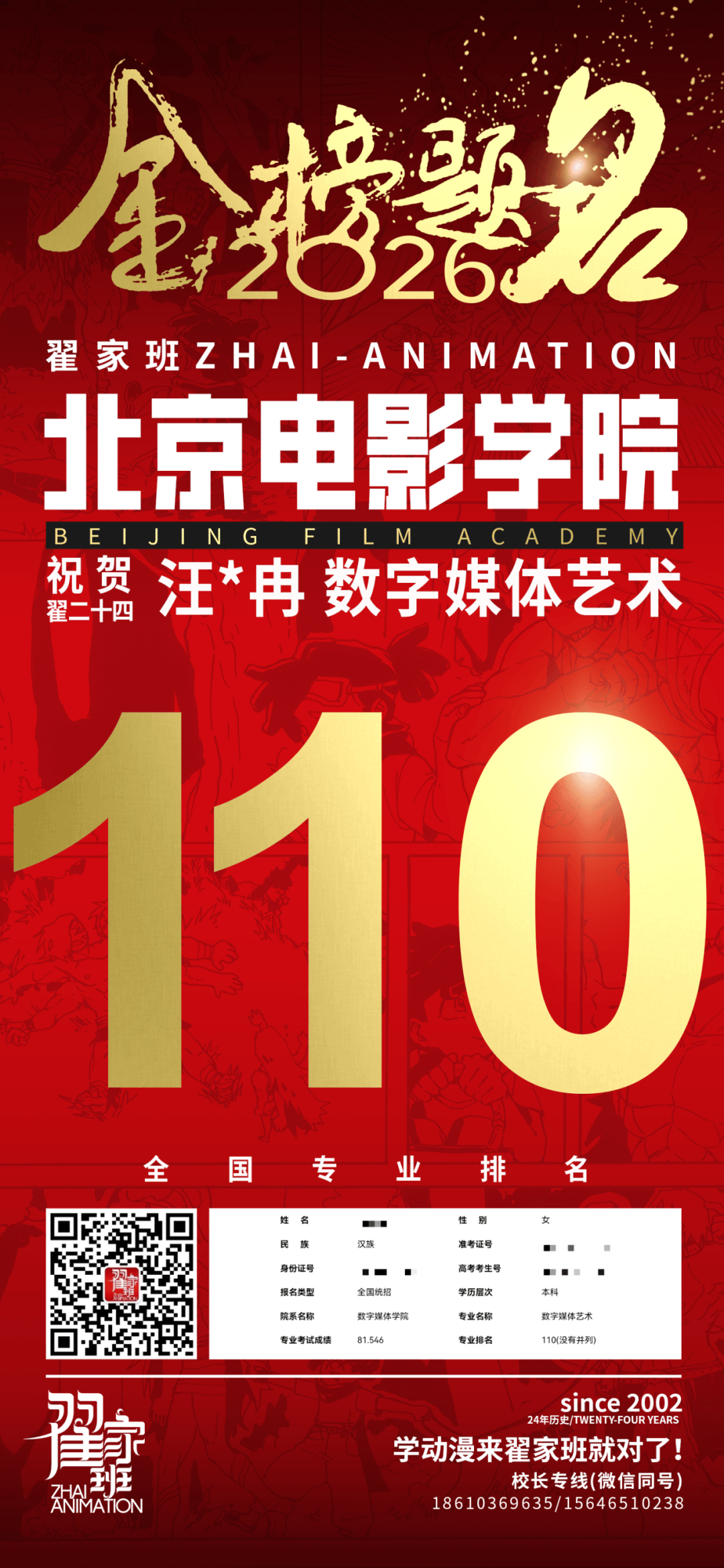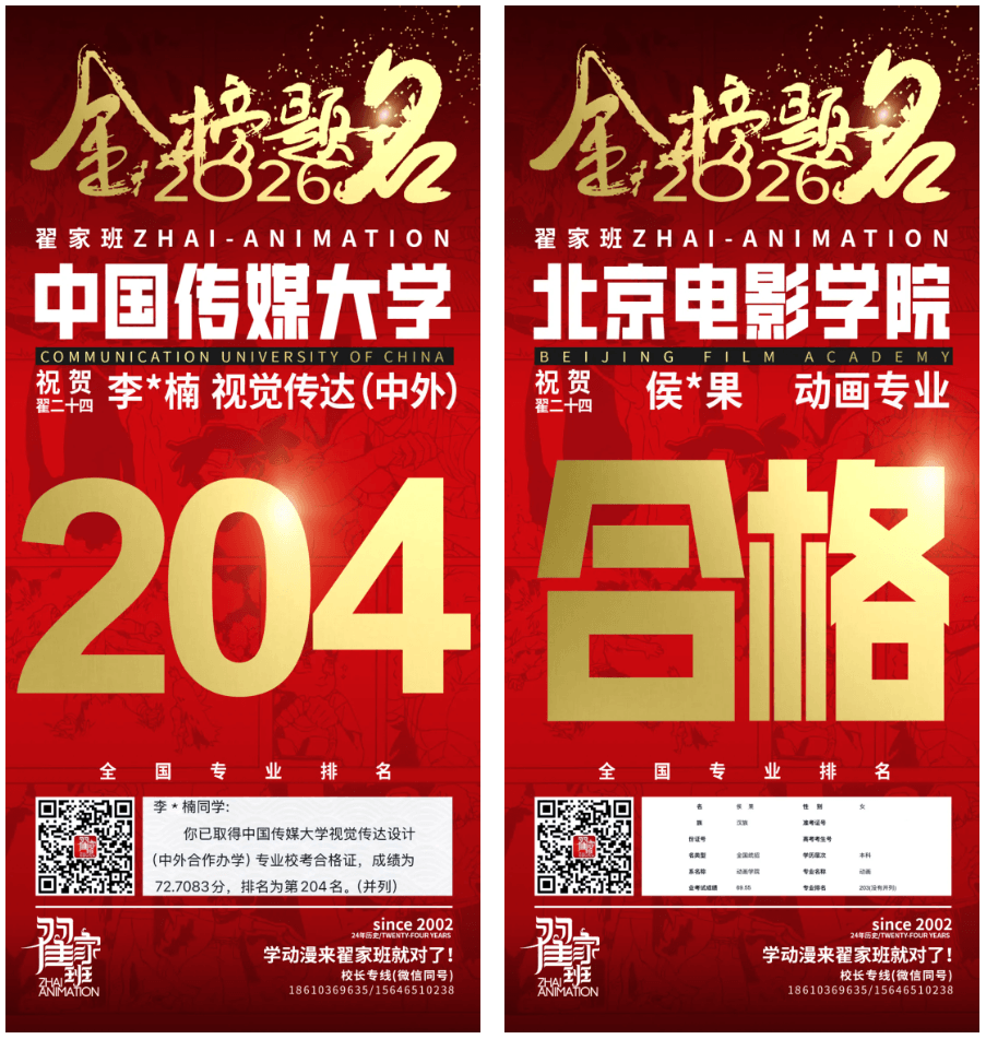 - 翟家班2026中国传媒大学动画专业校考成绩领跑全国