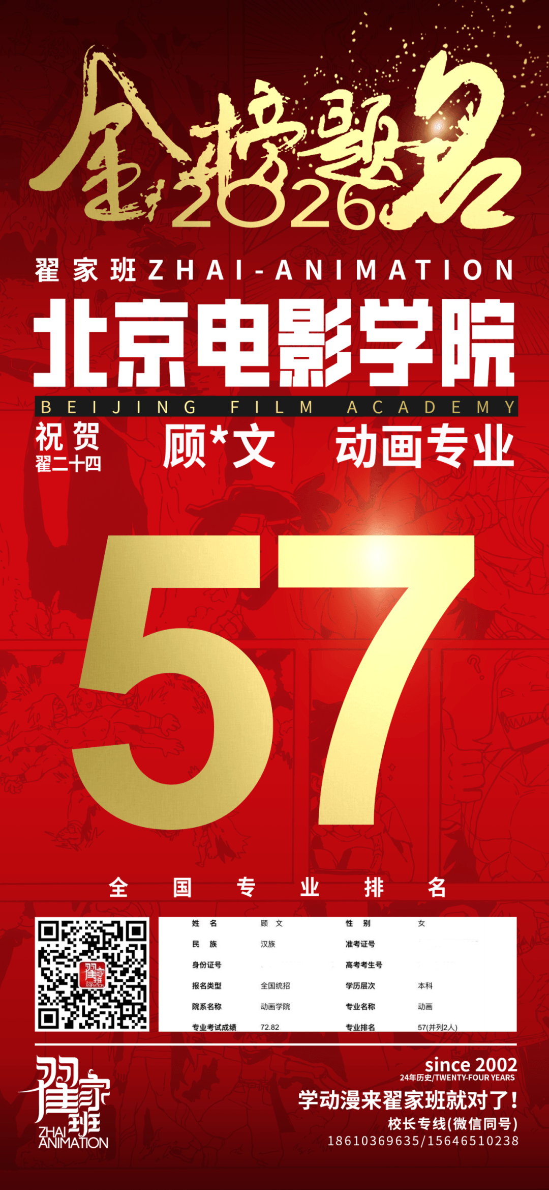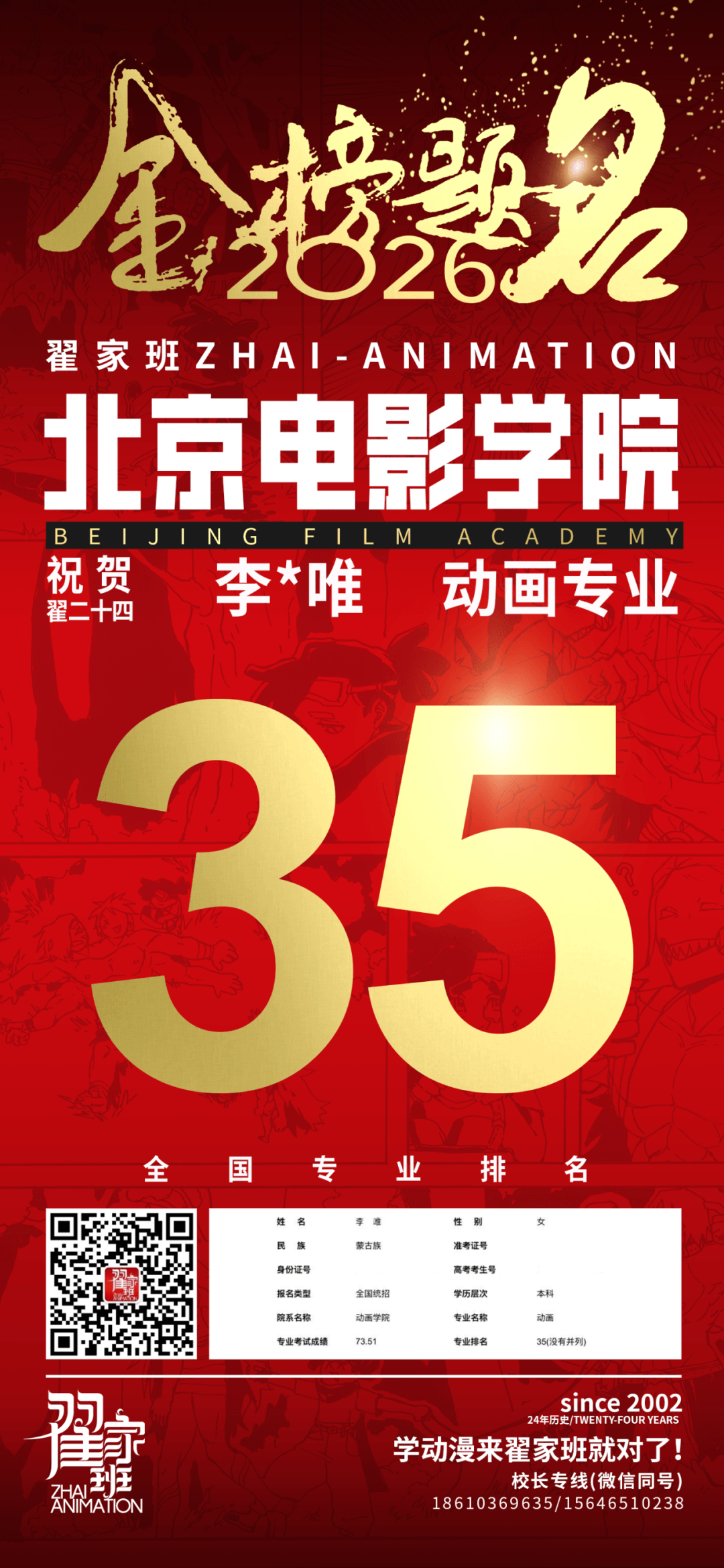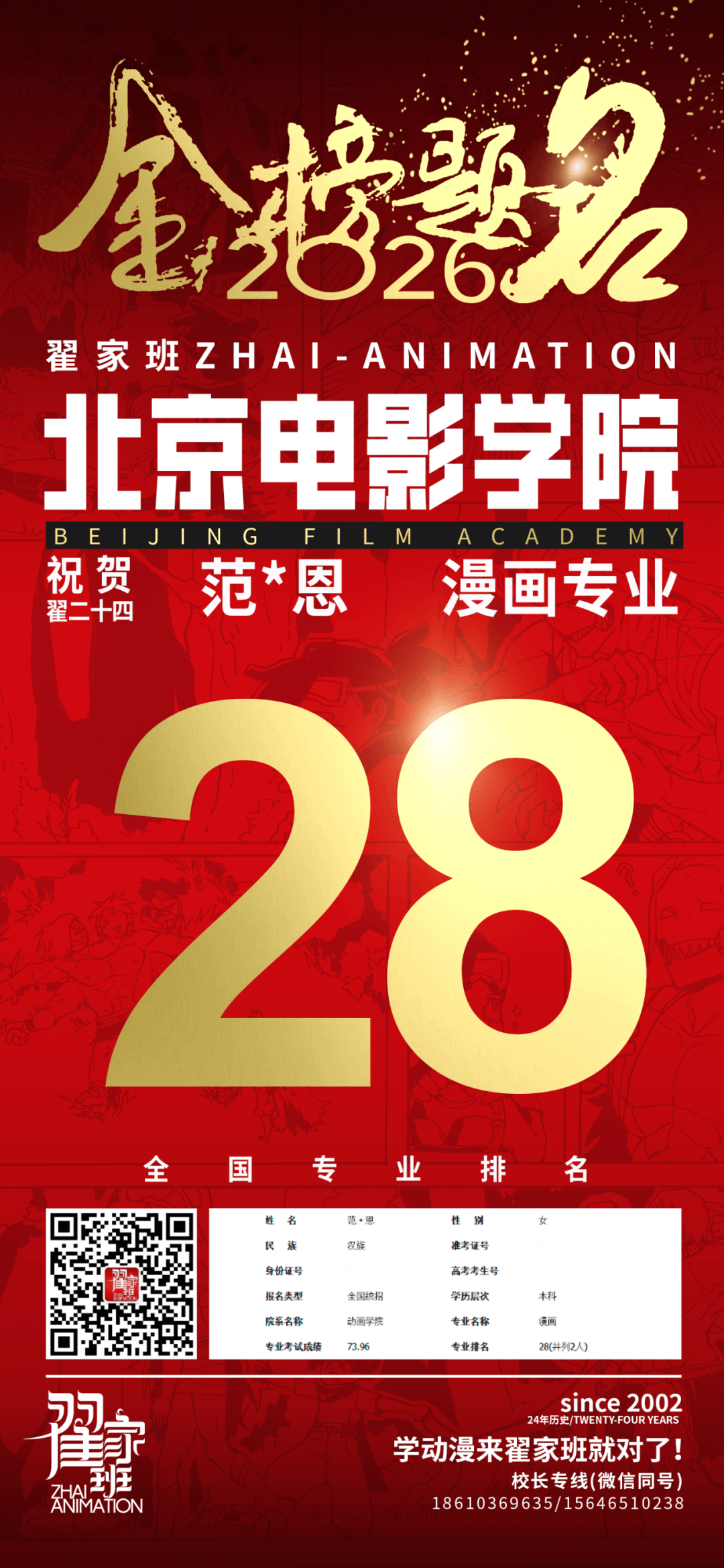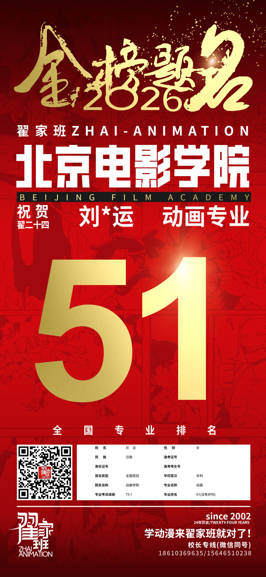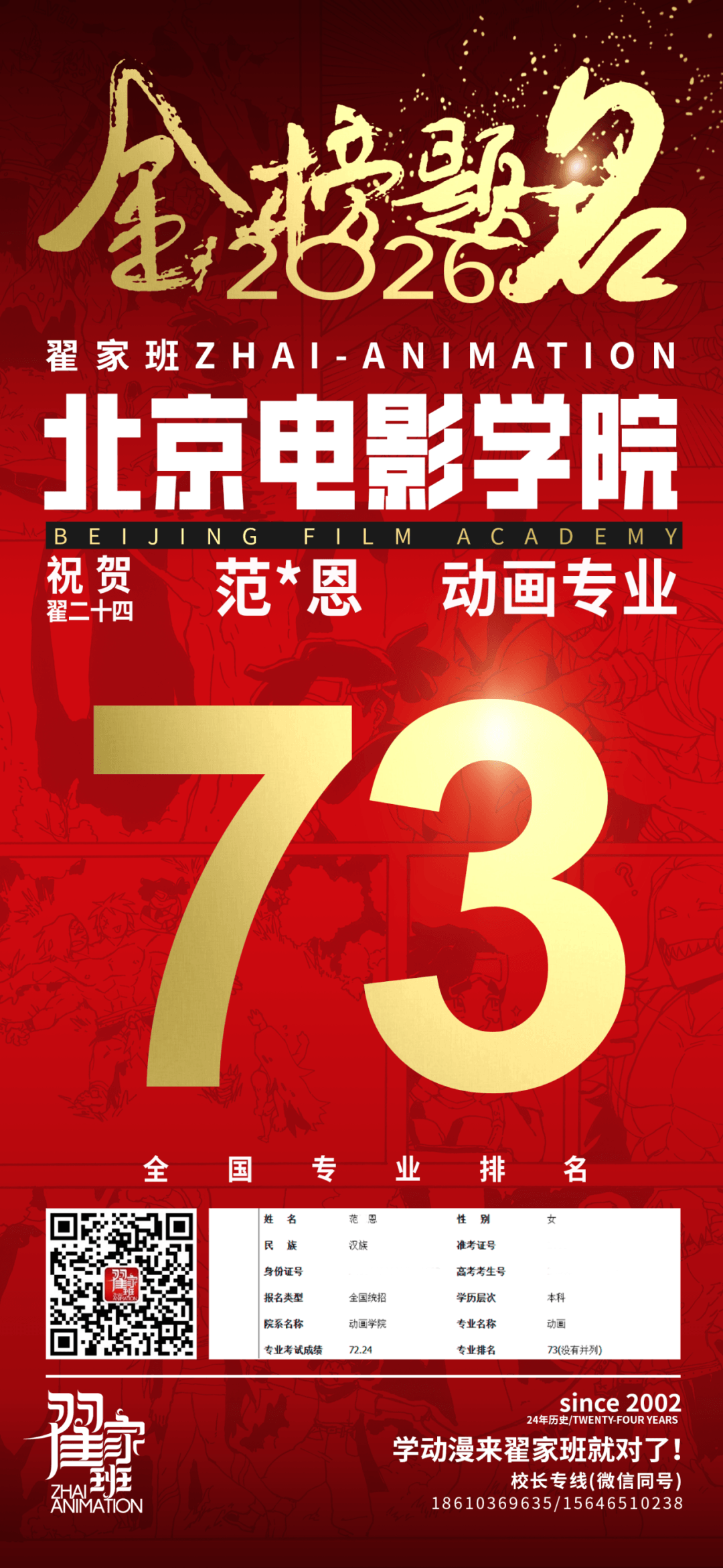 - 翟家班2026中国传媒大学动画专业校考成绩领跑全国