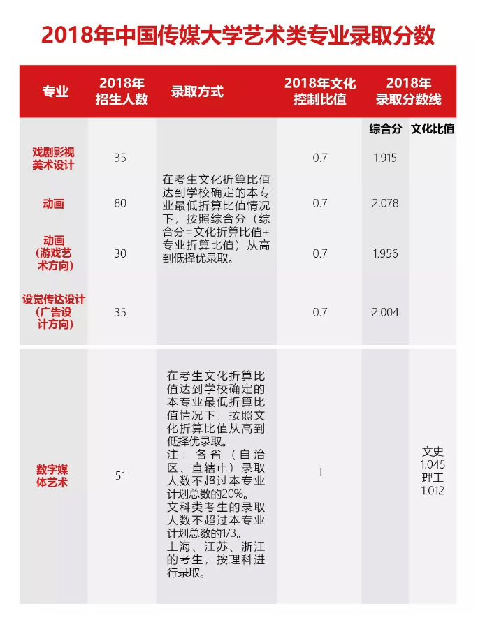 2019年中传艺术类招生,部分专业录取原则已更改,视觉传达设计及数字媒体艺术专业可参考2018年招生录取分数。