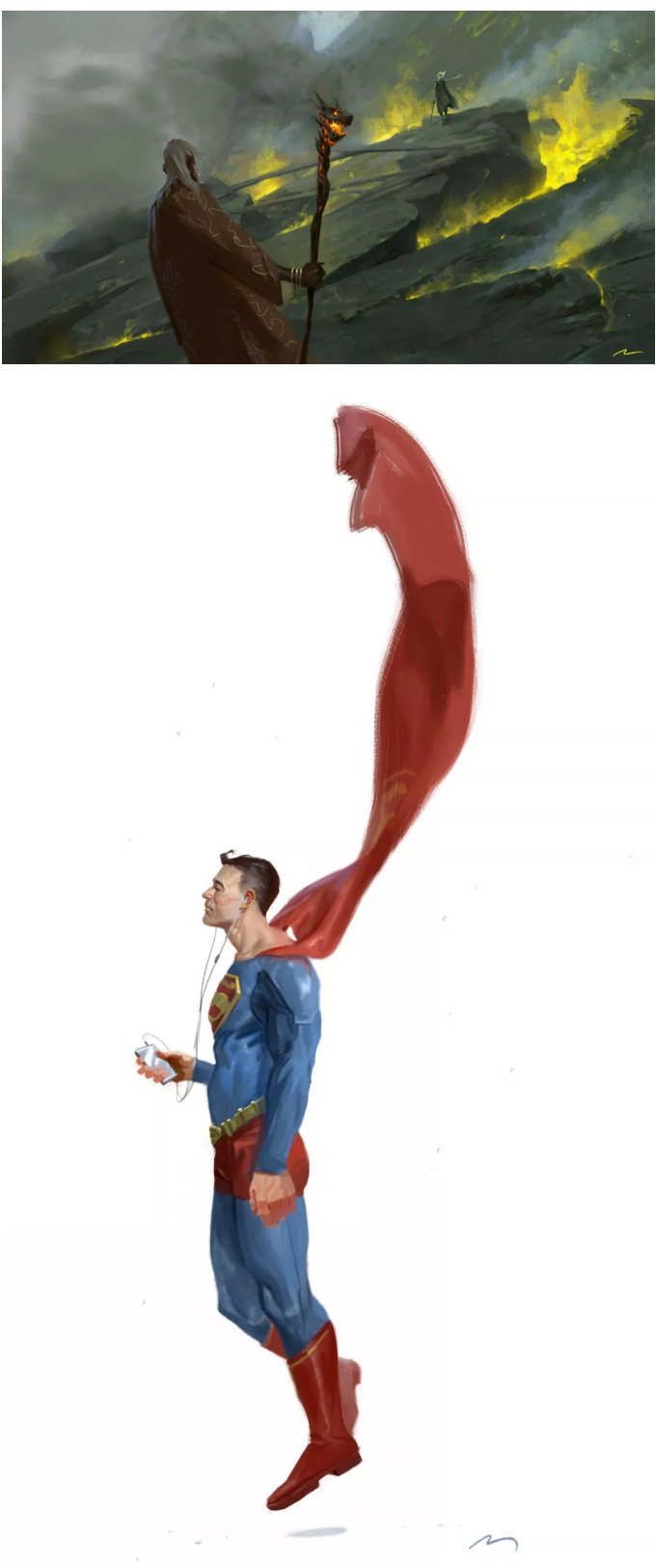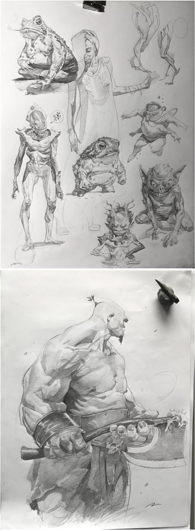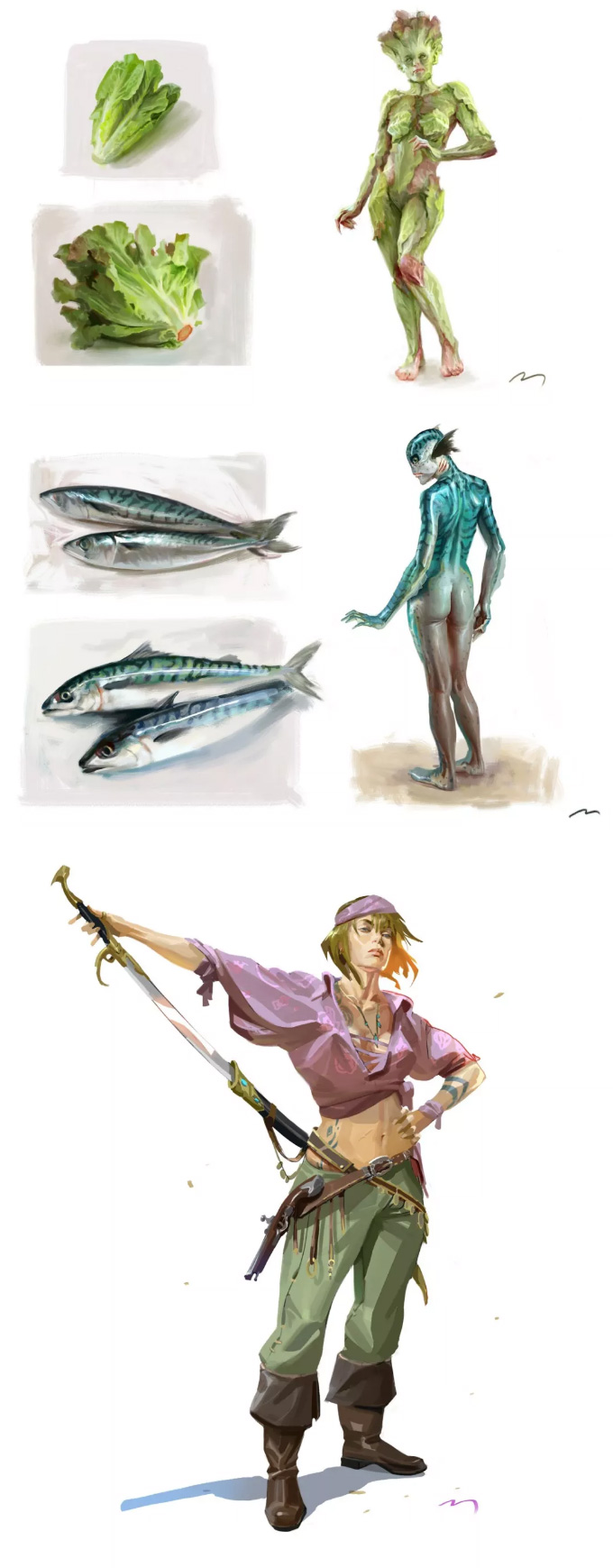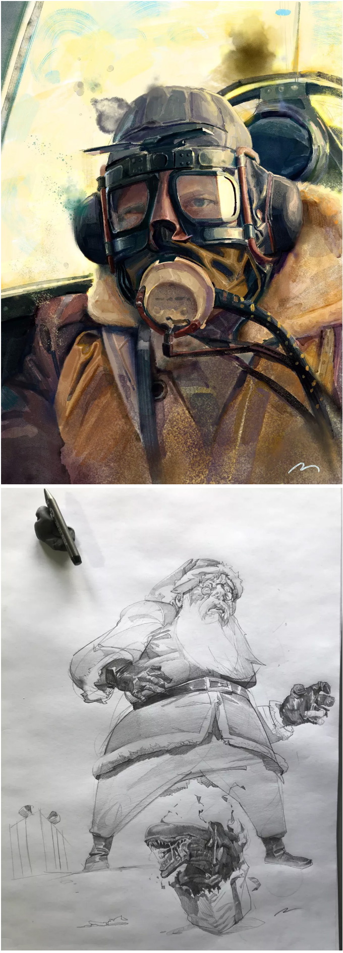 意大利的概念设计师、插画师, 常以影视、游戏角色作为练习对象, 大量的日常练习,锻炼出其超扎实的人物刻画和色彩运用, 就算是日常练习,也一点都不含糊, 简单地在本子上进行速写,也能通过明暗关系来生动刻画, 通过对动作、神态和服饰的刻画,人物的特点表现无疑。肖像练习中,大胆运用色彩,让人印象深刻, 除了颜色外,透视和质感方面也值得大家学习。