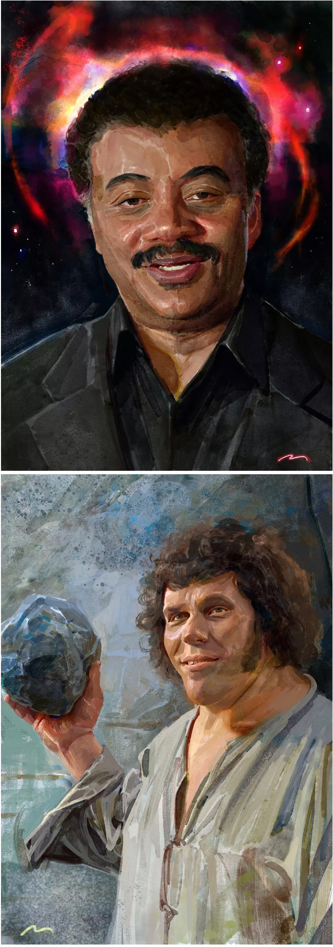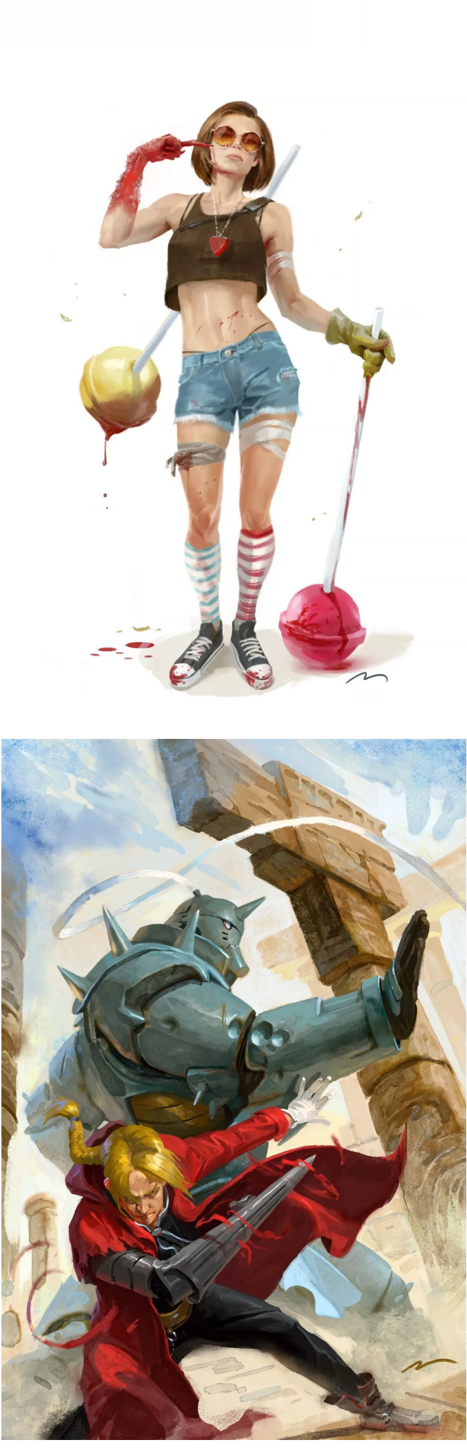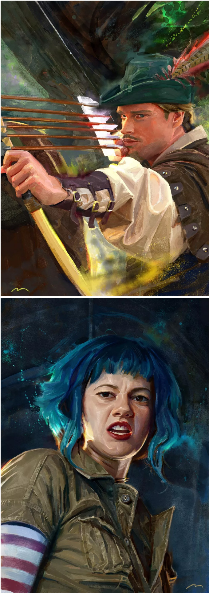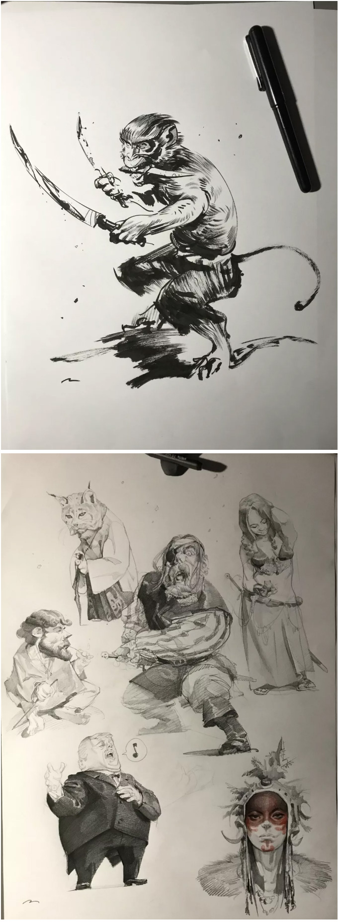 意大利的概念设计师、插画师, 常以影视、游戏角色作为练习对象, 大量的日常练习,锻炼出其超扎实的人物刻画和色彩运用, 就算是日常练习,也一点都不含糊, 简单地在本子上进行速写,也能通过明暗关系来生动刻画, 通过对动作、神态和服饰的刻画,人物的特点表现无疑。肖像练习中,大胆运用色彩,让人印象深刻, 除了颜色外,透视和质感方面也值得大家学习。