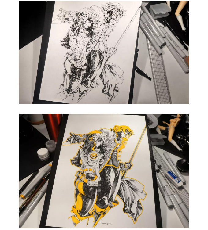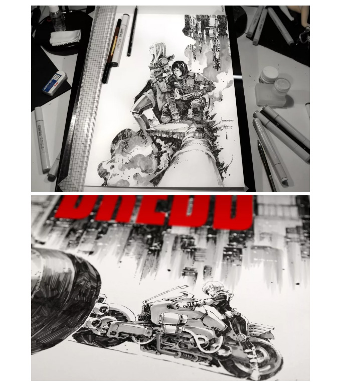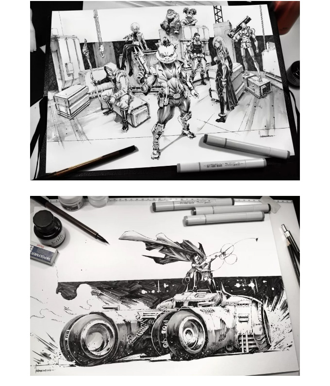 马来西亚概念设计师、插画师,就职于当地一家游戏公司:Passion Republic。Kael Ngu喜欢用马克笔绘画,被称之为马克笔狂魔。画面以黑、灰、黄、红四种颜色为主;画面偏向冷酷耍帅型,帅气利落。