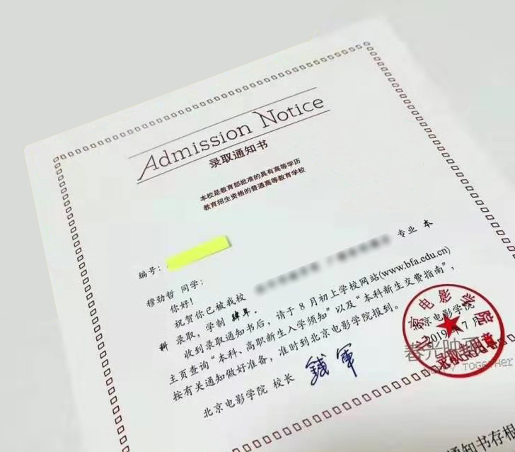 金光灿烂北电录取通知书: