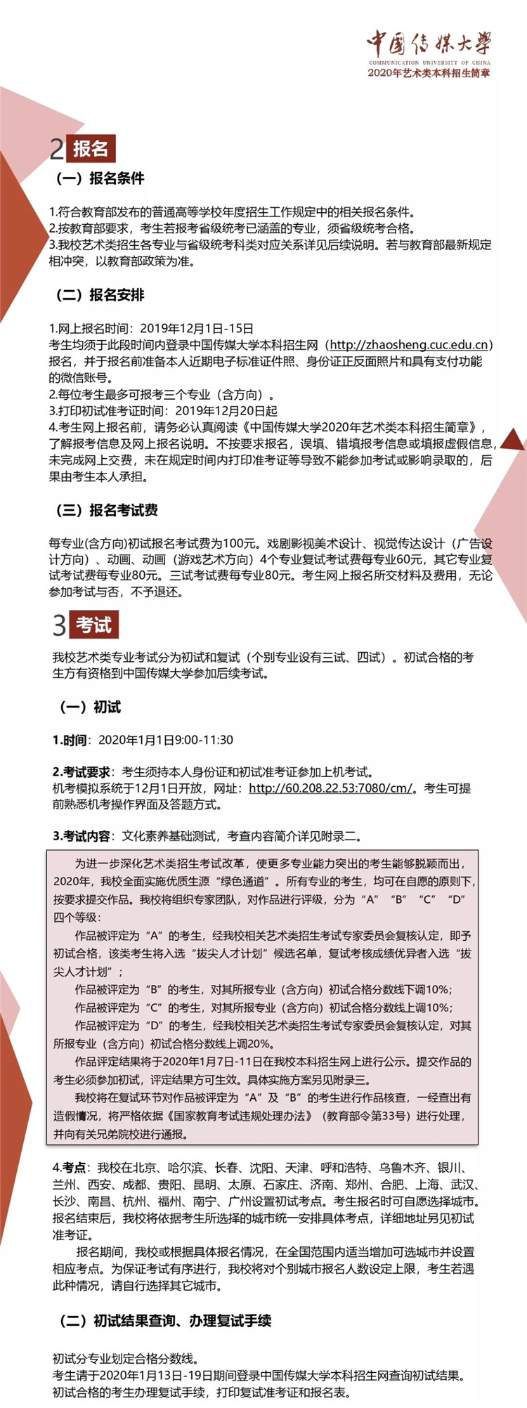 伴着昨晚北京的初雪中国传媒大学2020年艺术类本科招生简章也正式公布啦!先来跟我划重点吧!