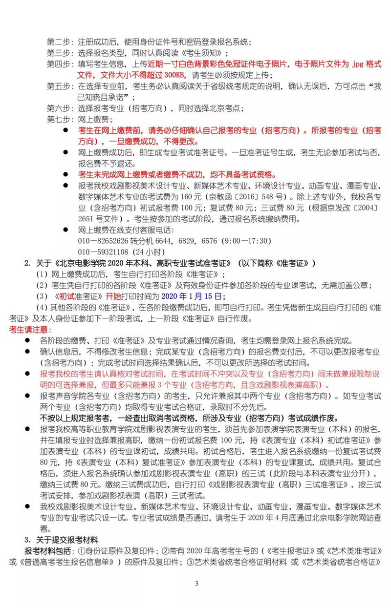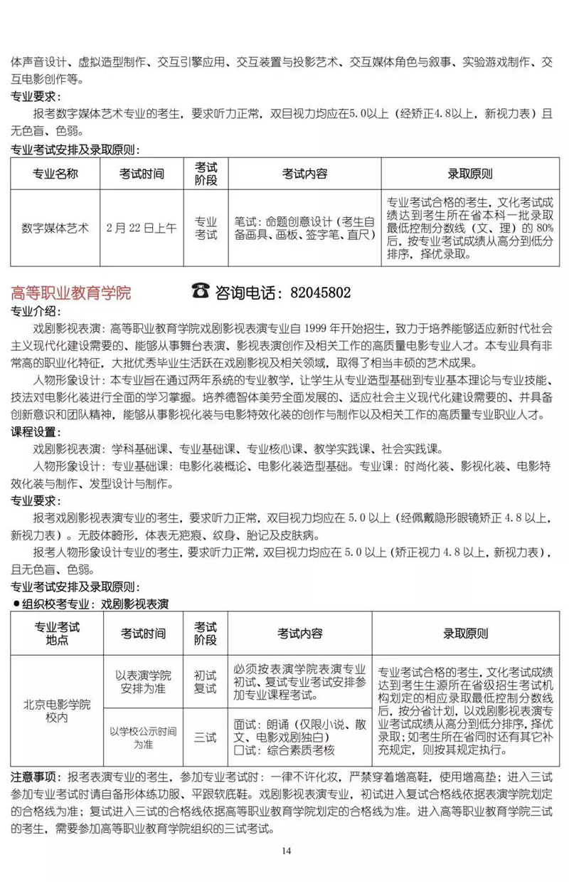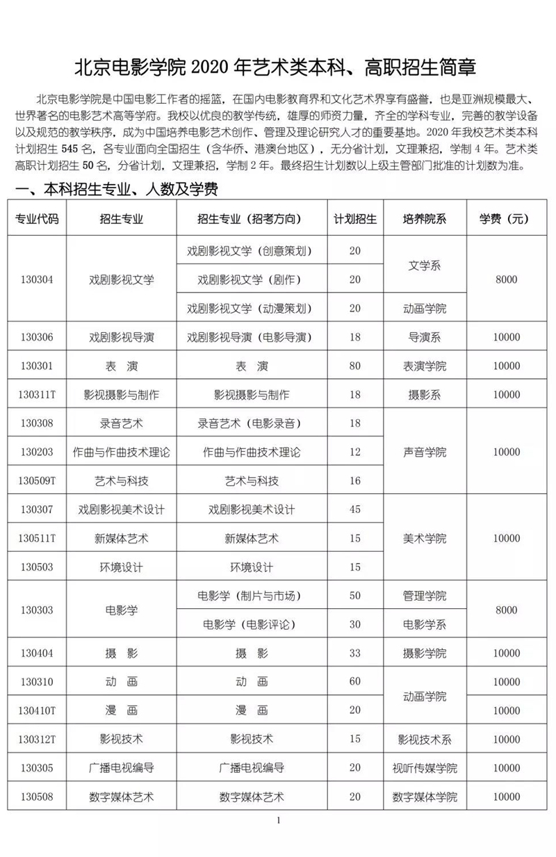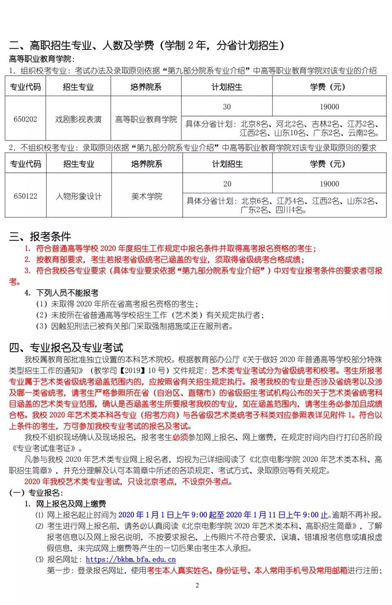 权威发布 | 北京电影学院2020年艺术类本科、高职招生简章