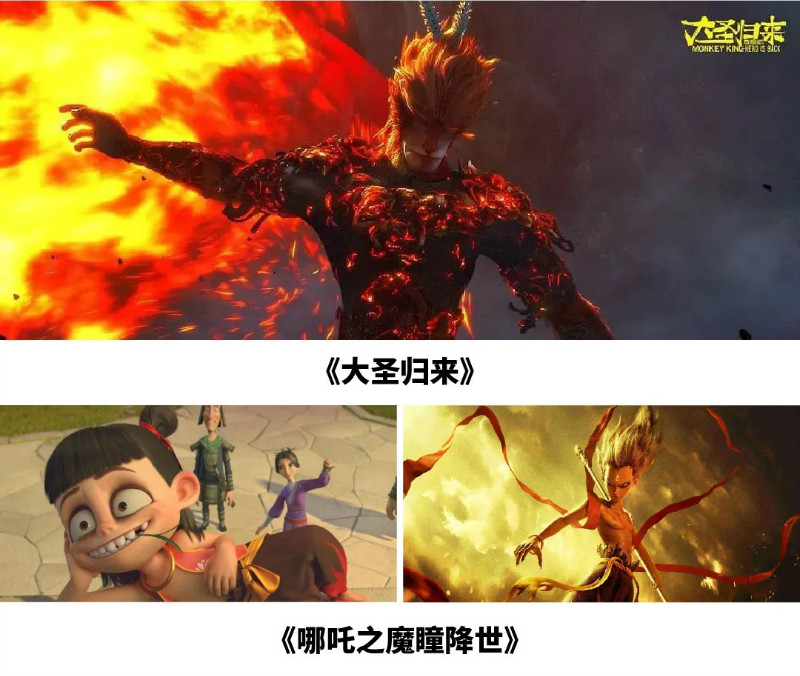上面展示的是2015年上映的《大圣归来》与2019年上映的《哪吒之魔瞳降世》,这两部国产动漫电影上映之后得到了电影市场的一致好评,大圣归来票房是9.56亿人民币,时隔四年,哪吒之魔瞳降世票房居然高达50亿人民币,仅用四年,突破了国漫电影的新高!发展速度迅猛!