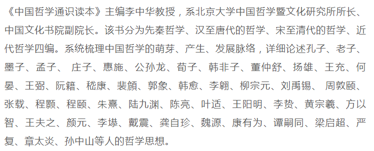 通识读本系列由李中华、温儒敏、葛晓音、张帆、马勇等当今著名学者、文化名家亲自编撰或担任主编,中国传媒大学出版社出版。2020年9月已出版《中国古代文学通识读本》、《中国现代文学通识读本》和《中国历史通识读本》三本,《中国哲学通识读本》将于2020年10月底出版。