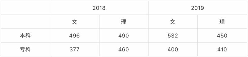 第四种:专业成绩+文化成绩 附:近2年文化录取控制线