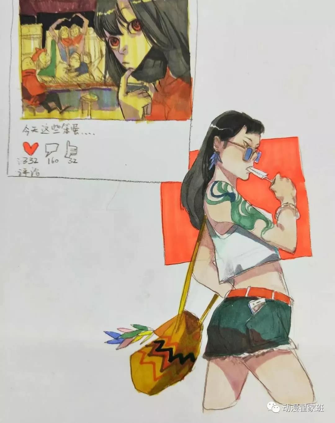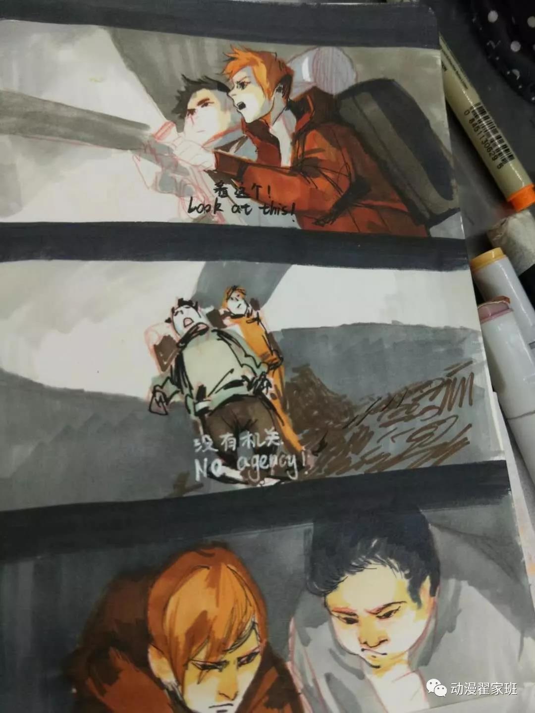 我渐渐发现,懒惰和片面追求完美是我至今画面无所突破和能力无法突破的关键。懒惰,是直接原因,漫画就如同基础课,没有量变就无法引起质变。片面追求完美,就好比你画永远就只有那几个动作,原因是害怕掉粉之类的原因(当然我没什么粉丝)。但如果无法突破,容易给予长期看你画的人一种审美疲劳,也是容易让人否定和忽视你的根本原因。对于这两个基本矛盾,我也是下定决心要改变的,通过在老师们的鼓励下和自我探索下,我觉得这方面有所改良,在平日我也敢于去画一些夺眼一些的大动作。这令我十分愉快。