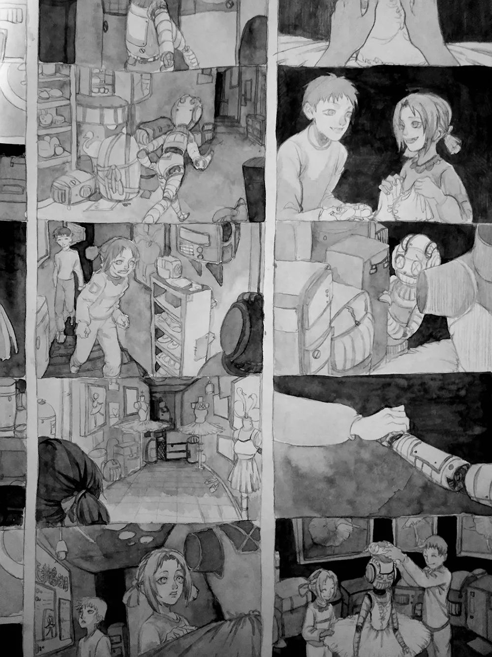回到学校以后,我也一直自己做练习,慢慢地基础好了很多,到了大三的时候有了跨专业读动漫类专业的勇气。我一开始考虑的是动画专业,后来偶然发现了清华的交叉学科,这个专业面向各个专业背景的学生,我觉得这个更适合我本身的情况,于是决定考这个专业。考试科目是政治、英语一和两门专业课。今年英语的分数线提高了不少,英语需要重视一些。专业一主要是考剧本和分镜,专业二主要是考专业设计,会考造型设计,包括角色、场景等,也可能考分镜,分镜真的很重要。考卷上给出的评判标准包括了基本功、造型、创意等,不光看画技,也看构思和想法,平时要多积累一些不错的点子。试题考察日常题材和科技题材的可能性比较大。初试复试都是使用二开纸,很大张,初试三小时,复试四小时,要考虑时间分配的问题,也要提高作画速度。
