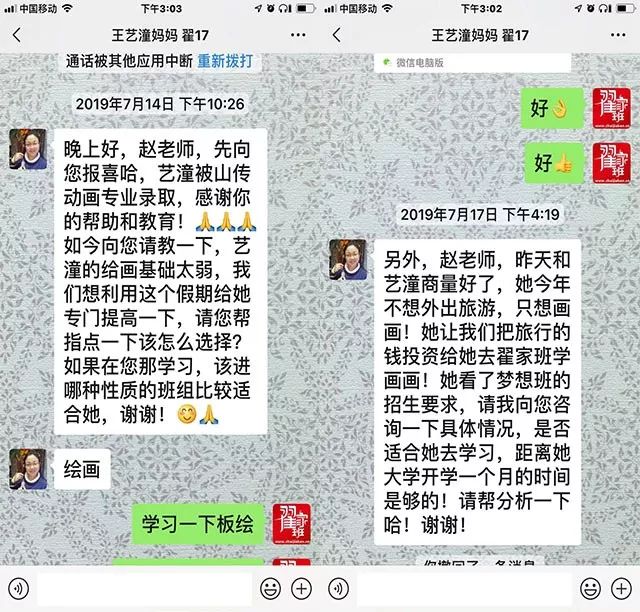 书写这么多,不为别的,只为了和各位家长朋友们分享我孩子在翟家班学习的一些感悟和心得体会,每个家庭每个孩子都是不同的,大家都因为动画而结缘,来自五湖四海相聚翟家班,有缘遇到每个人,家长因此成为了朋友,相加微信作为长期联系的伙伴。而我的女儿也因为翟家班,结识了宿舍的三位可爱善良的姑娘,她们一同学习,一同生活,一同画画,一同谈论着动漫人设,有着说不完的话题,直到如今,她们依然保持联系,相互赠寄礼物为高考加油打气!