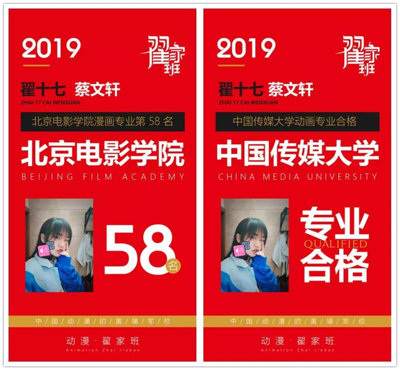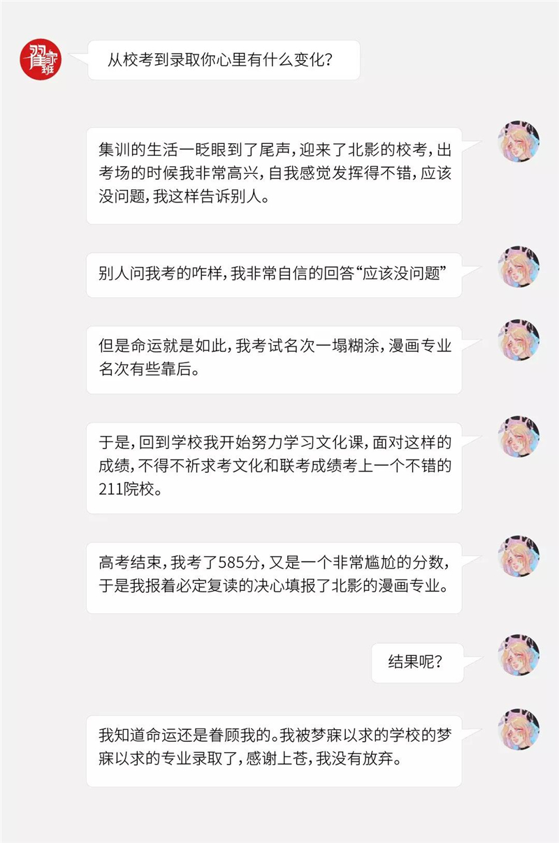 最终被北京电影学院漫画专业录取