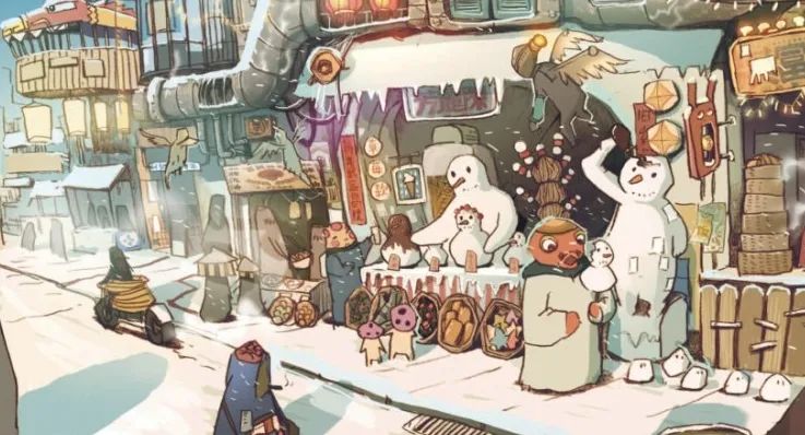 第一次是小白杨后复试前,换了好几次画风都不满意,又错误地选择在塑造上下功夫,结果就是画得又慢又没效果,然后无意中看到《隐匿城》,试着模仿了一下感觉非常合适,又调整了一下成功转变成自己的画风。