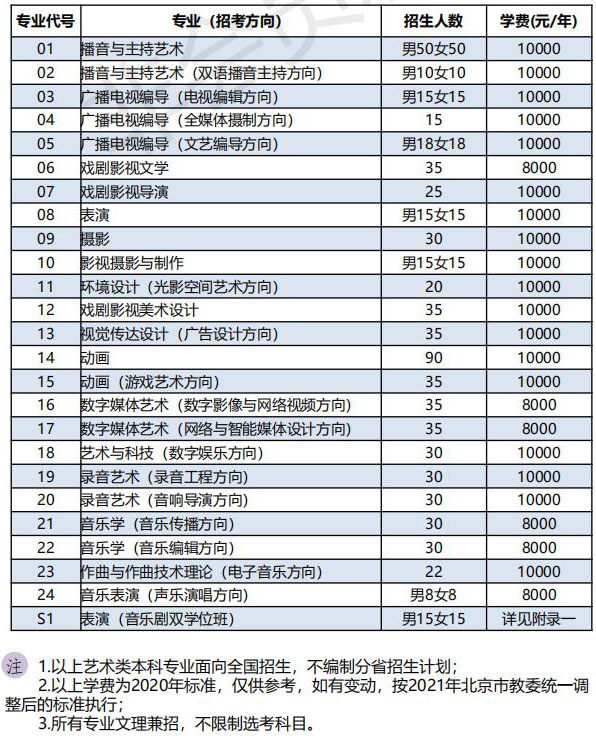 1.按专业排名 录取。表演、戏剧影视美术设计、动画、动画(游戏艺术方向)、作曲与作曲技术理论(电子音乐方向)、音乐表演(声乐演唱方向)、表演(音乐剧双学位班)7个专业,在考生文化折算比值达到0.6且不低于艺术类省控线的情况下,按照专业排名择优录取。专业排名相同,按文化比值择优录取。