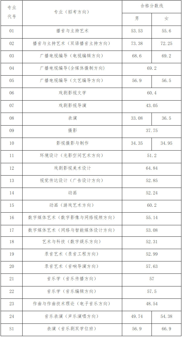 中国传媒大学2021年艺术类本科专业校考合格分数线 ![]() |