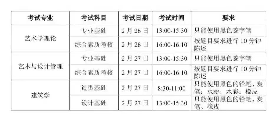 建筑学、艺术学理论、艺术与设计管理专业仅设置线上考试。