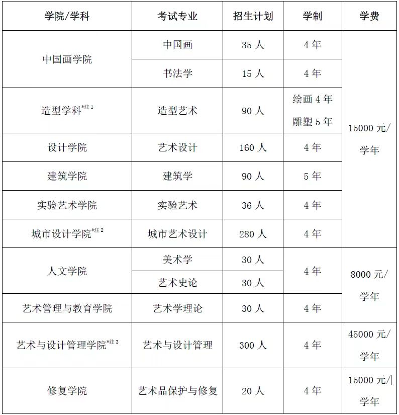 注1:造型学科包含油画系、版画系、雕塑系、壁画系,学生第一年在造型学科基础部学习。