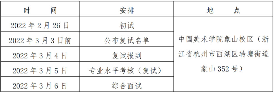 1、现场报到:2022年3月4日上午9:00——12:00。复试考试费为160元/人次。(中国画专业不参加初试,直接进入复试,复试交费)专业水平考核:2022年3月5日全天
