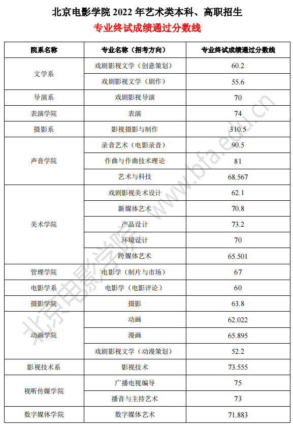 北京电影学院2022年艺术类本科、高职招生专业终试成绩查询(附专业合格线)