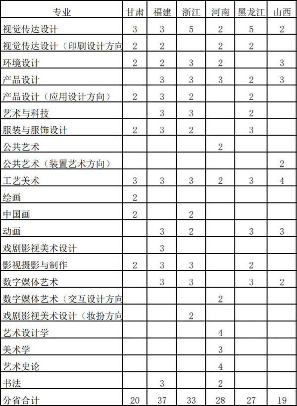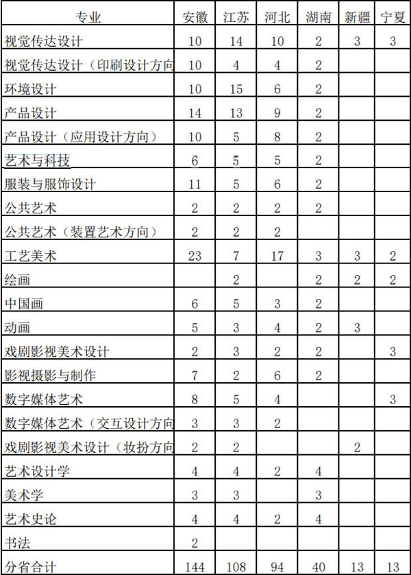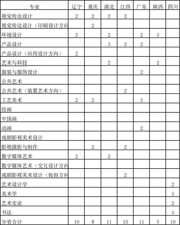 山东工艺美术学院2021年省外艺术类本科专业招生计划