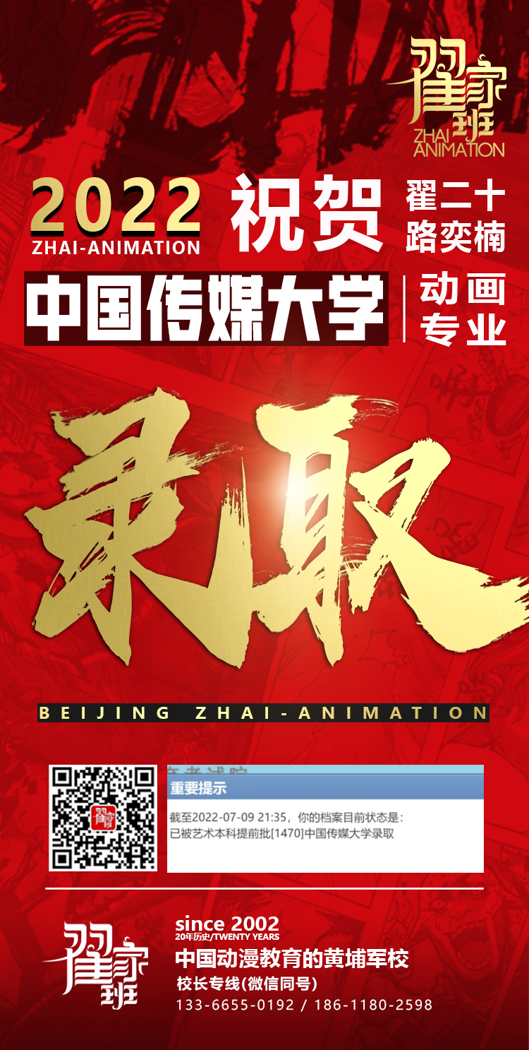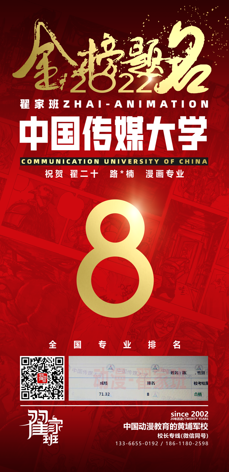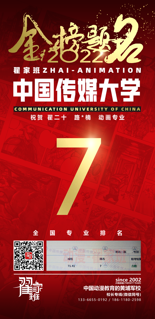 我记得查到成绩的时候是3月24号的晚上,我查到的时候觉得很不可思议,因为我真的觉得我动画漫画的卷子画的并不是很好,在成绩出来之前我其实给自己做过很多心理建设,今年没考上也没关系。最后出来的成绩真的是很幸运……感觉这两年的艺考生涯终于要结束了,而且不用翻报考书真的谢谢中国传媒大学。