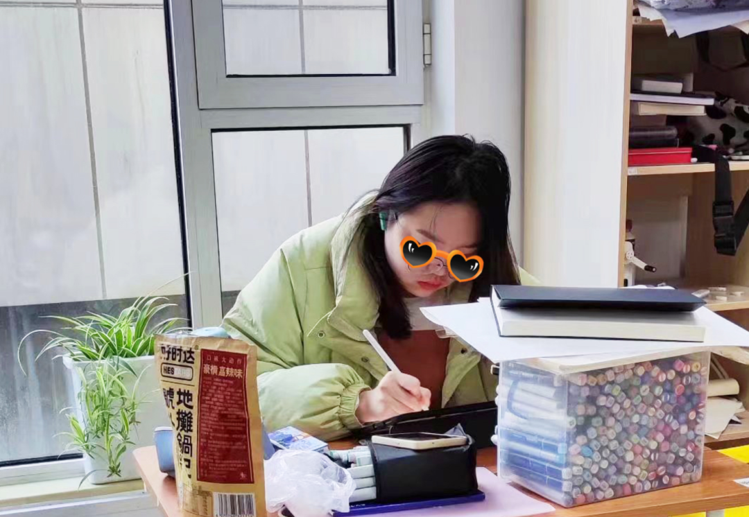 蓝图老师非常严格,但也很认真负责,快校考的时候每次都是很晚才下班。