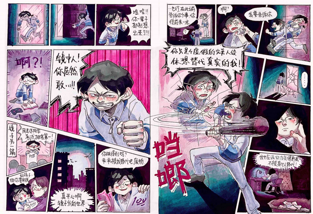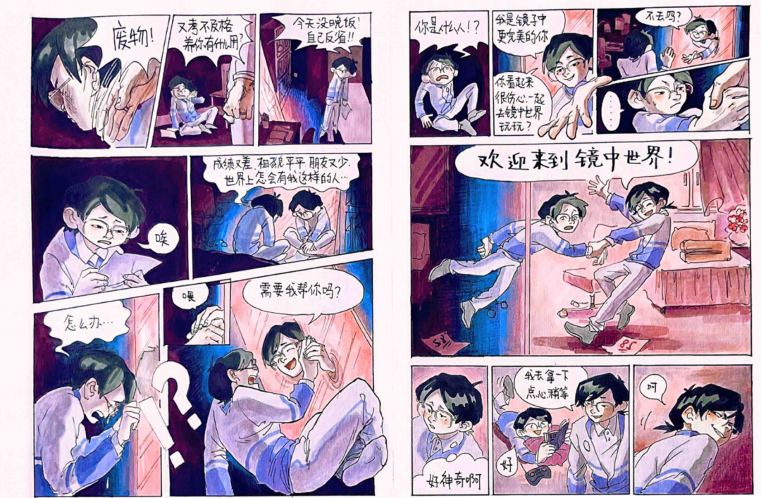 大概是在准备复试的时候,我刚联考完回画室,太久没画专业课,什么都画不出来,故事也编的稀烂,复试进度一点都推进不下去。眼看就要截稿,压力越来越大。虽然老师们一直在鼓励我、帮助我,但还是画不出。好在我参加了中传绿色通道,动画漫画都得了A,免掉了复试,压力瞬间消失了,我获得了充足的时间来恢复,做了一些自主练习,突破了瓶颈期,状态渐渐恢复到联考之前了。