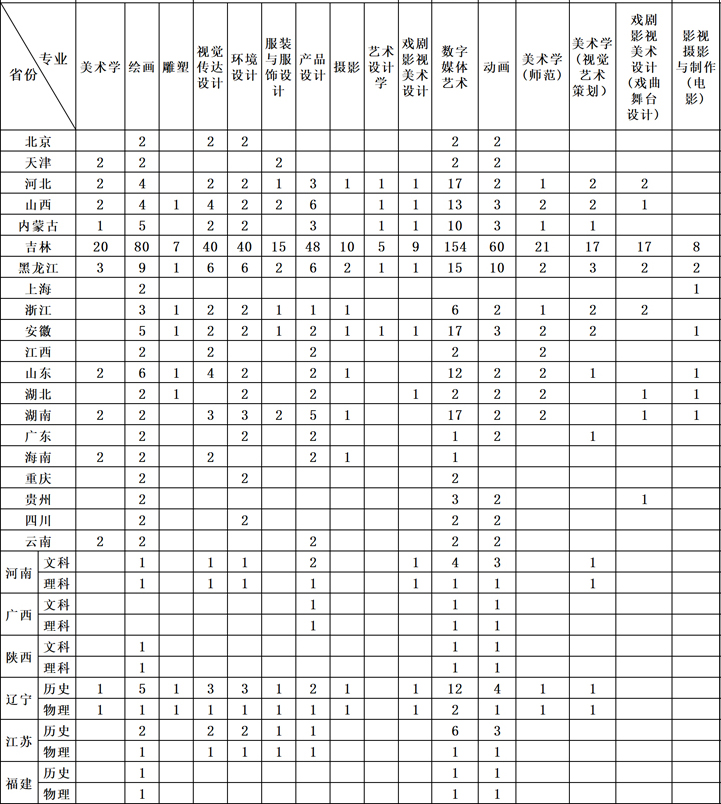 吉林艺术学院2022年美术类本科专业招生计划(含动画专业)