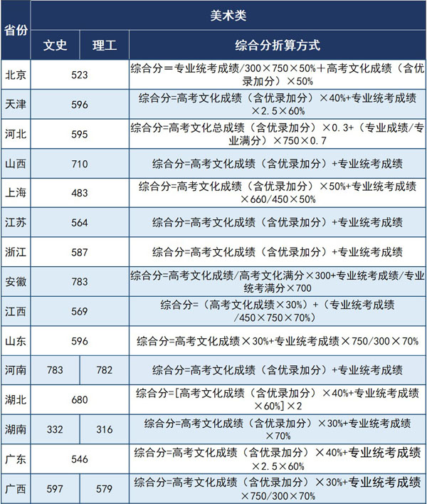 武汉理工大学2020年美术类专业录取分数线